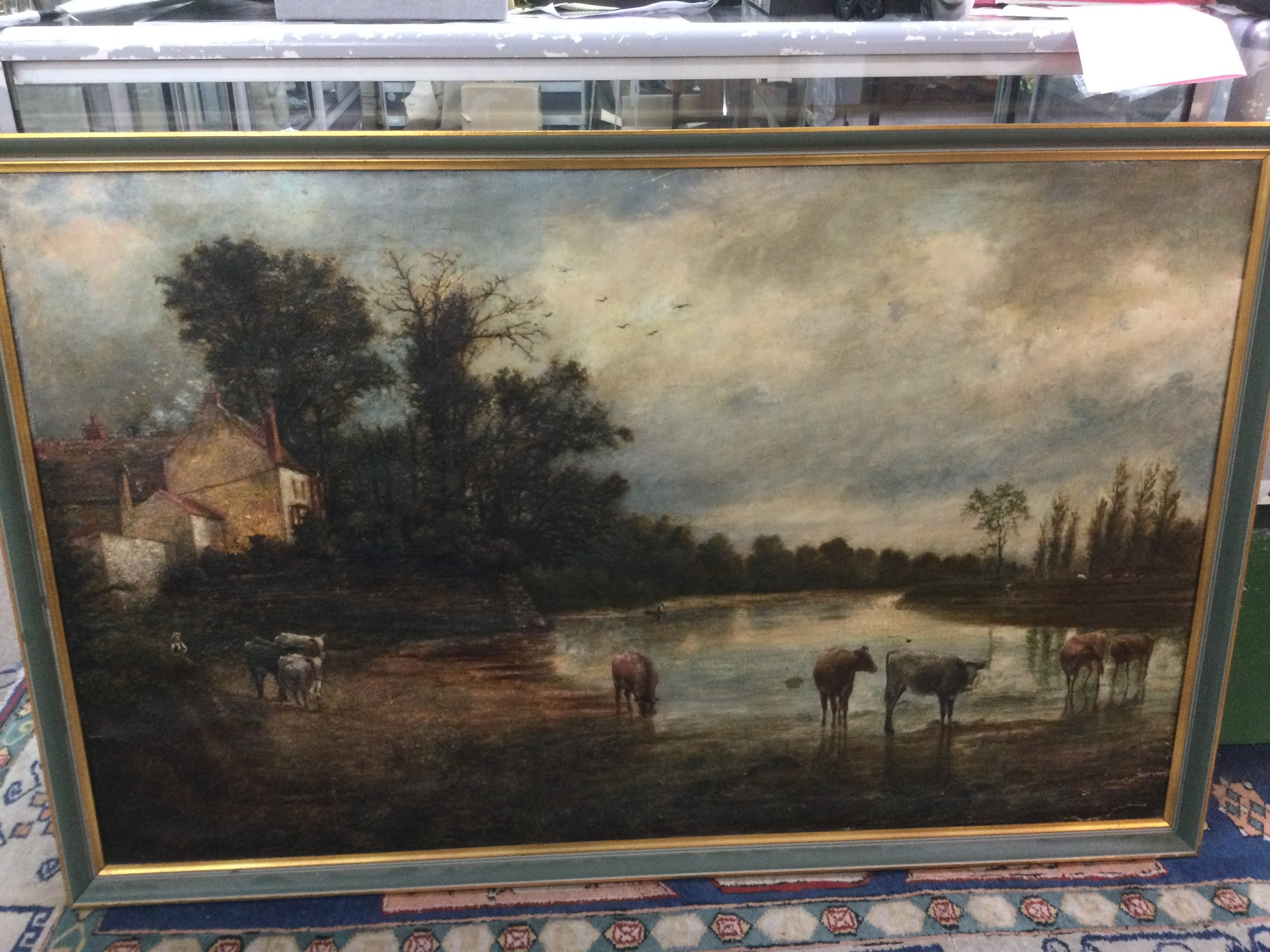 A large oil on canvas of a pastoral countryside scene, possible Cookham Dean, Berkshire, approx 144cm x 92cm. Shipping category D.