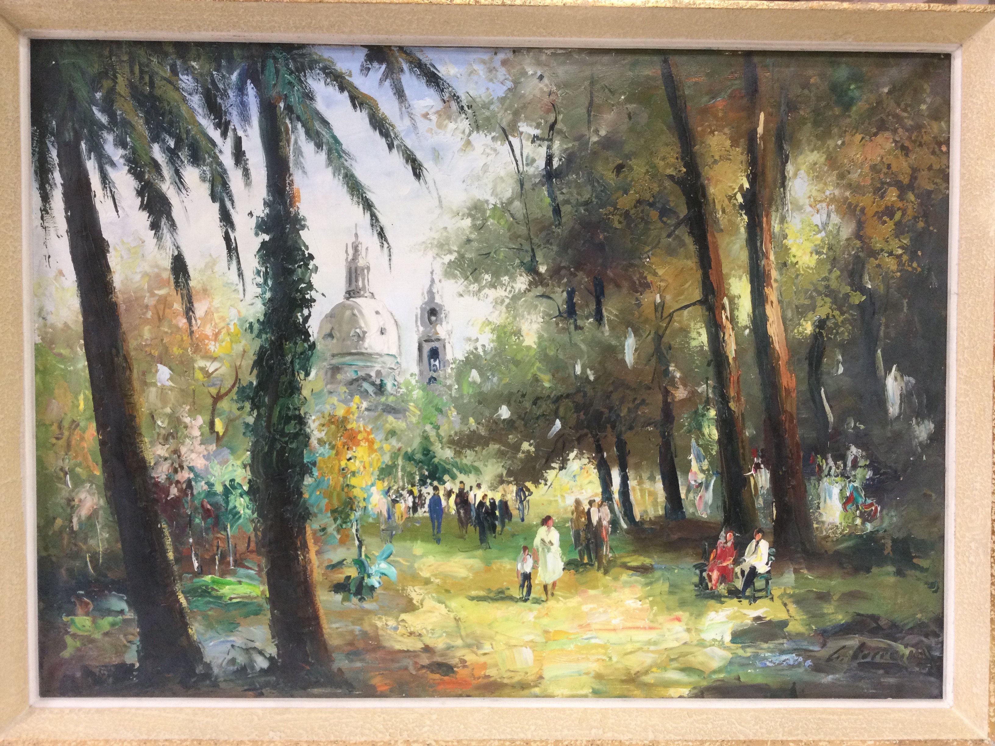 An oil on canvas of Lisbon, approx 74cm x 54cm. Shipping category D.