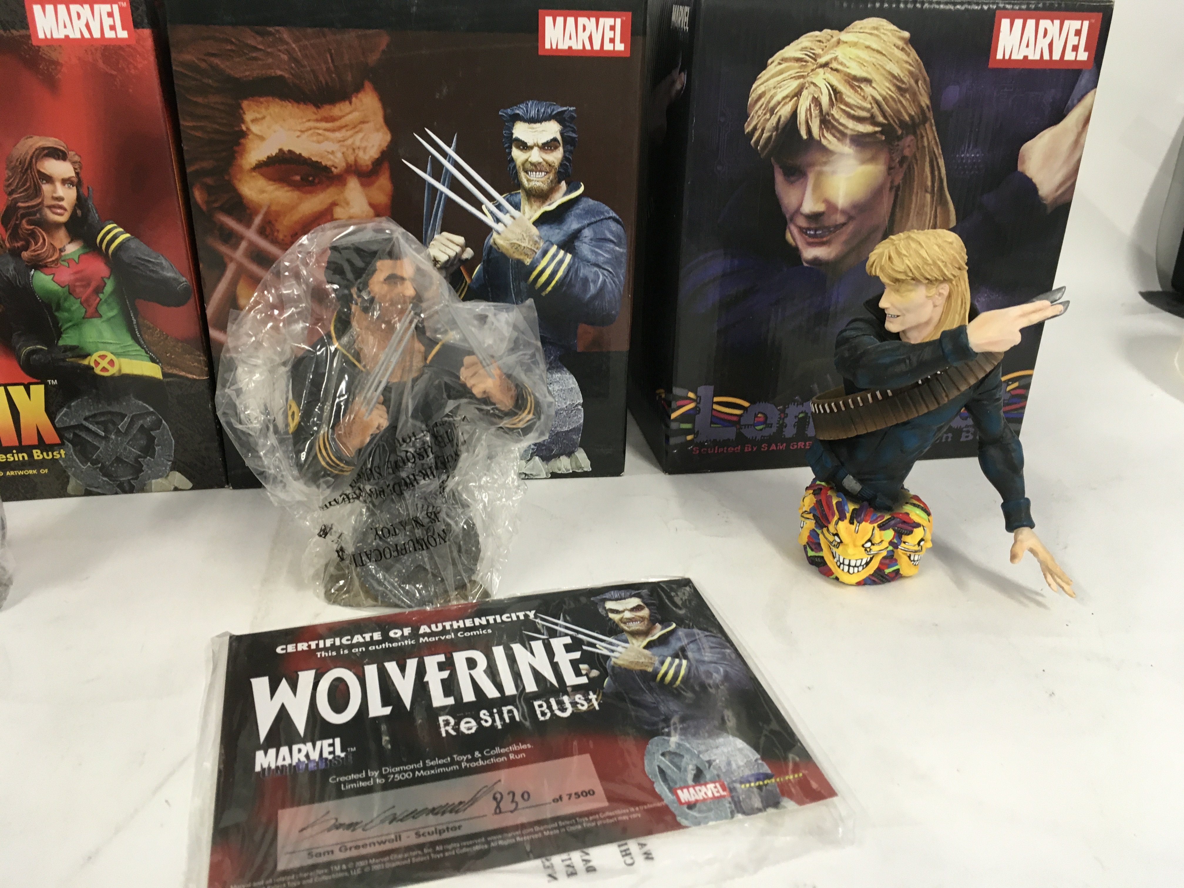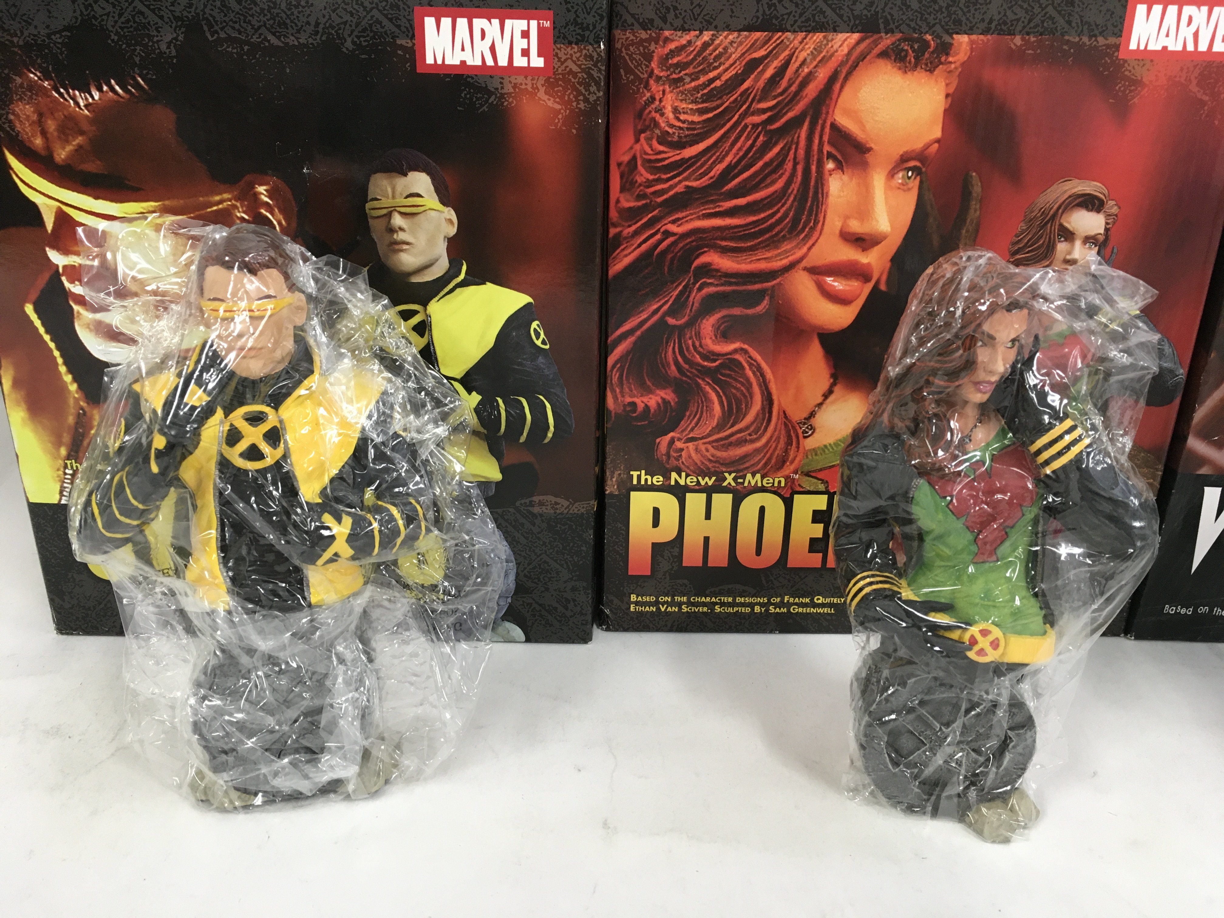 A collection of 4 boxed Marvel superhero sculptures including Cyclops..Phoenix..Wolverine and Longshot. No reserve