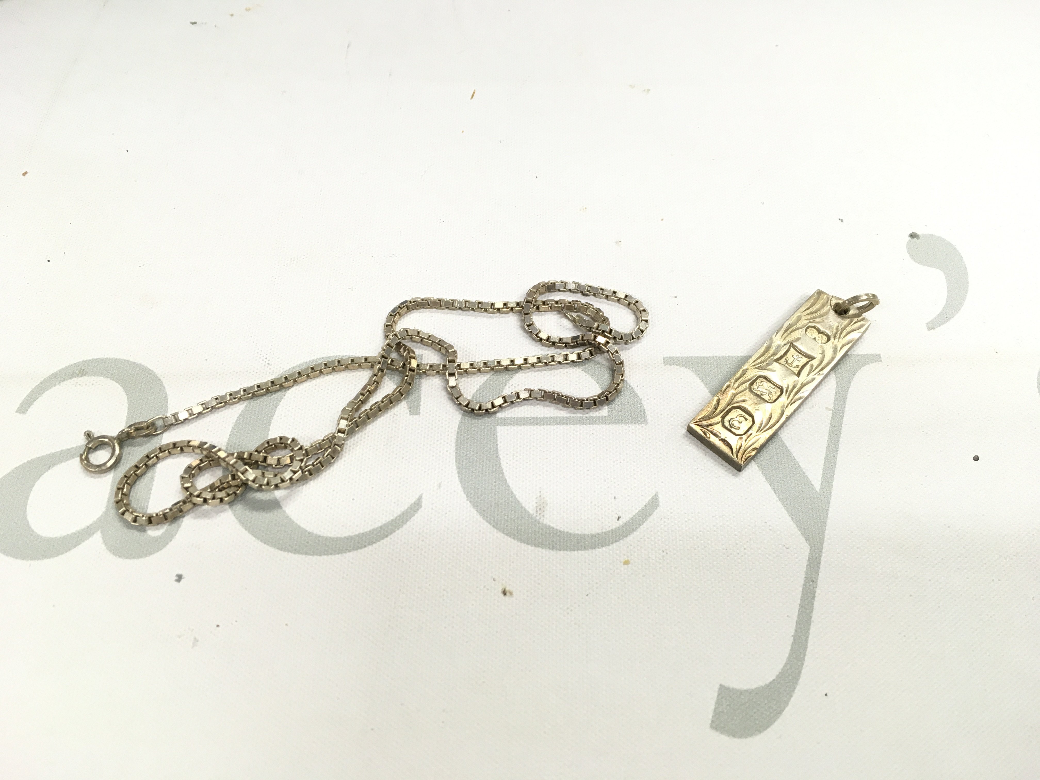 A silver box link chain and a silver ingot. Approx weight 24.76 grams. NO RESERVE