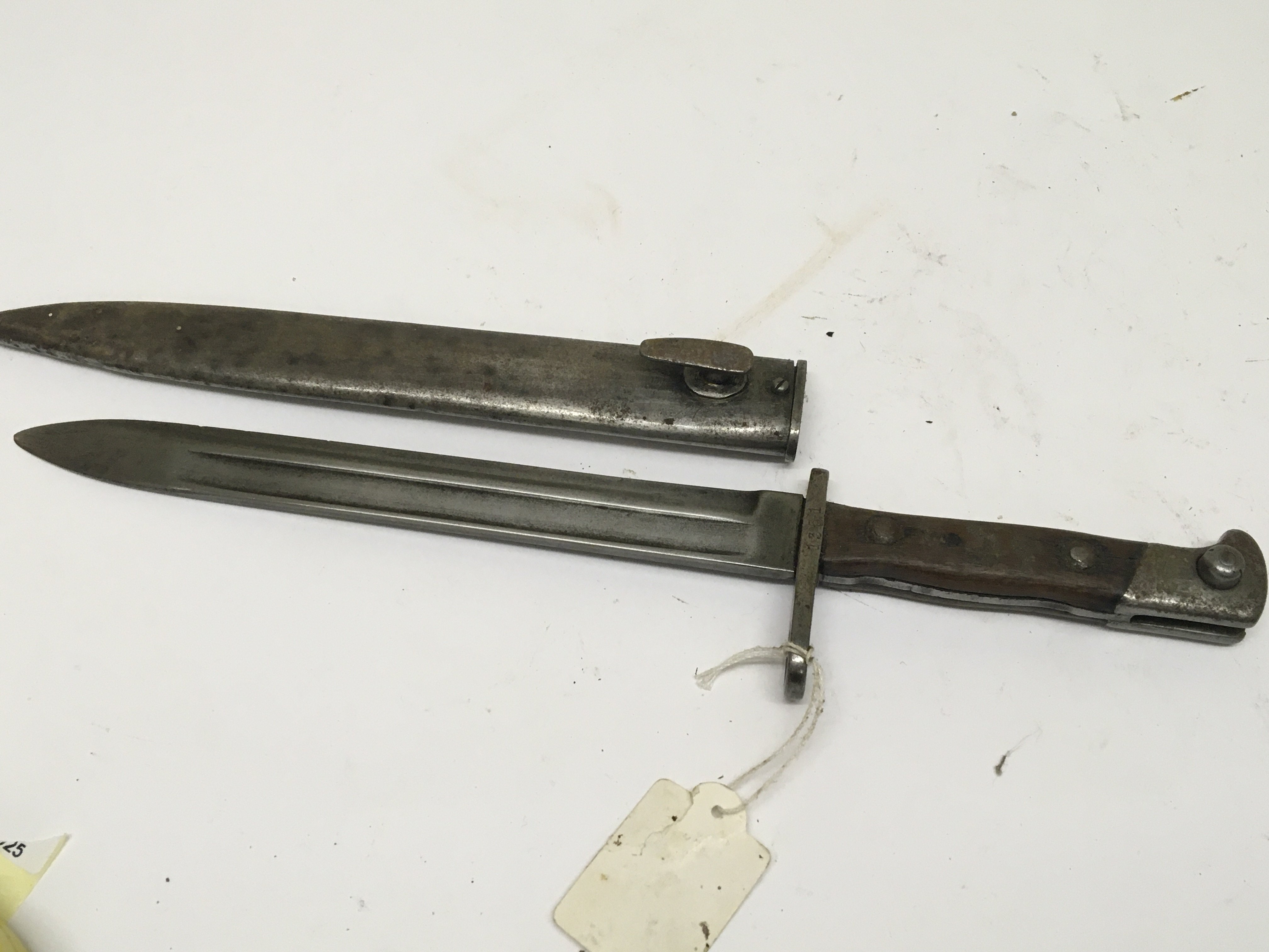 A German K98 Mauser bayonet with wood grip the blade with makers stamp. Length 39cm. NO RESERVE