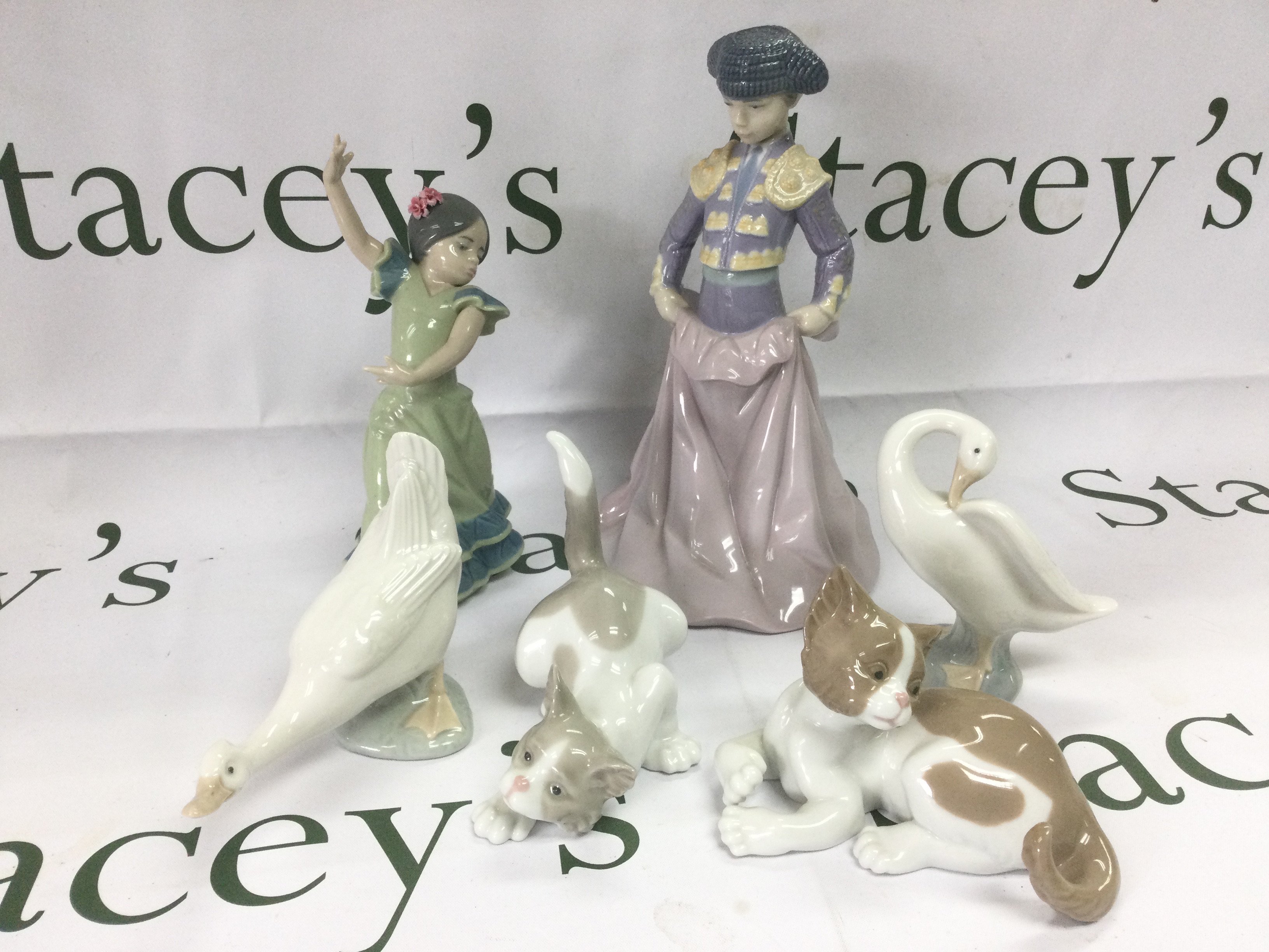 Five Lladro figures of children and animals plus a Nao figure of a goose (6). Shipping category D.