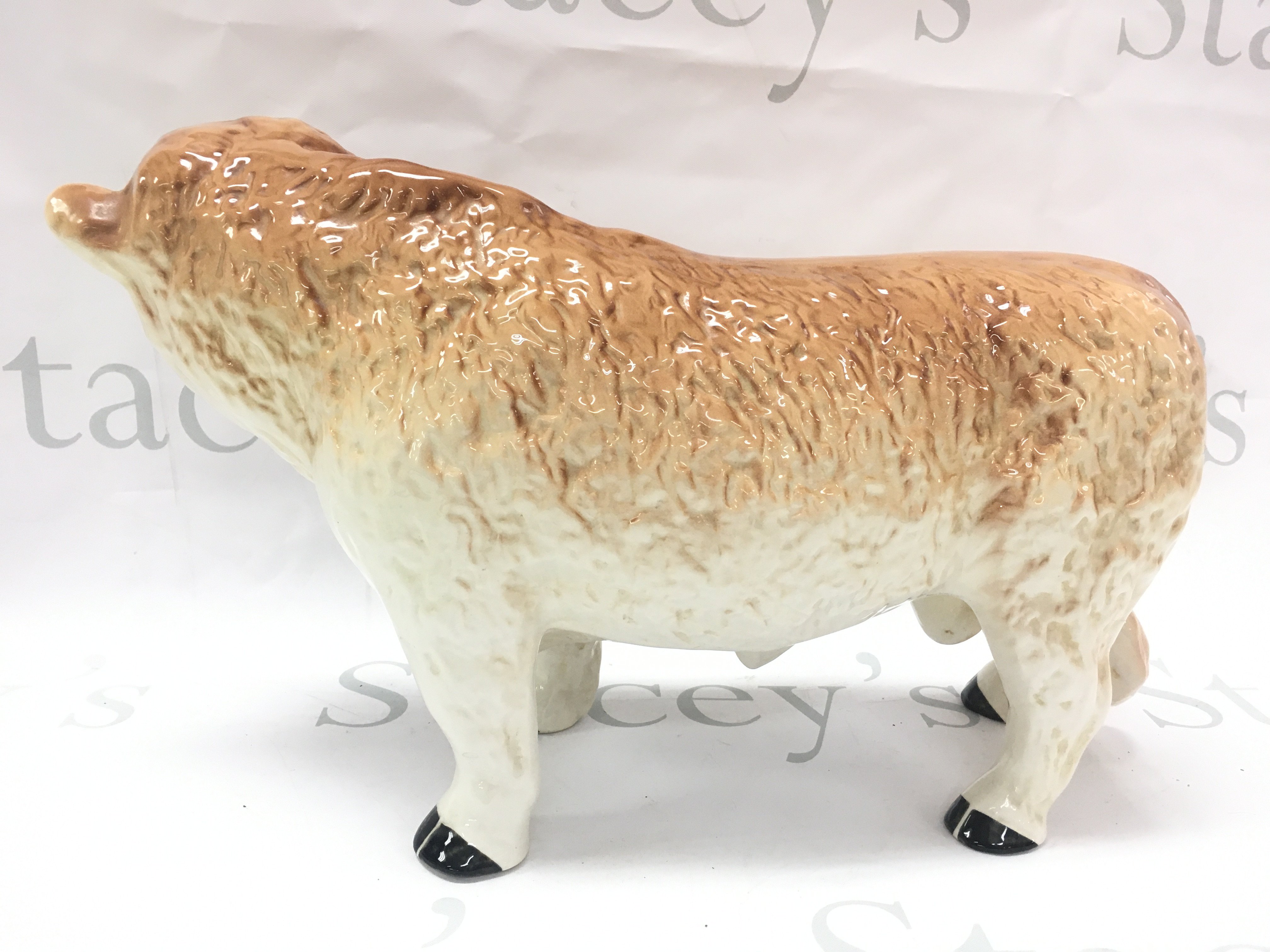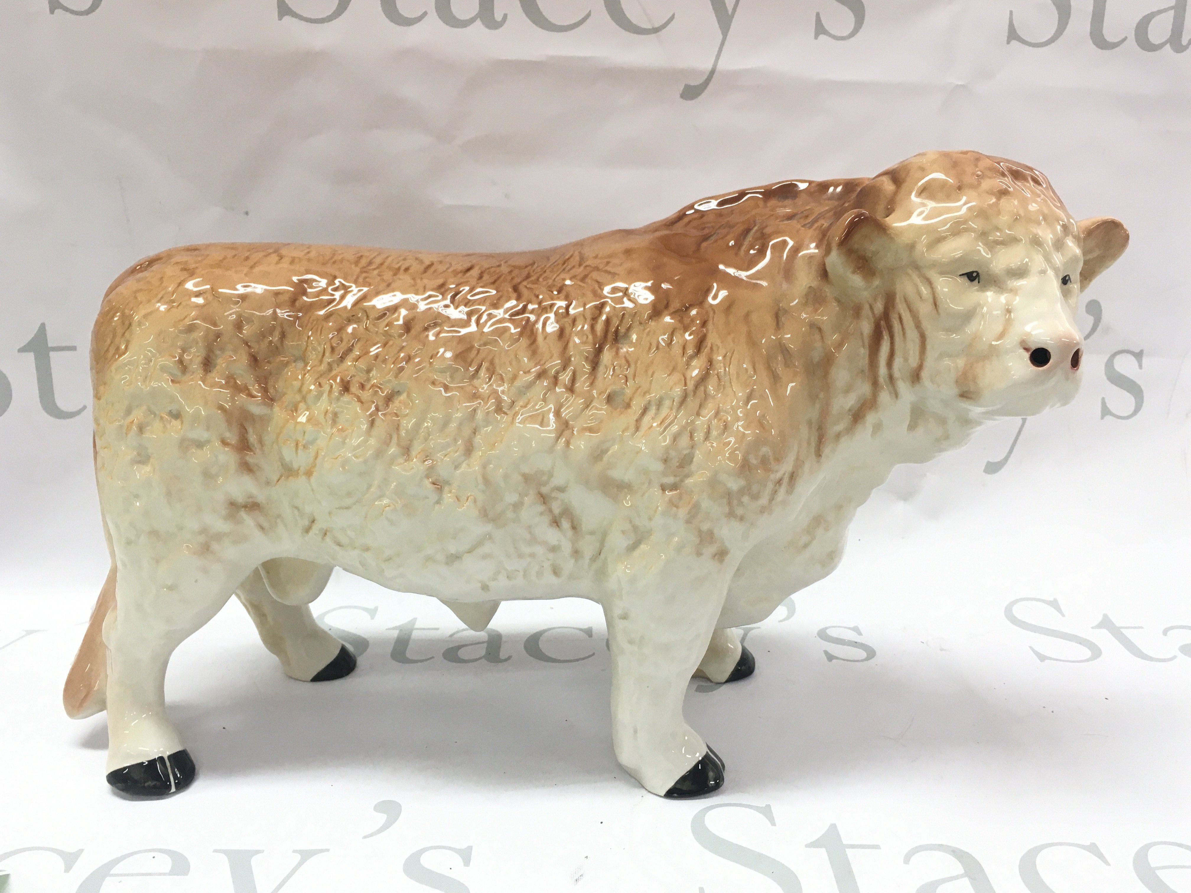 A porcelain Melba Ware Hereford bull figure 24cm tall 44cm long approximately . This lot cannot be posted
