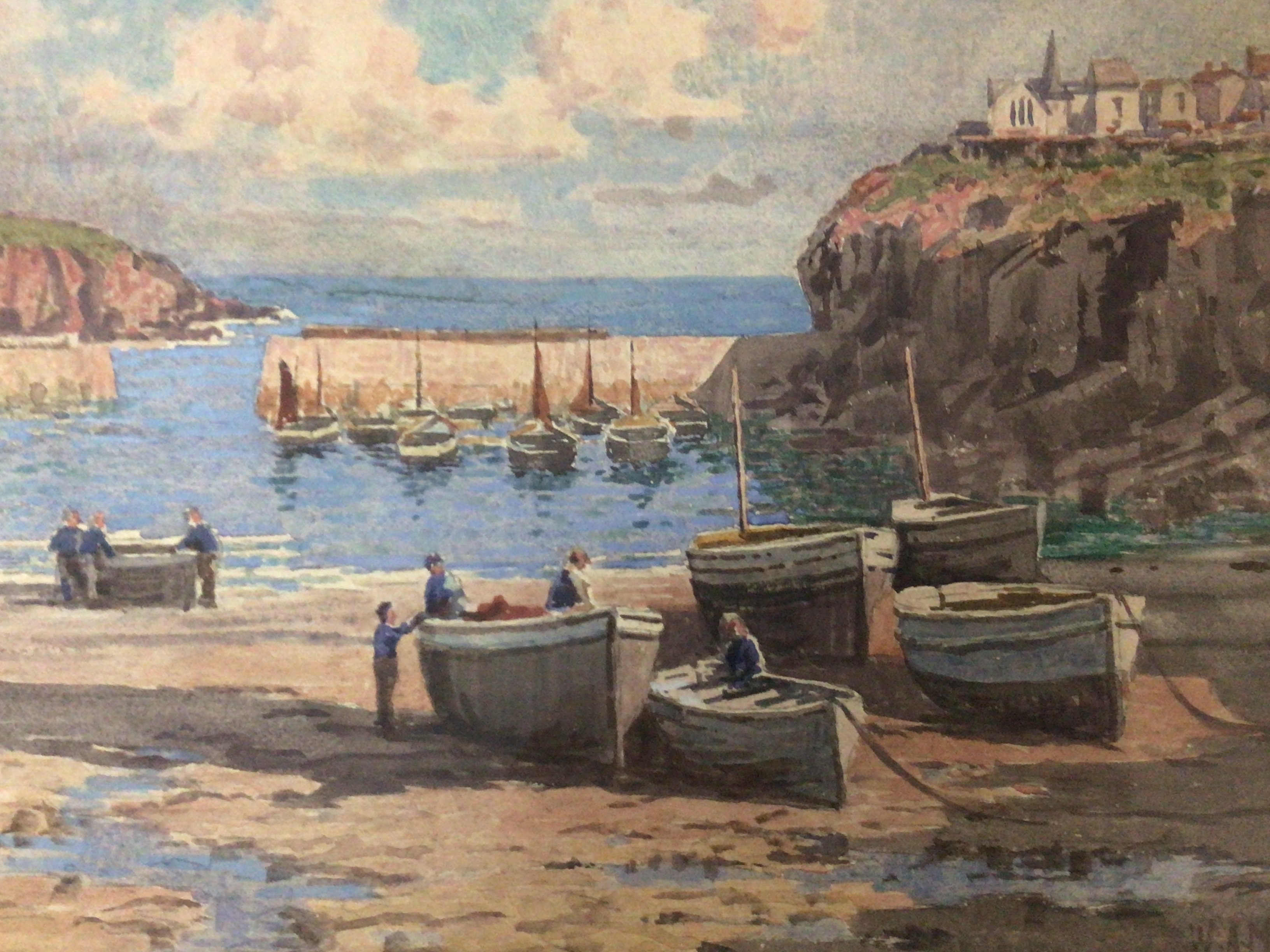 Three Cornish watercolours beach and harbour scenes signed by W.A Moody William A Moody. NO RESERVE