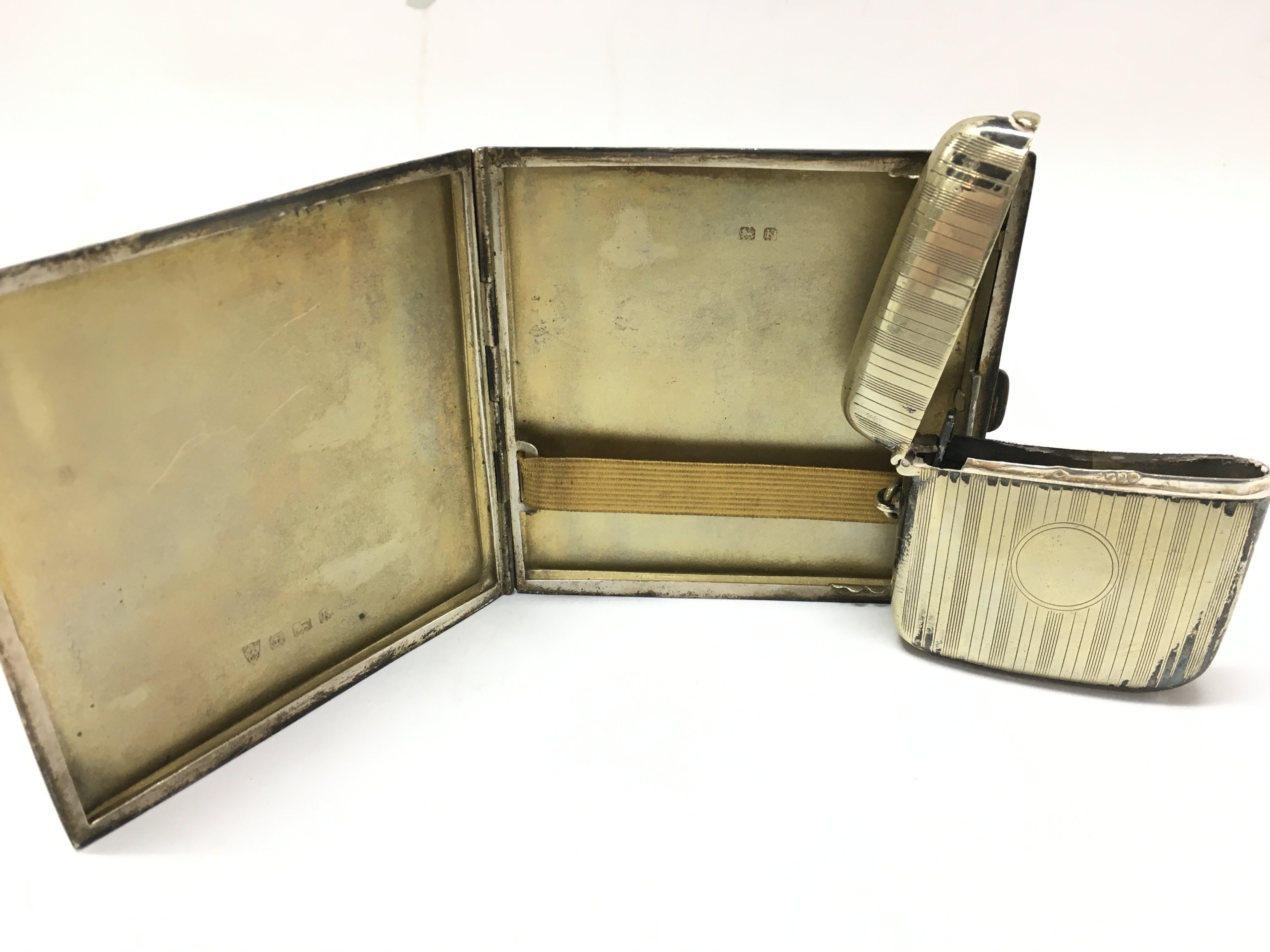 A silver plated vesta case and a silver hallmarked cigarette box . Postage category A