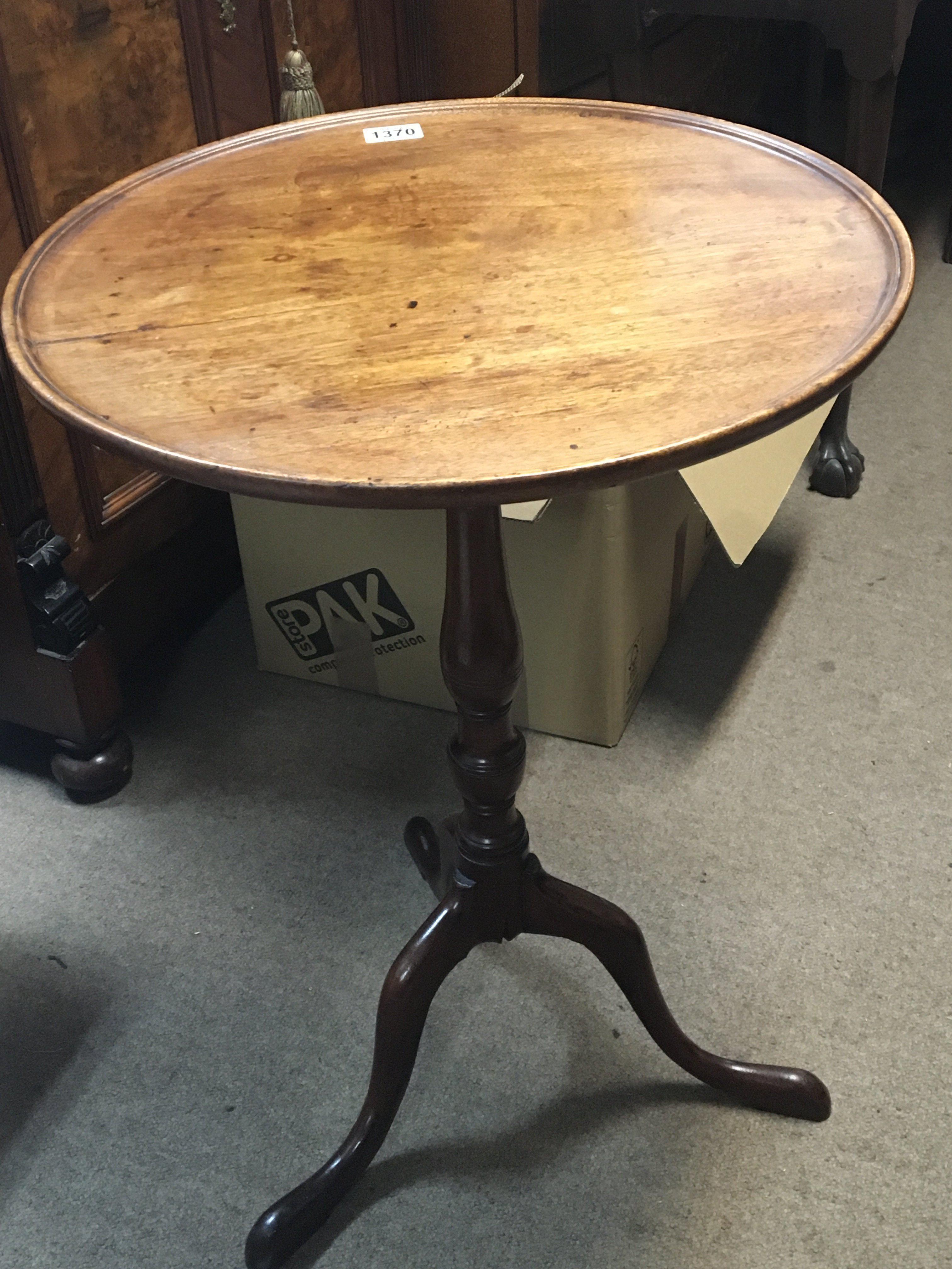 A George III mahogany tip action wine table with a circular top on a turned column. top diameter 49cm. NO RESERVE