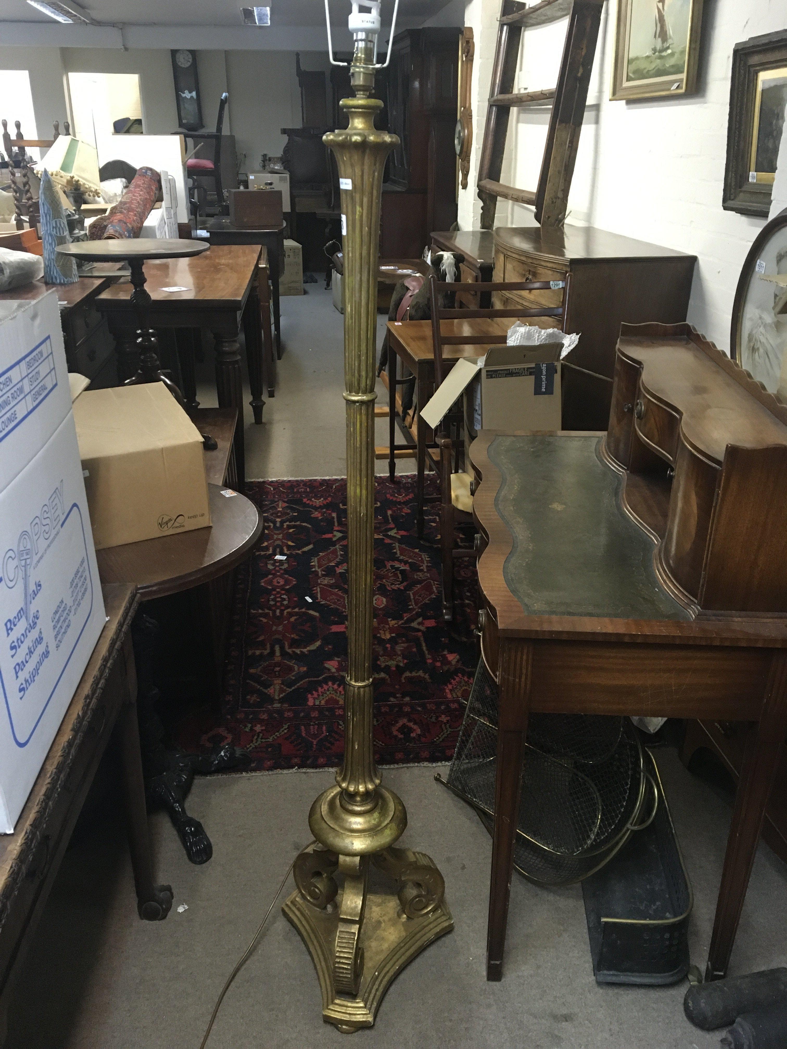 A gilt wood standard lamp with a fluted column and scroll base. NO RESERVE