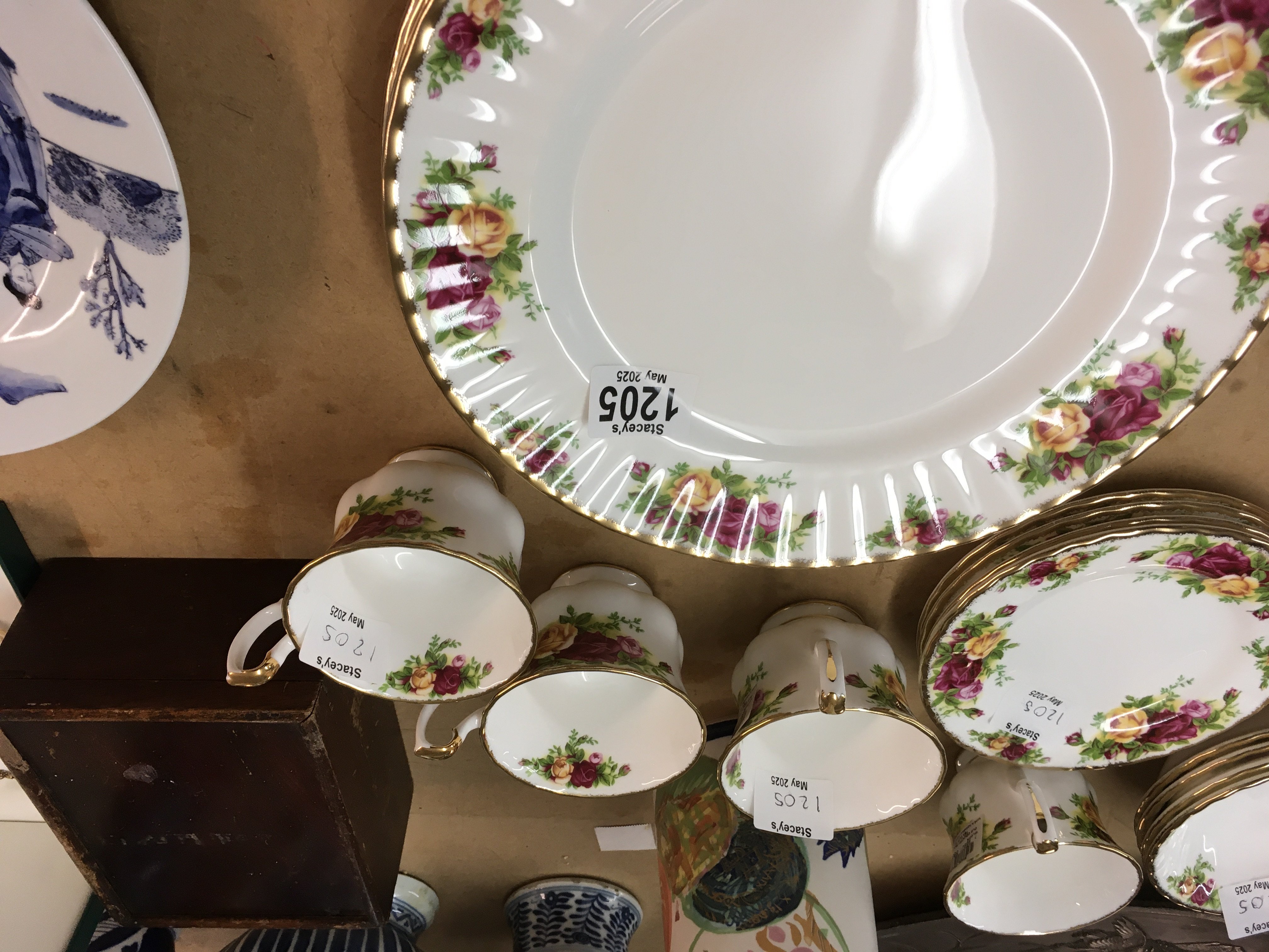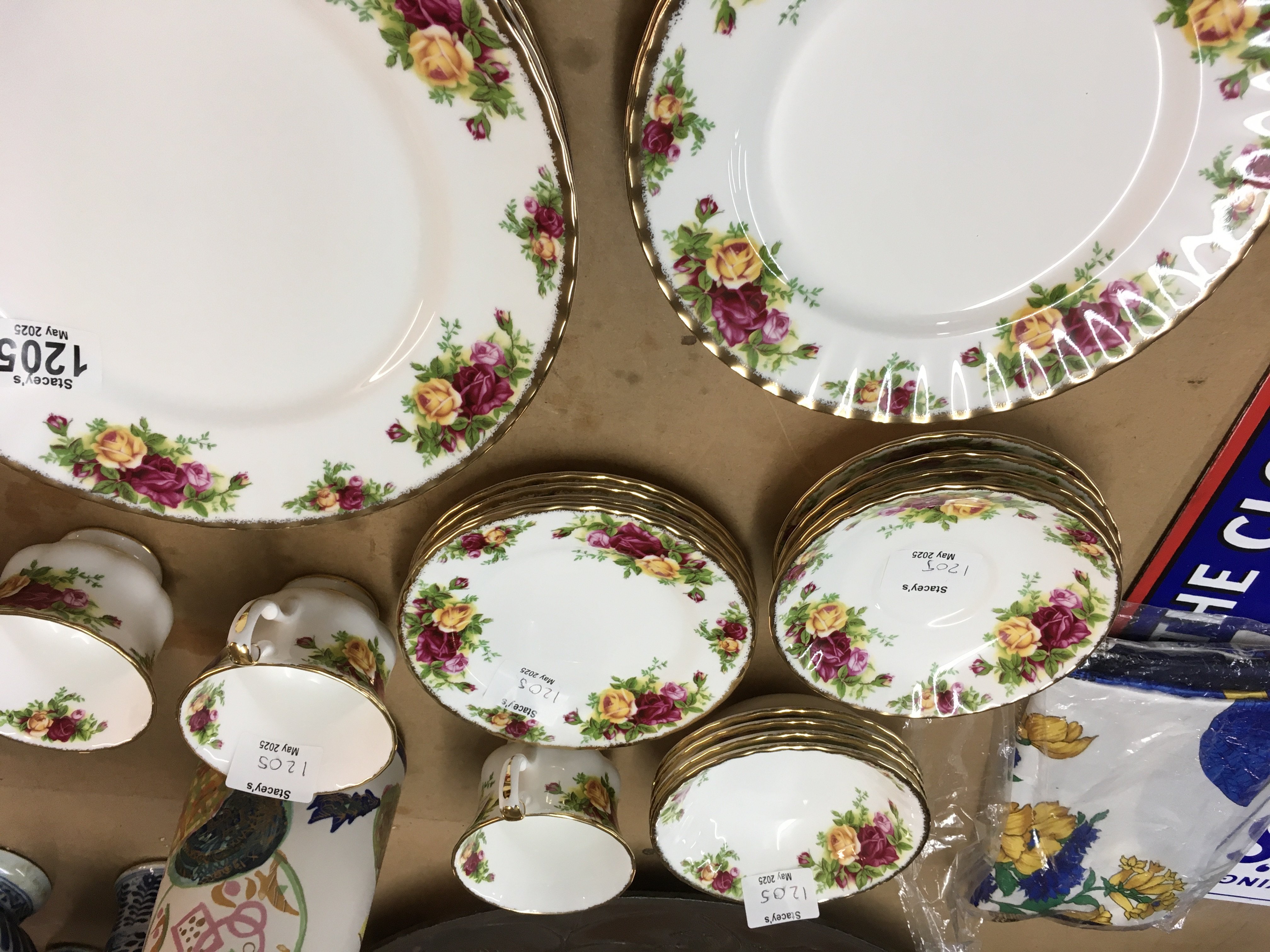 A collection of Royal Albert Country rose cups saucers bowls dinners plates