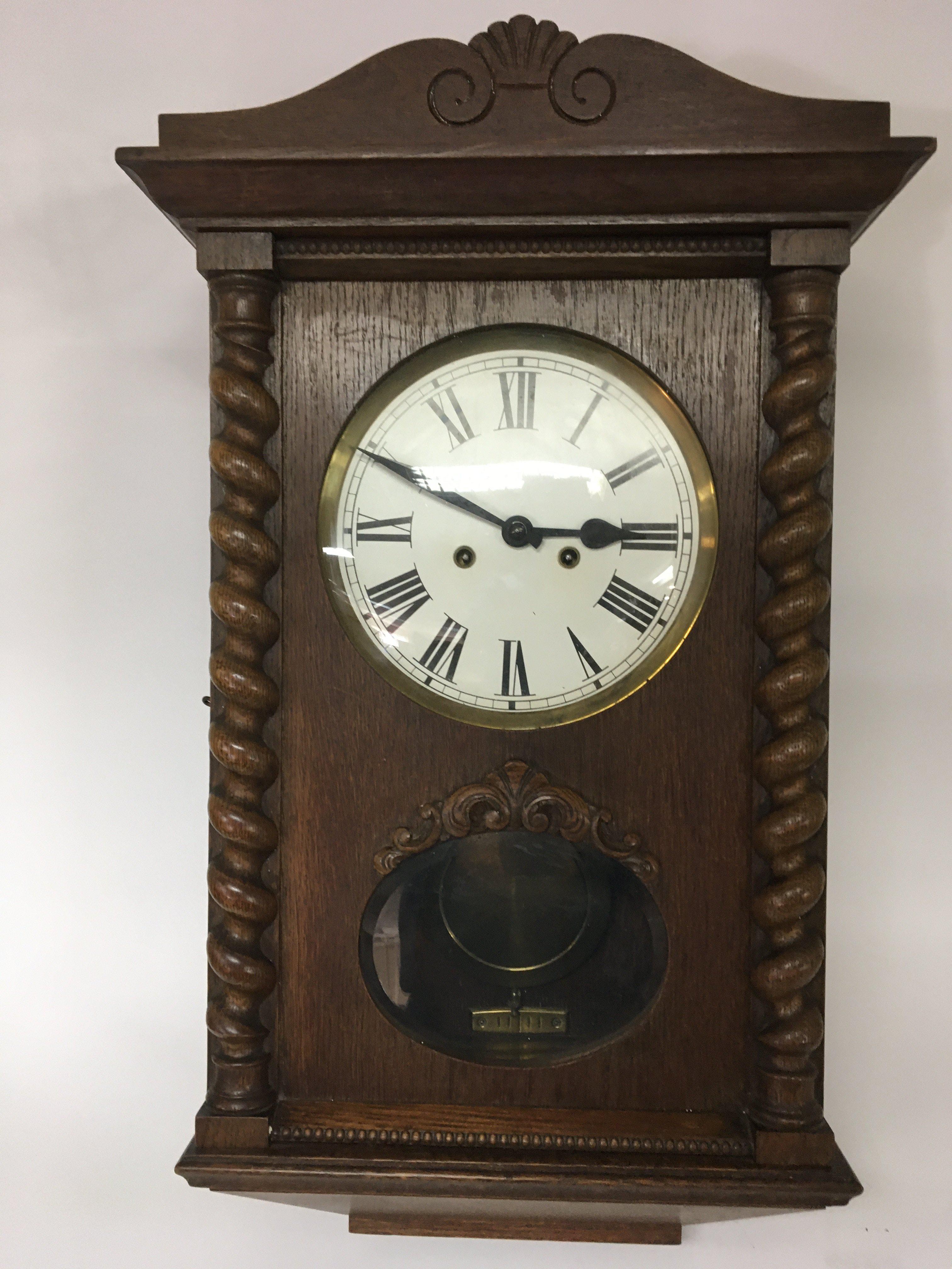 Two Vienna Type walnut cased wall clocks with enamel dials key and pendulum. NO RESERVE