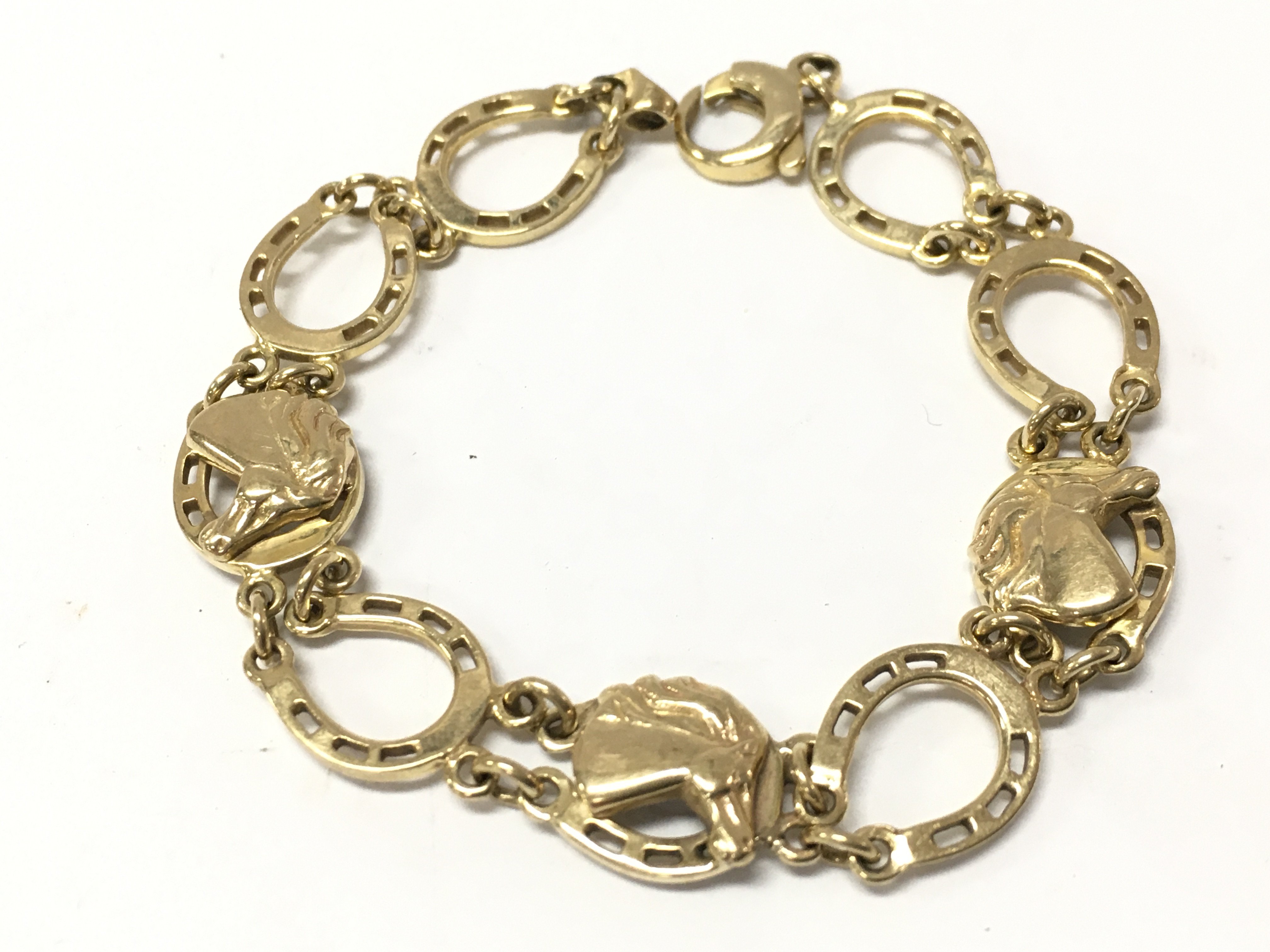 A 9ct gold horse shoe bracelet , 13.6g total weight. Postage category A