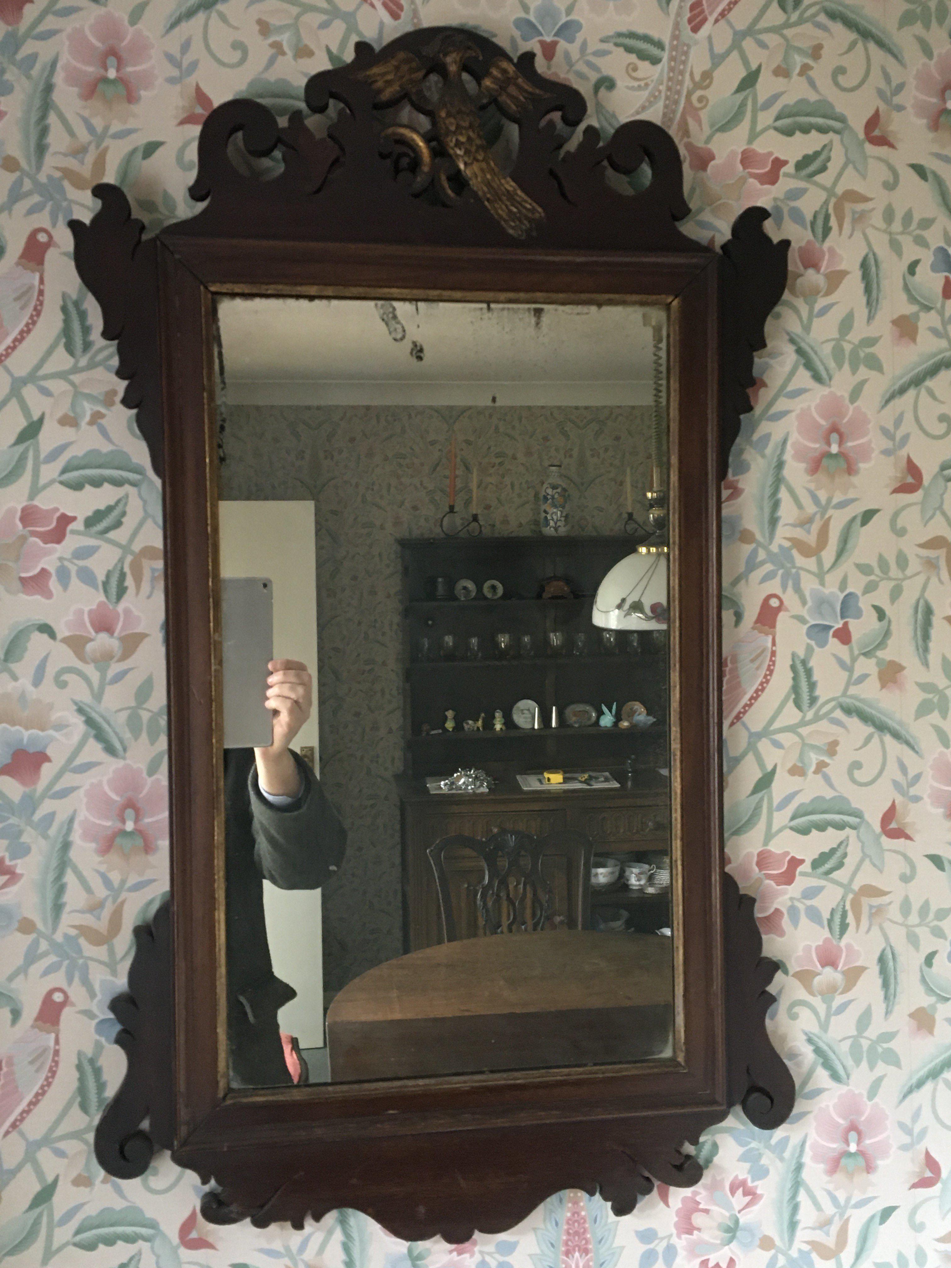 A George III wall mirror with pierced scroll cresting and of rectangular shape. 51x31cm. NO RESERVE