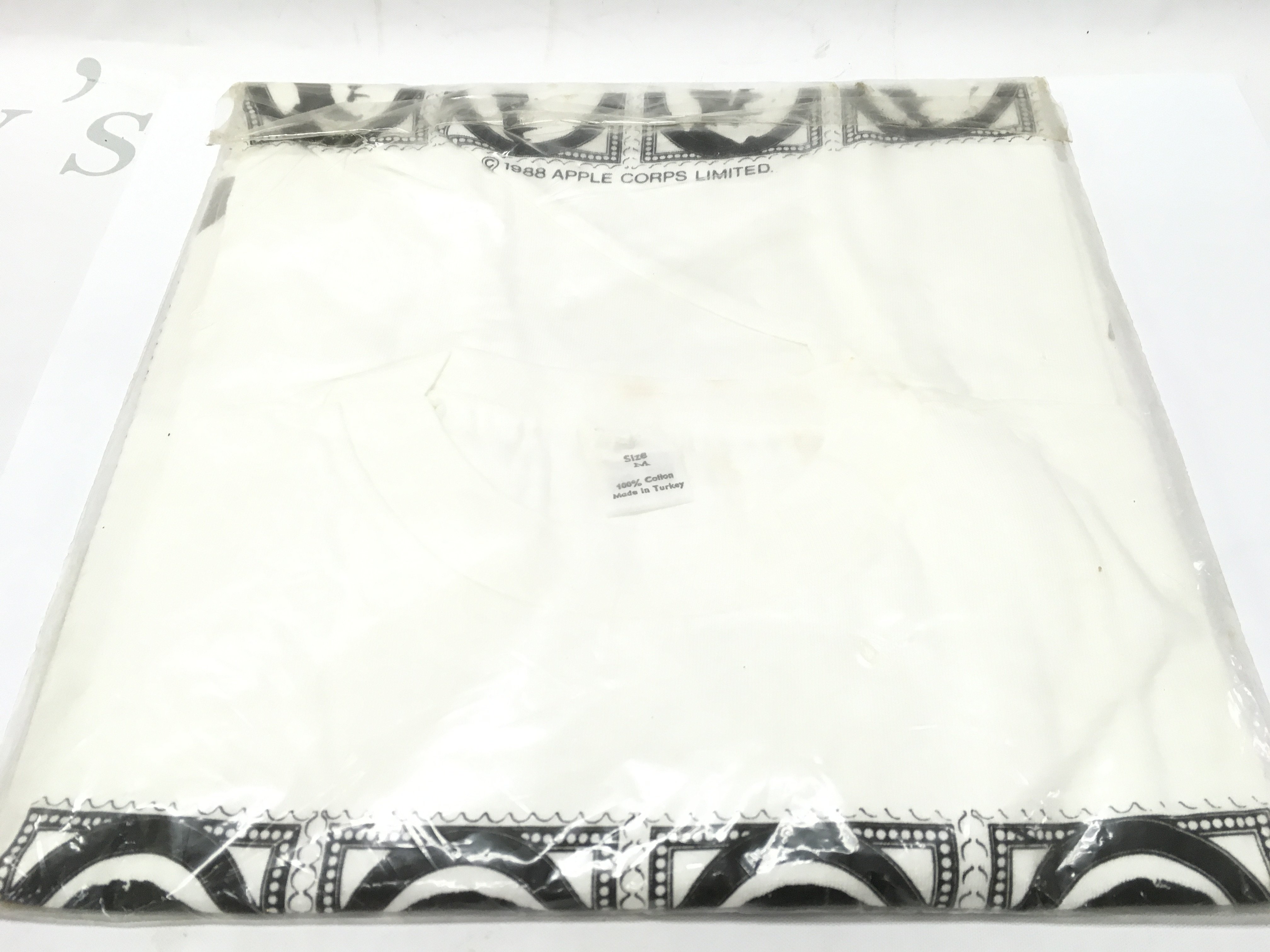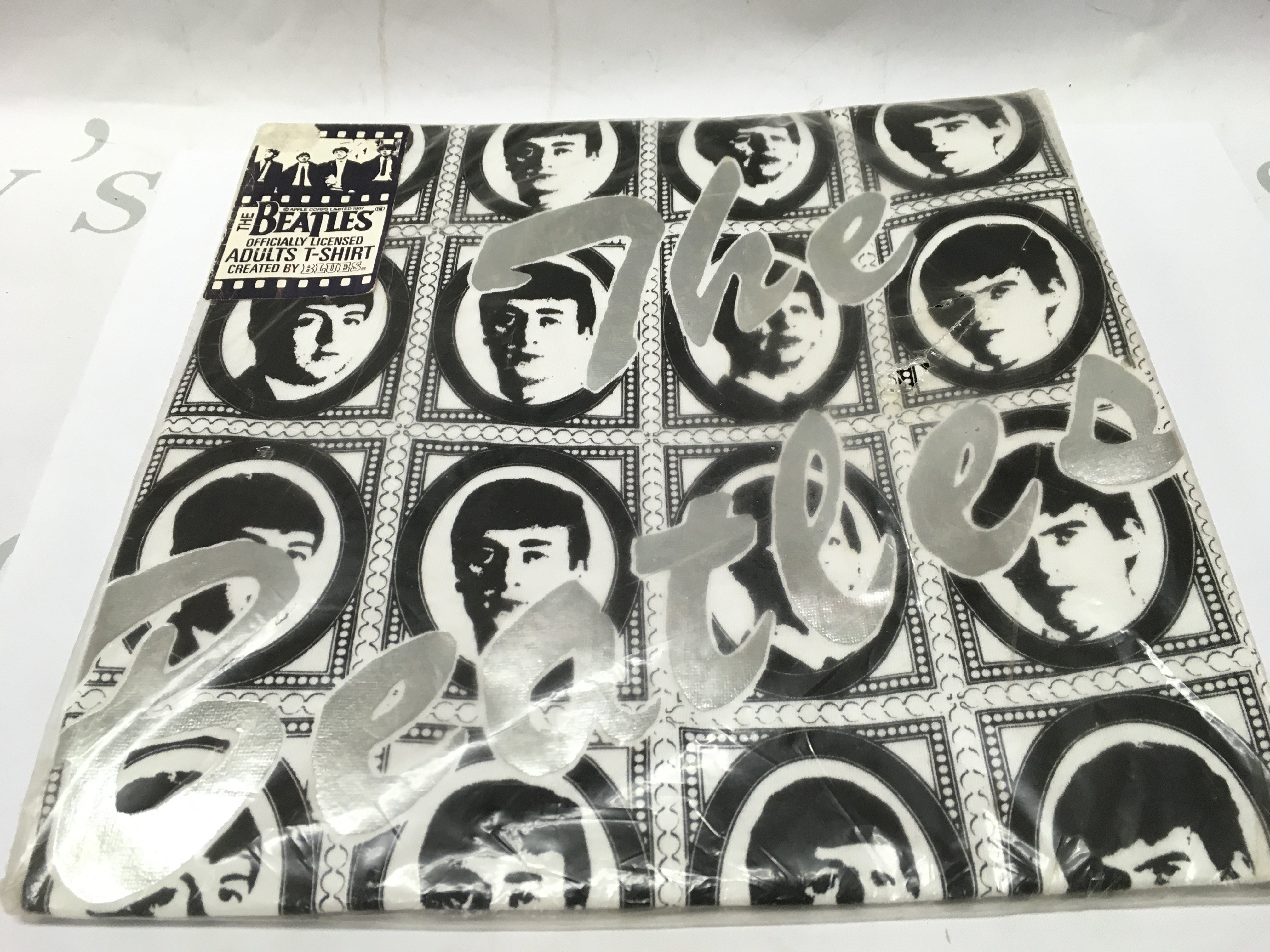 A vintage bagged Beatles t shirt created by Blues . 1988 Apple Corps Limited . Postage category b