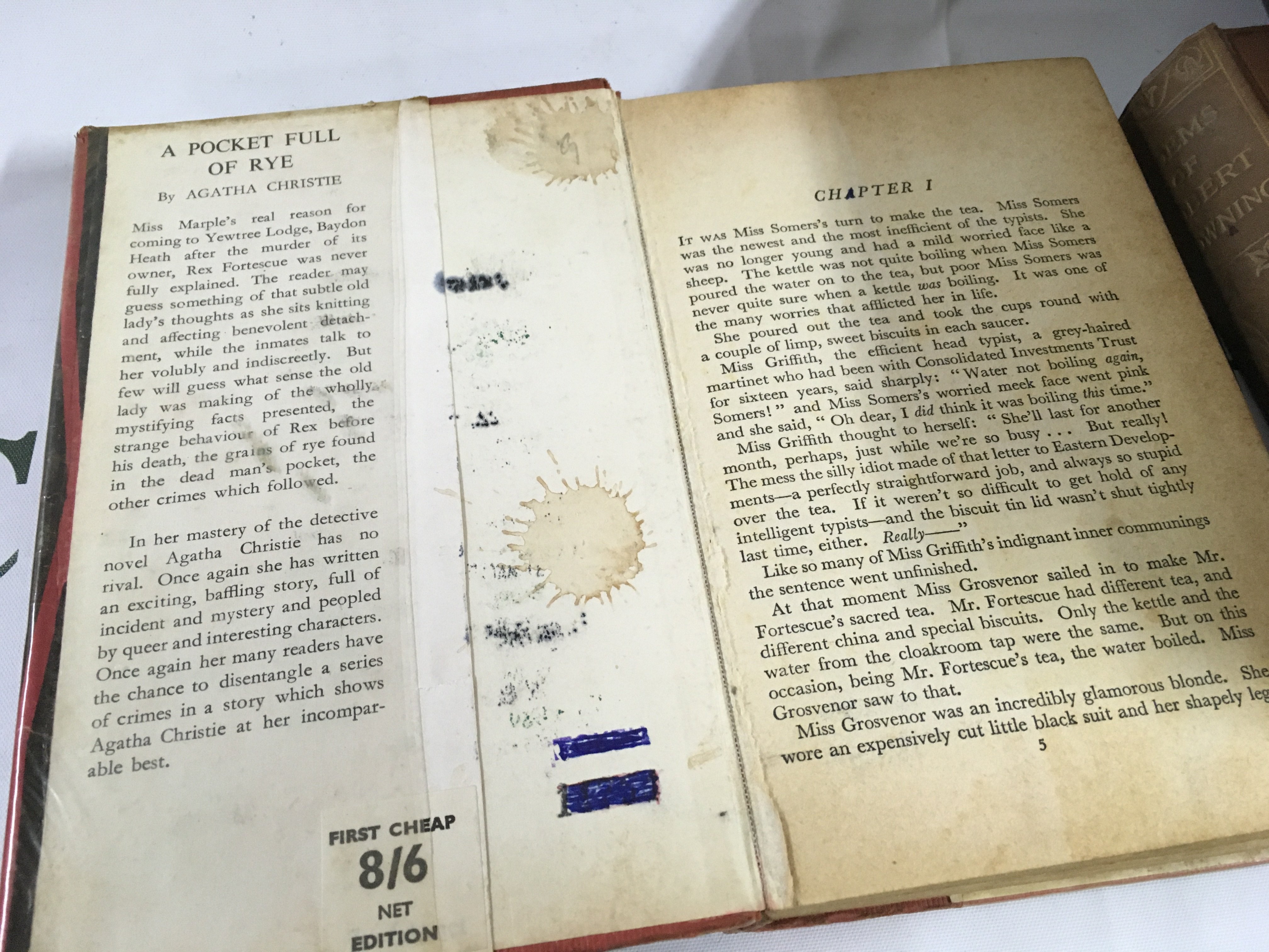 Vintage books including Agatha Christie A pocket full of rye, They do it with mirrors, Cards on the table , Poems of Robert Browning etc. NO RESERVE
