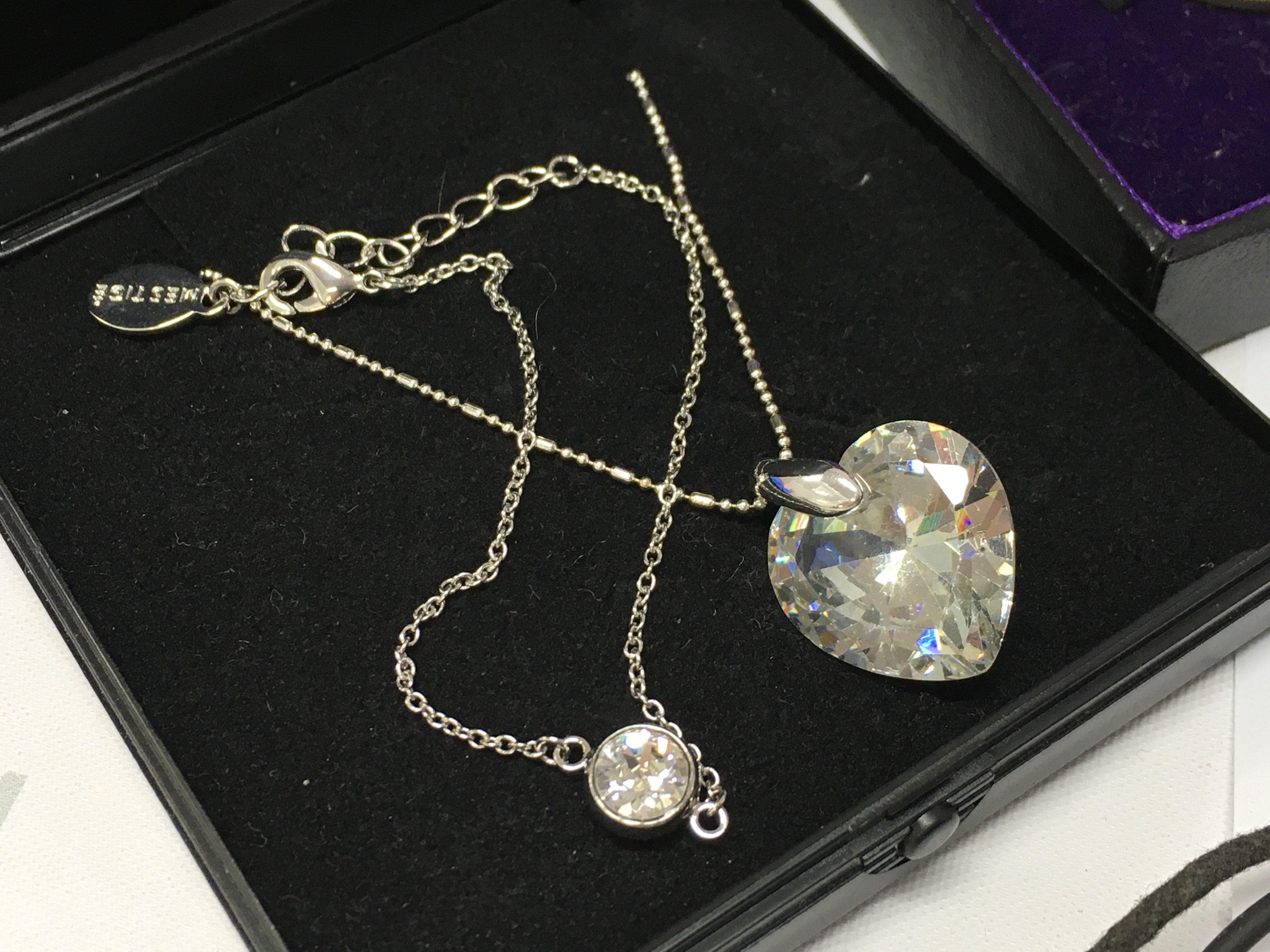 A box of costume jewellery including silver rings, a small 9ct gold chain, stone pendant necklaces etc. postage category B
