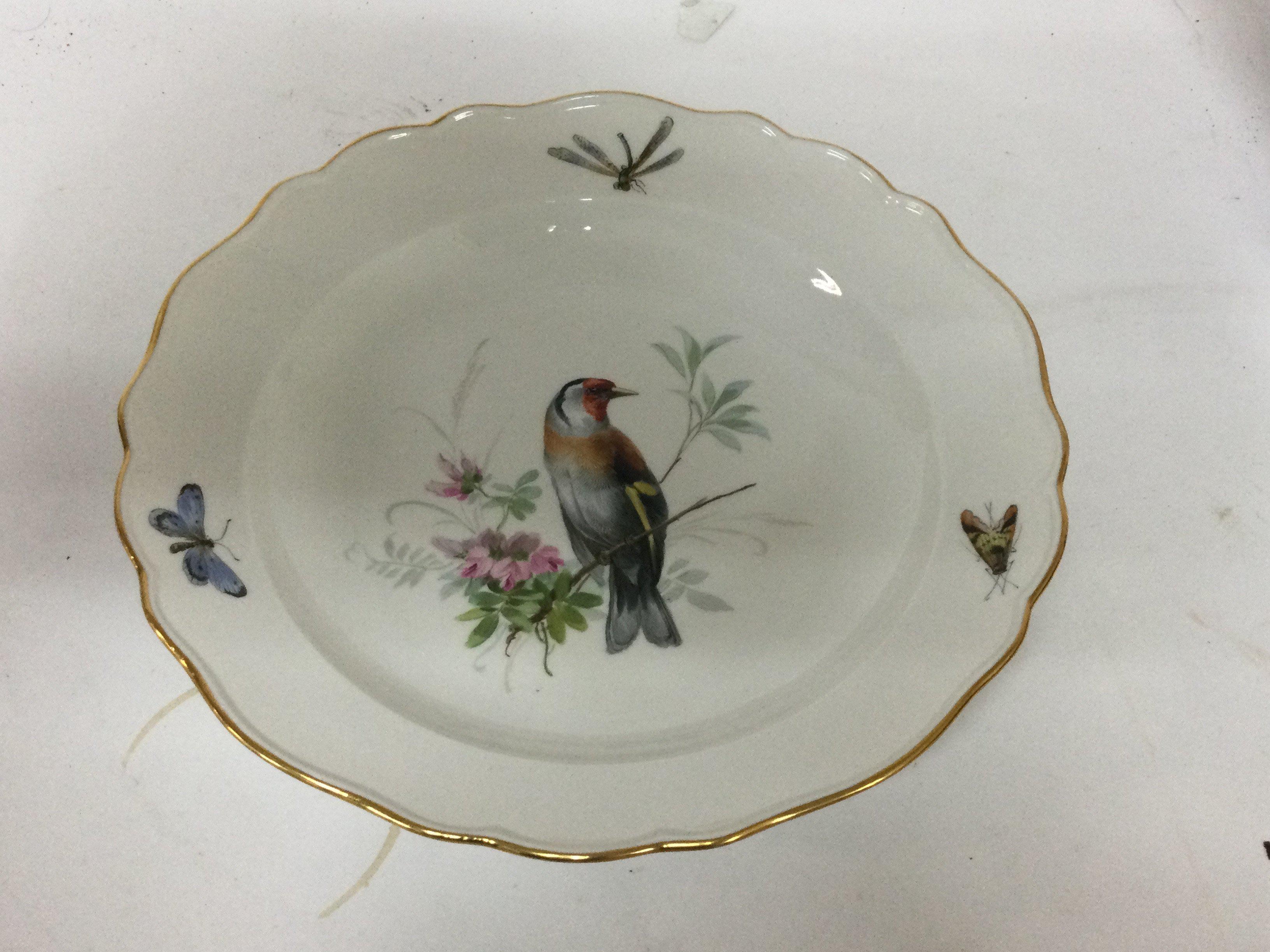 A Meissen plate decorated with birds butterflies flowers and foliage.