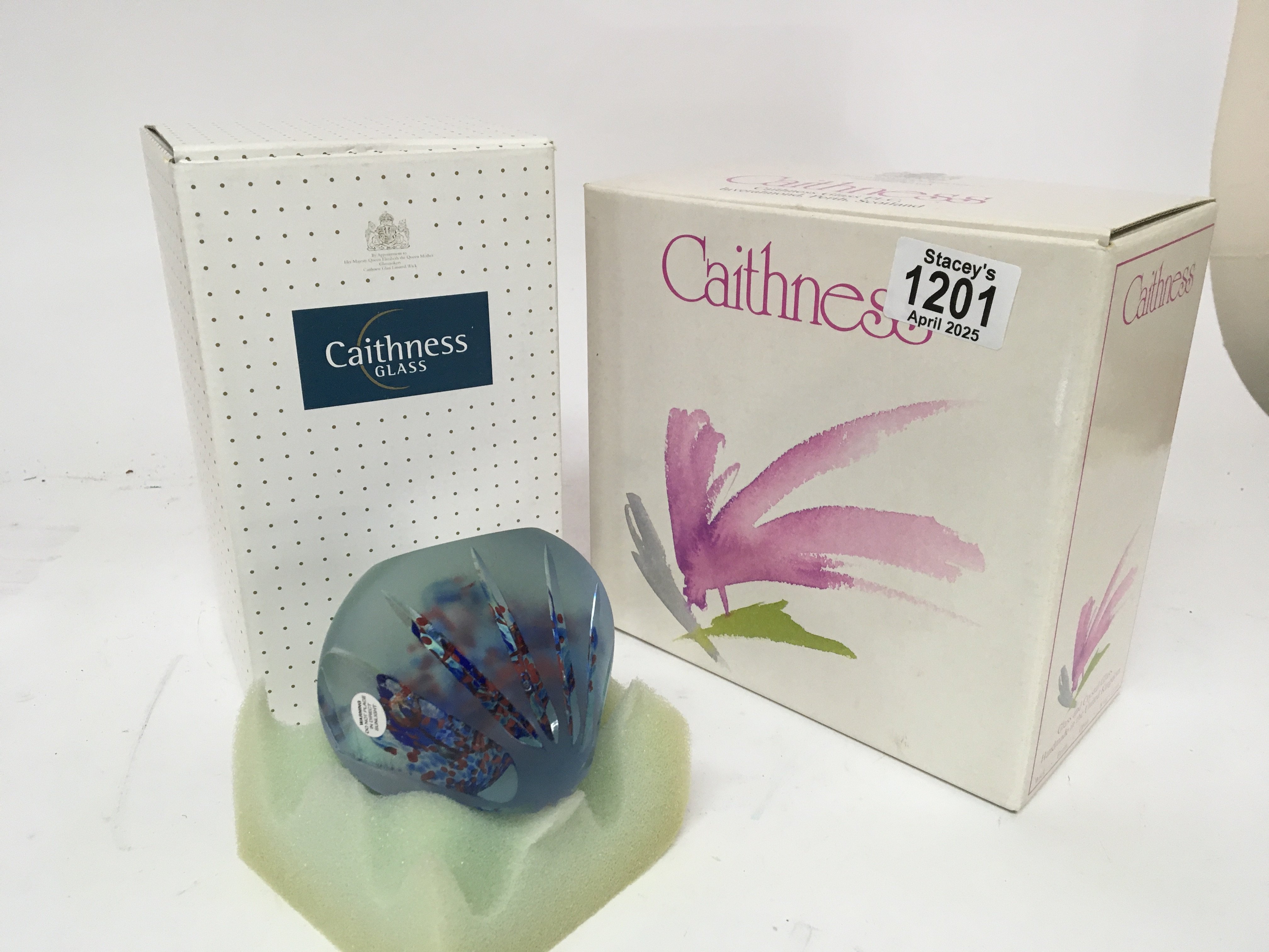 A limited edition Caithness paperweights Vigilance limited edition 94/250 with a light stand and boxed glasses. NO RESERVE