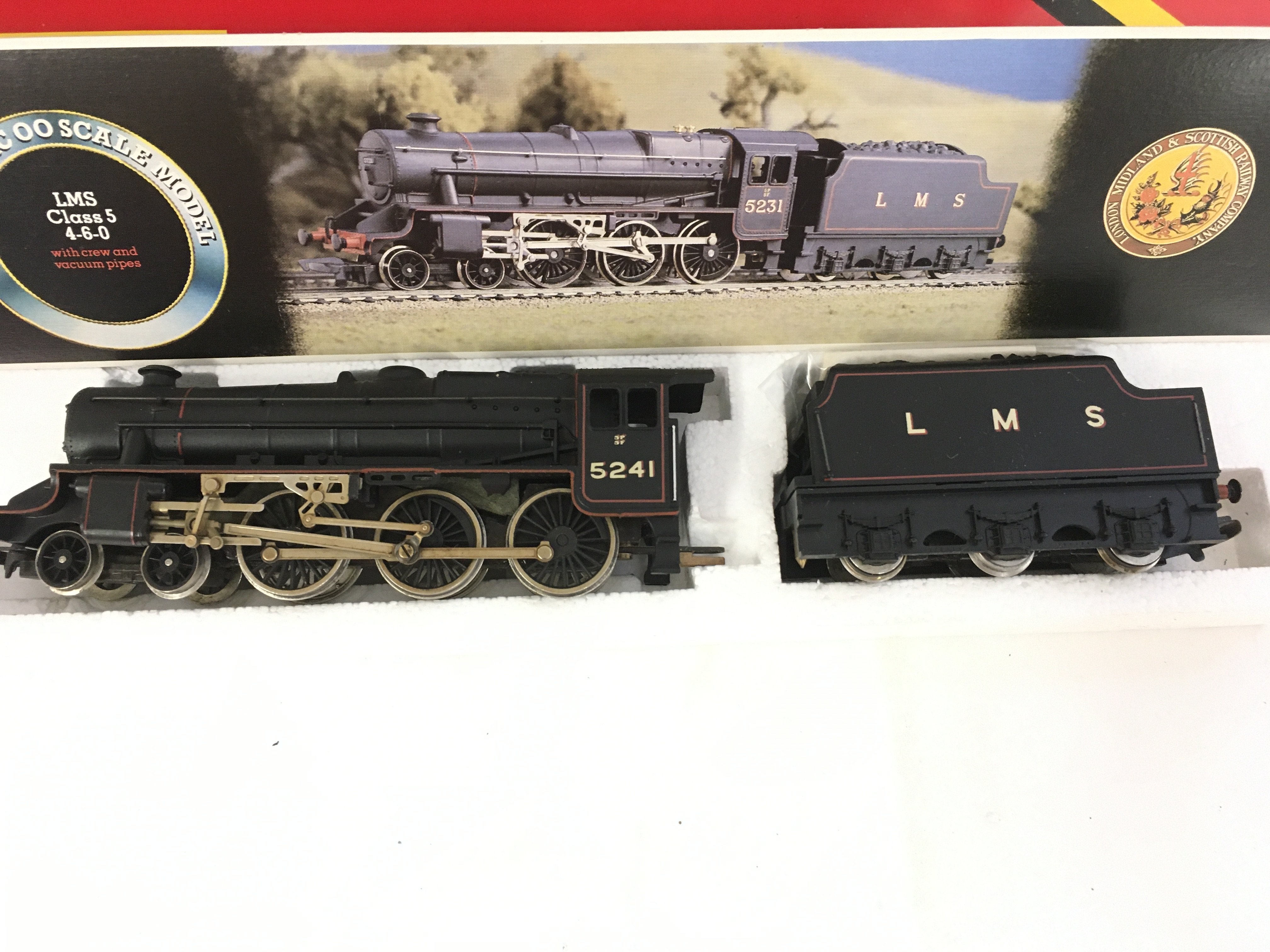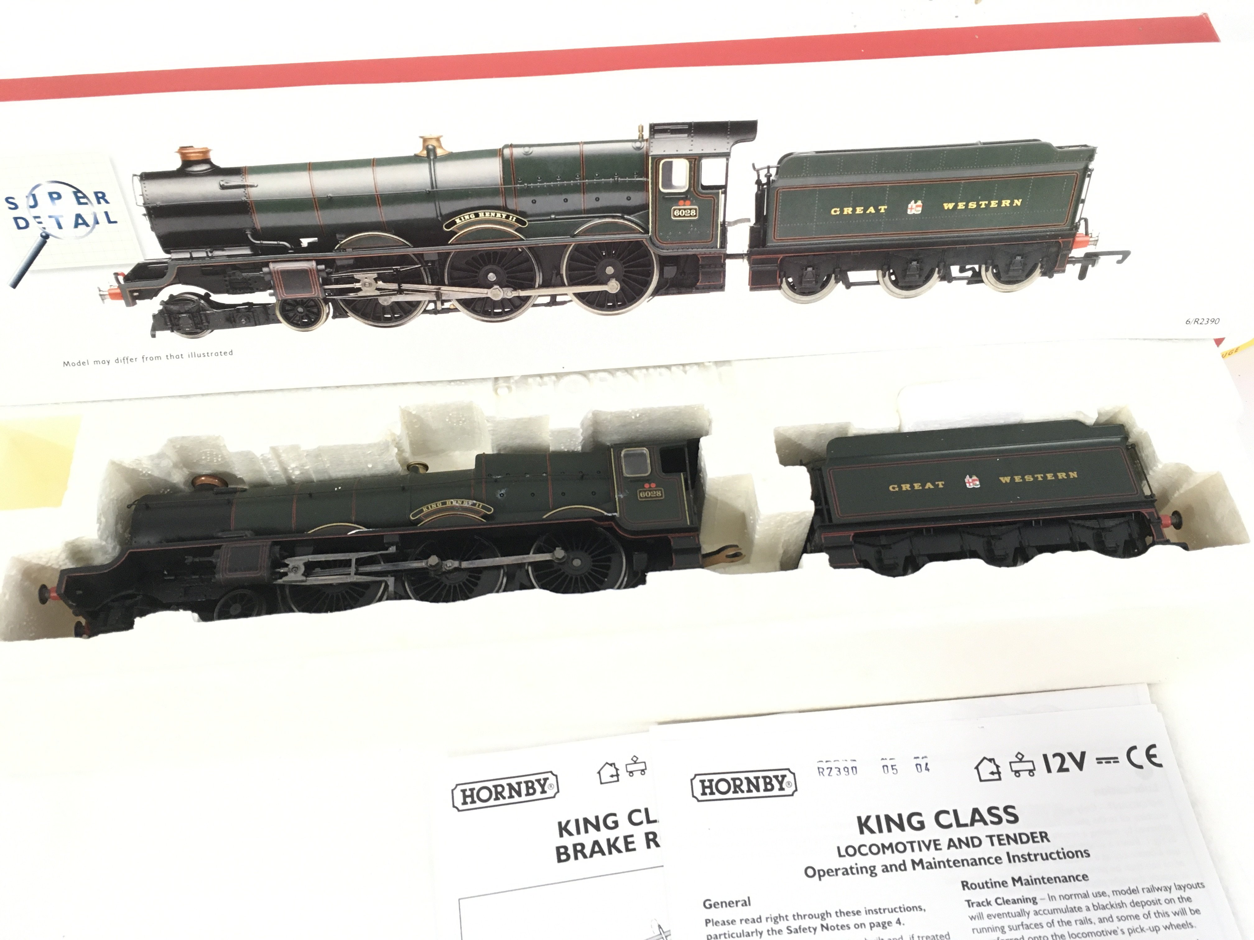 A group of 3 boxed Hornby model locomotives 00 gauge. Features R840 Black Five ….R858 class 5 Loco..R2390 King Henry. No reserve