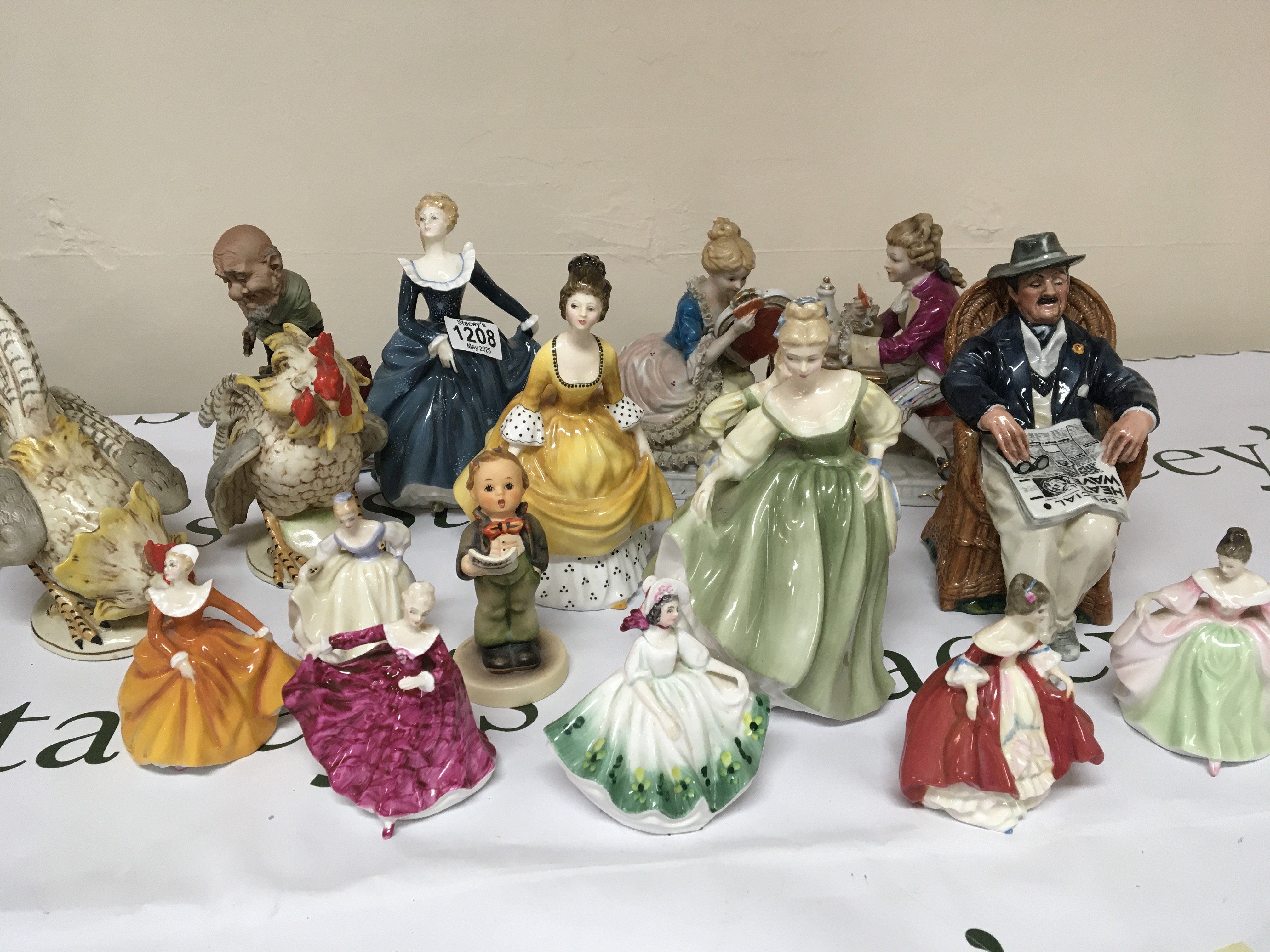A collection of Royal Doulton porcelain figures and other decorative ceramics.