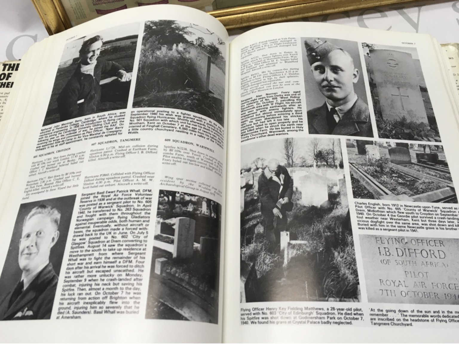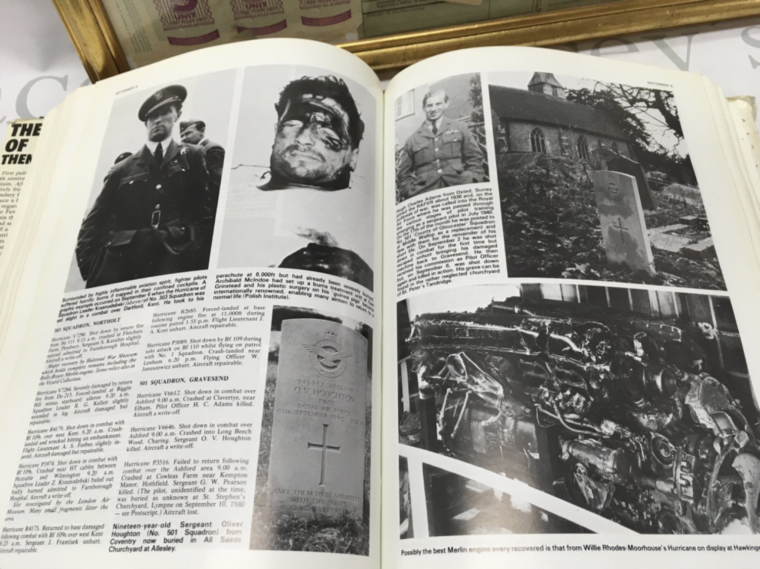 A Battle Of Britain then and now hardback book , Mk V Edited by Winston G Ramsey and a framed collage of WW2 newspaper clippings and booklets.