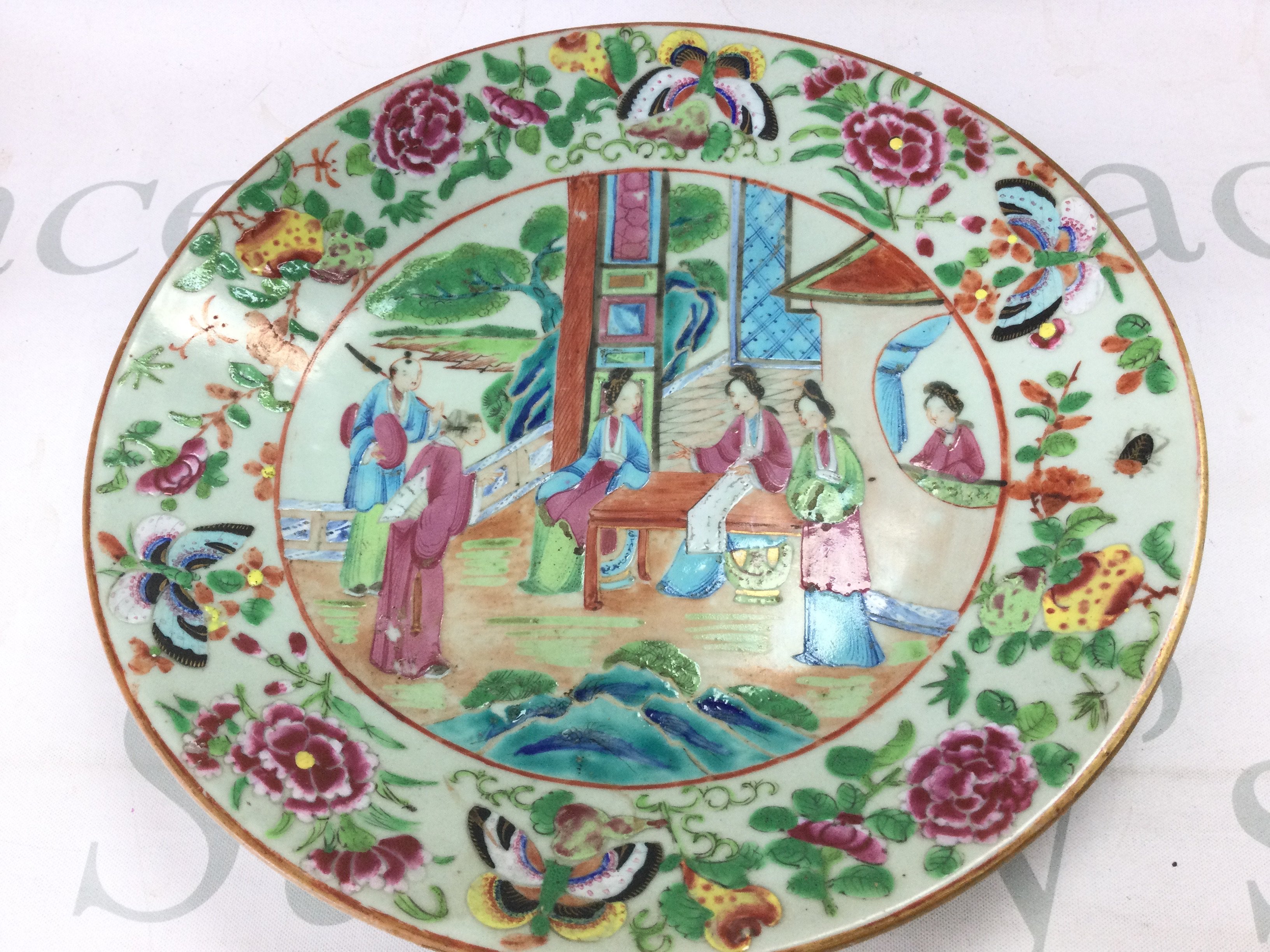A Chinese Cantonese Famille Rose dish 26cm wide . Hairline crack on the underside of the dish. NO RESERVE