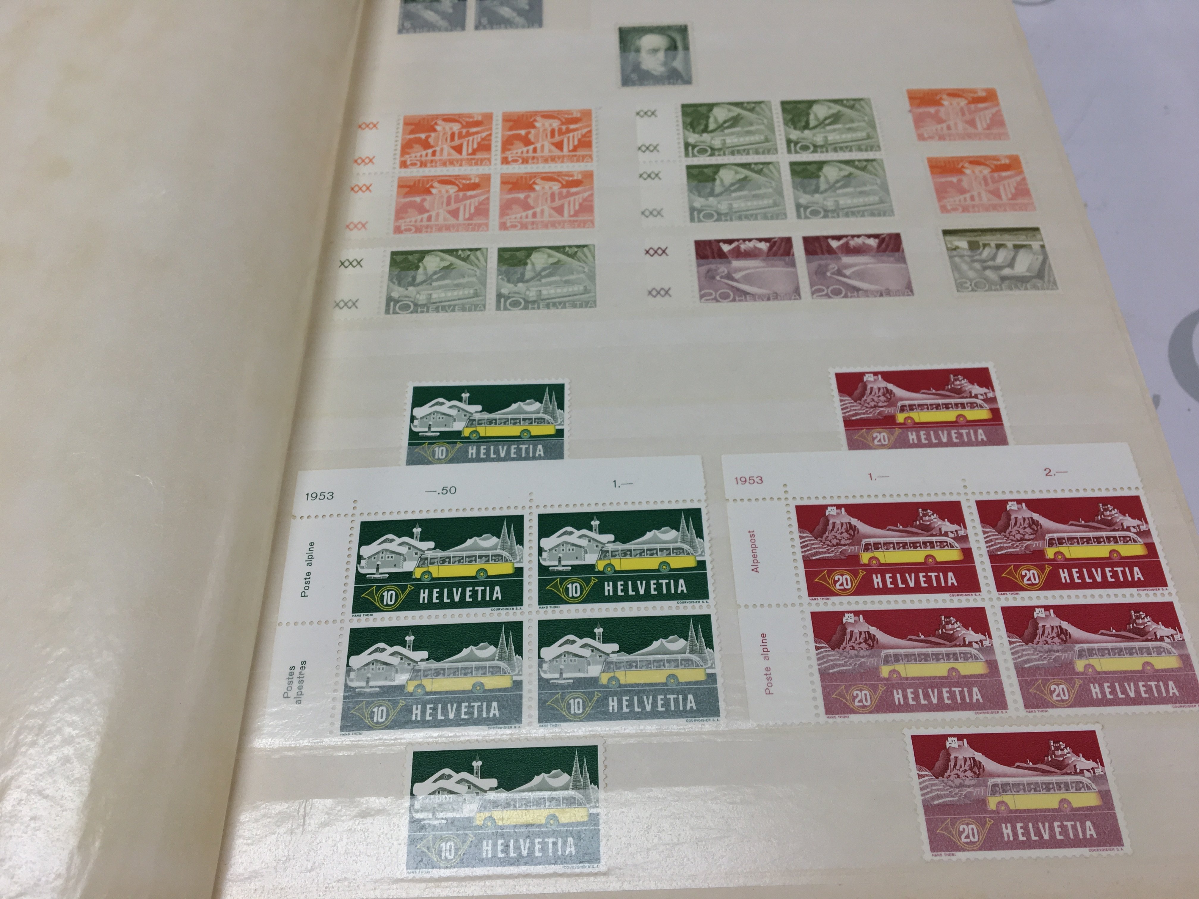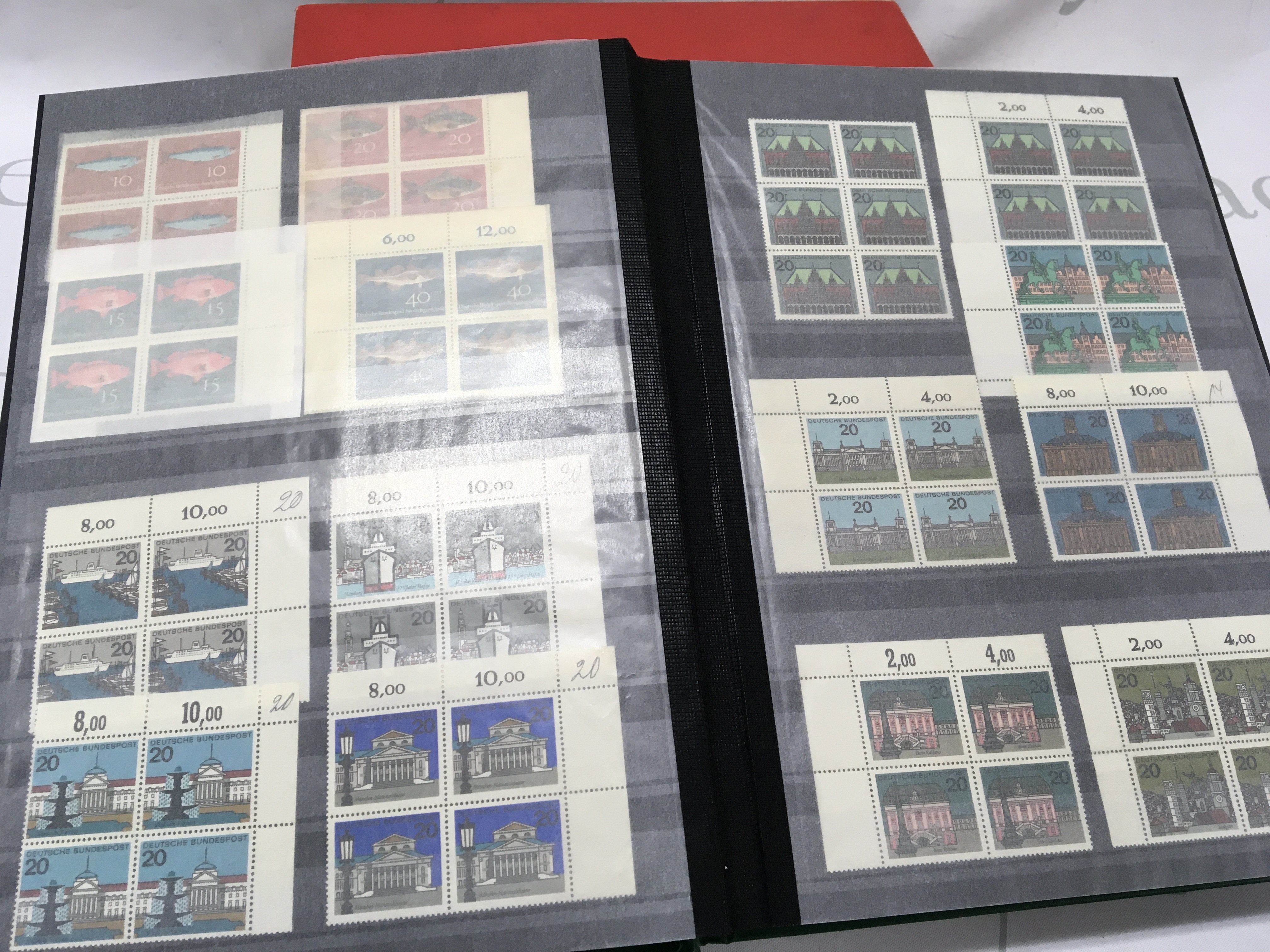 Three albums including two albums of German stamps and one of Swiss stamps, mainly unused of the Second half of the 20th century in blocks with margins . Postage category B