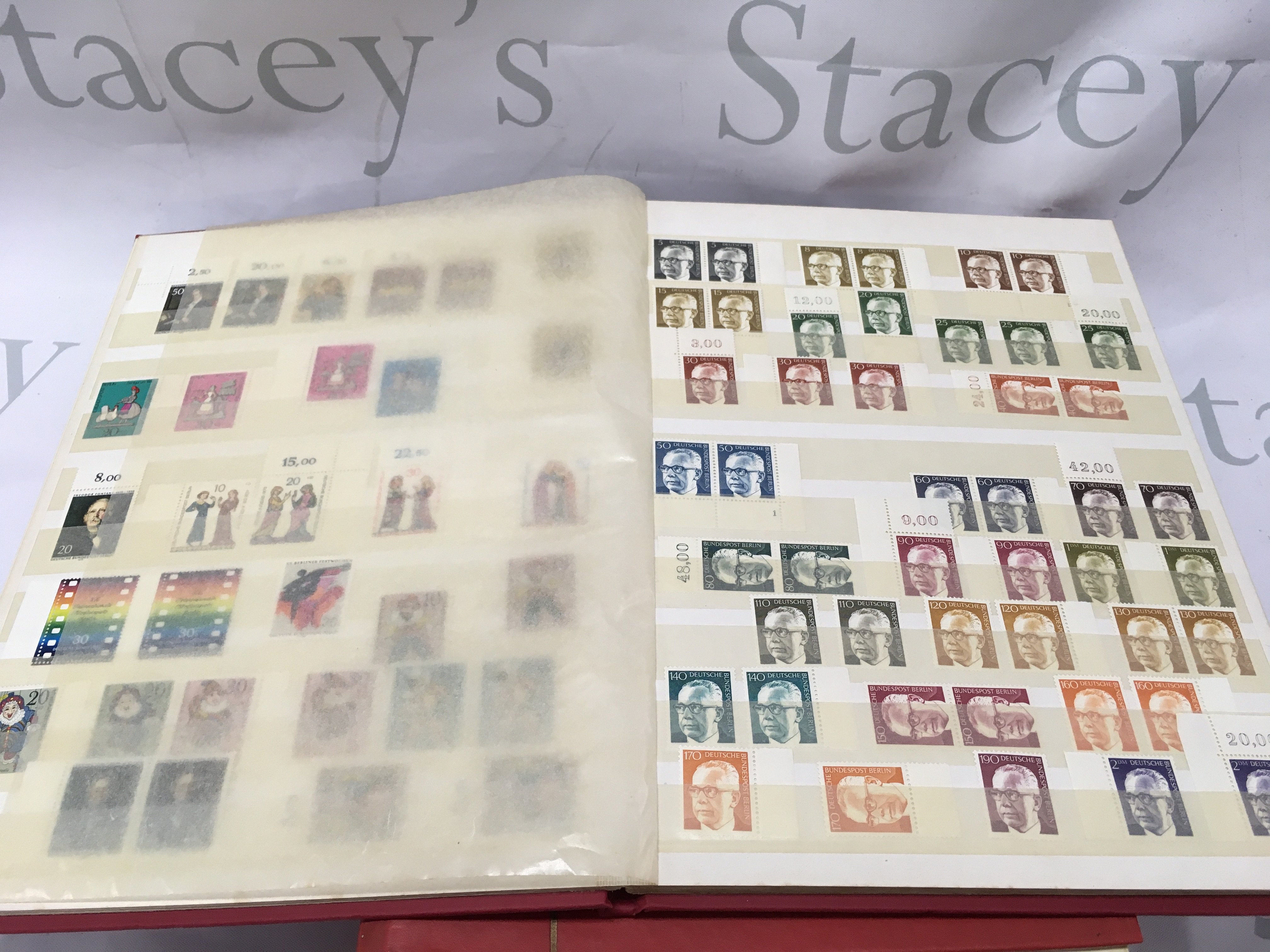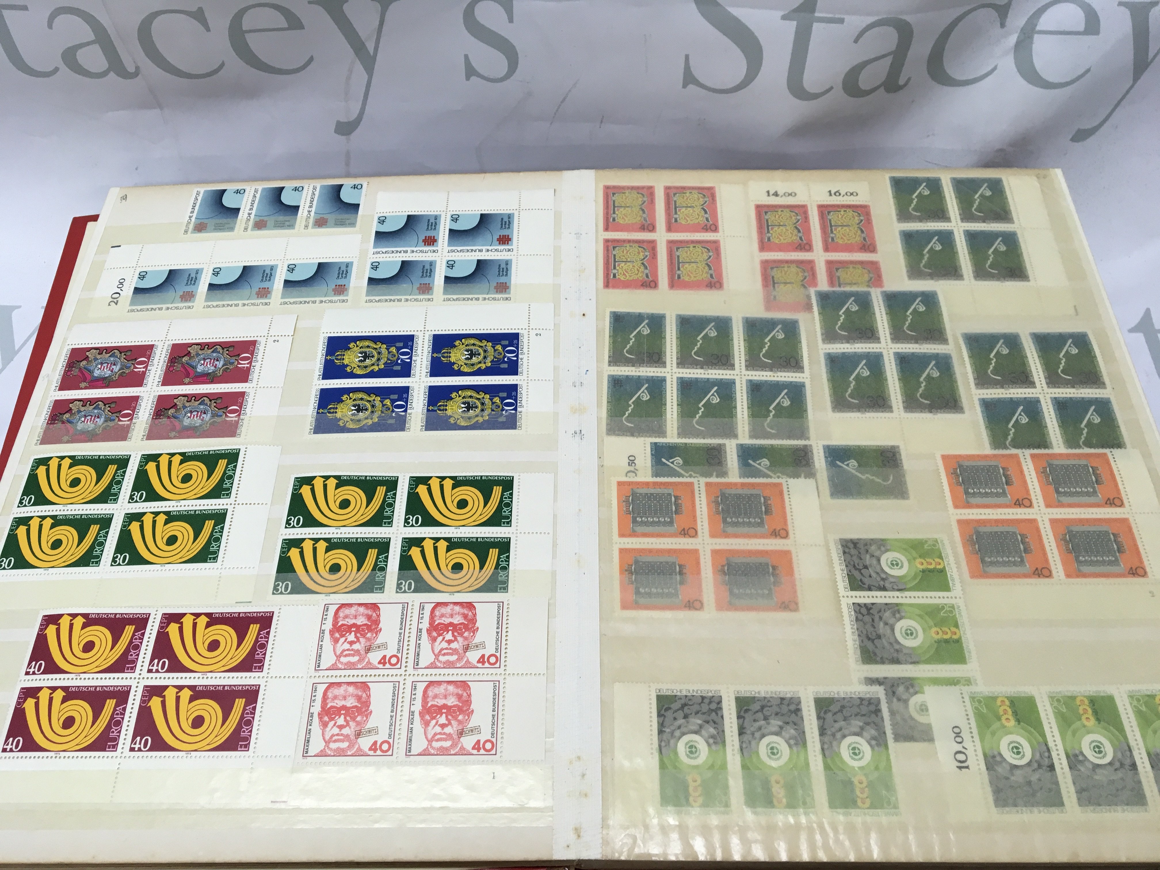 Three albums of German stamps ,mainly unused of the Second half of the 20th century in blocks with margins . Postage category B
