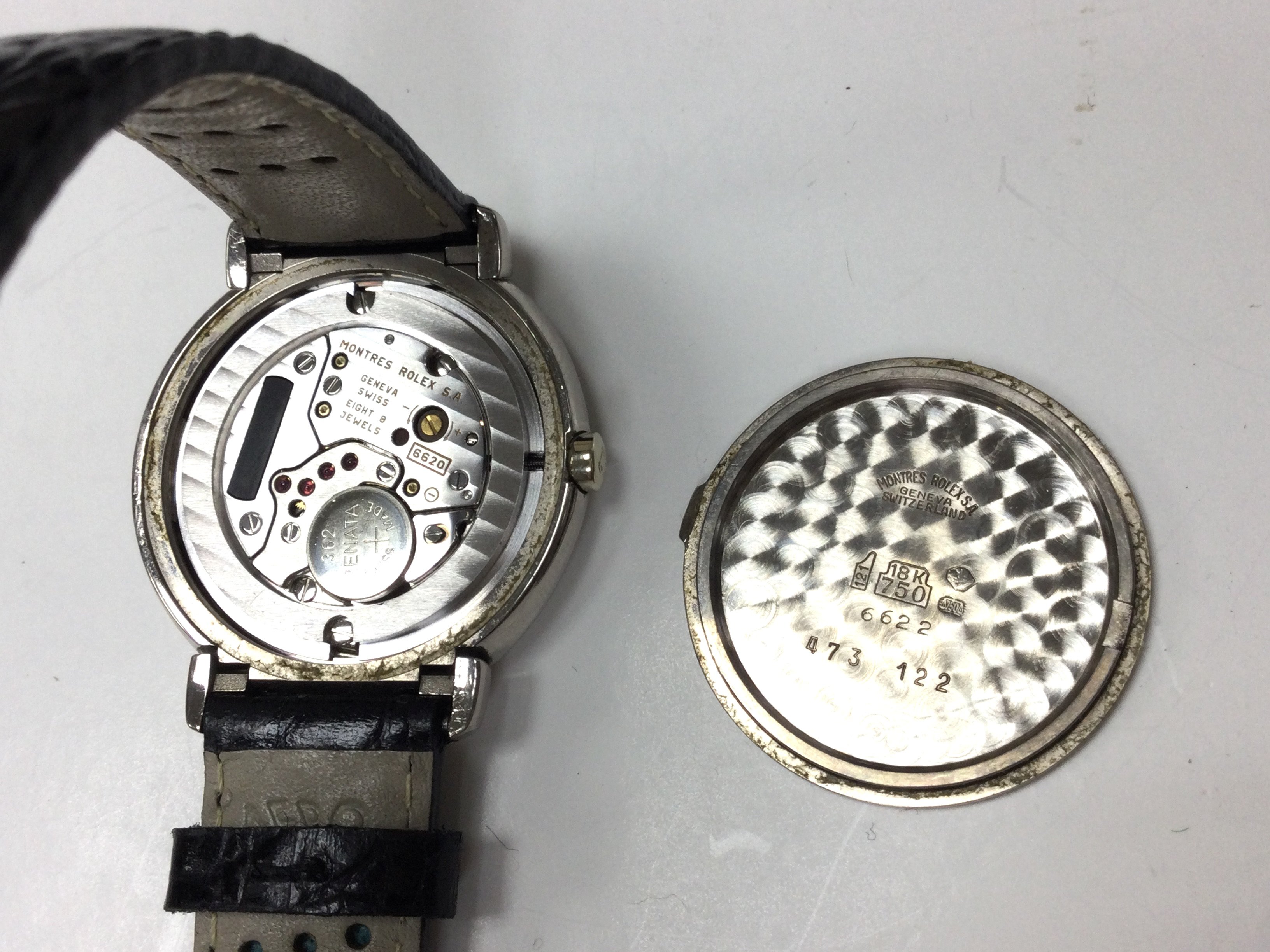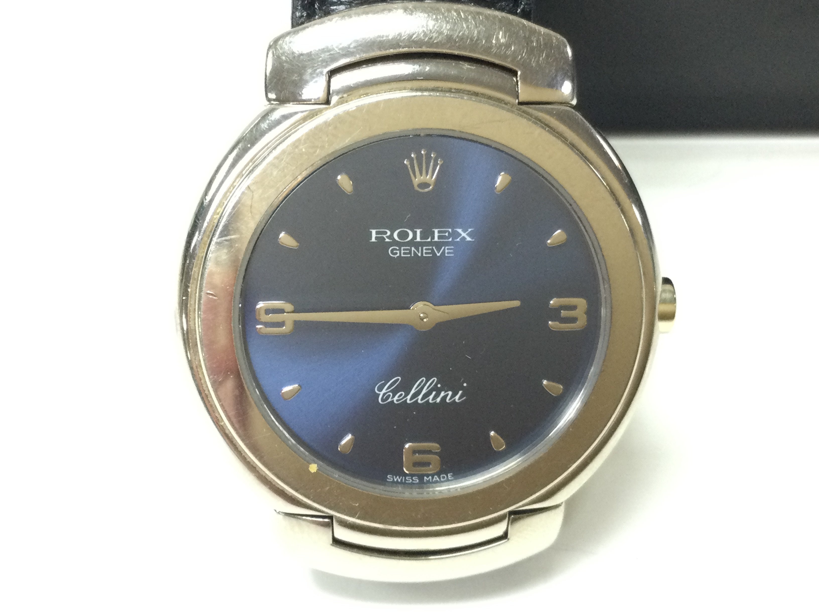 Rolex Cellini gents watch. Ref 6623. 18k White gold case with blue dial and black leather strap. Box and paperwork. Paperwork dates watch to 2003. (A)