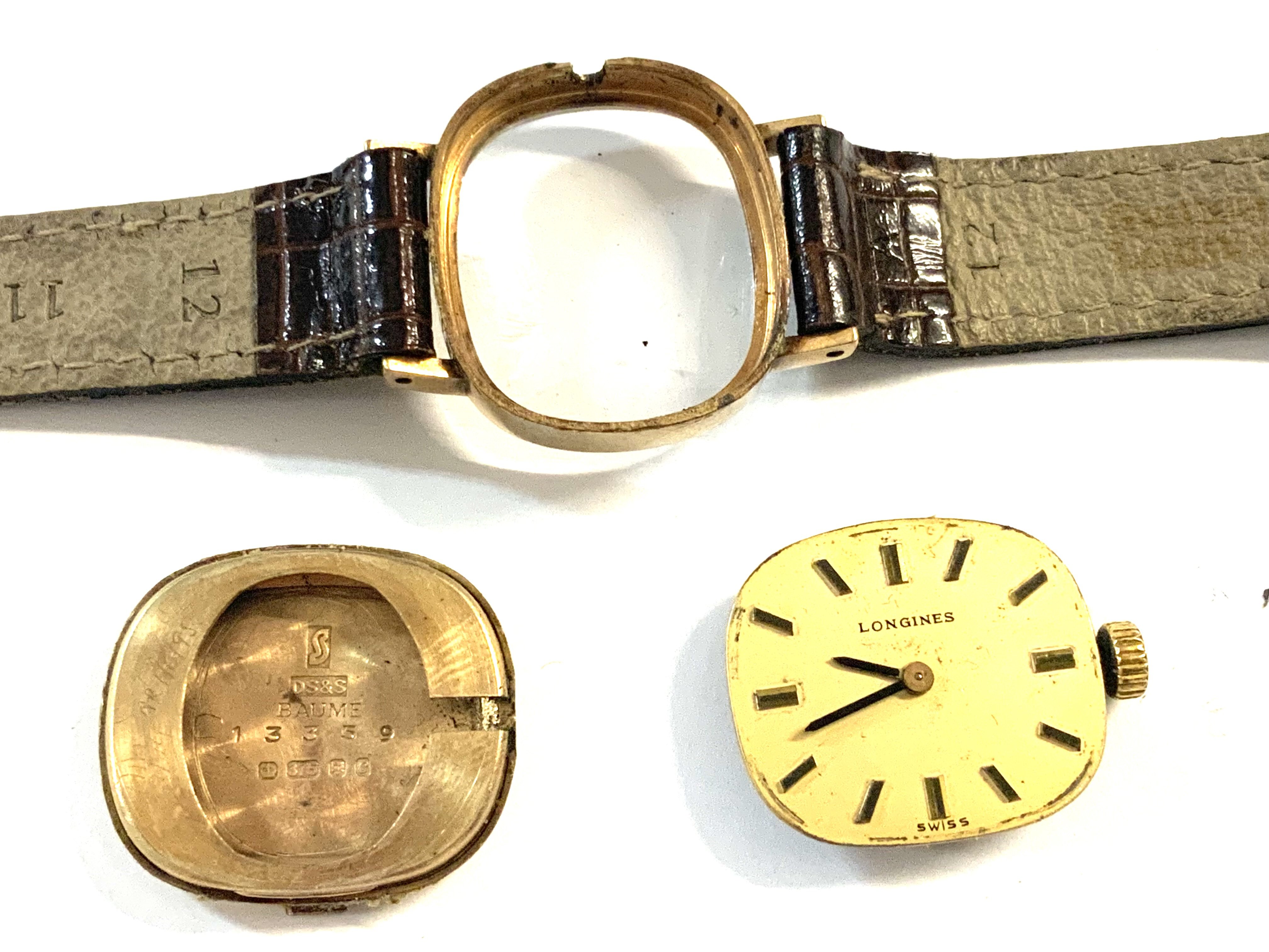 A ladies 9ct gold cased longines wristwatch with crocodile skiing strap.