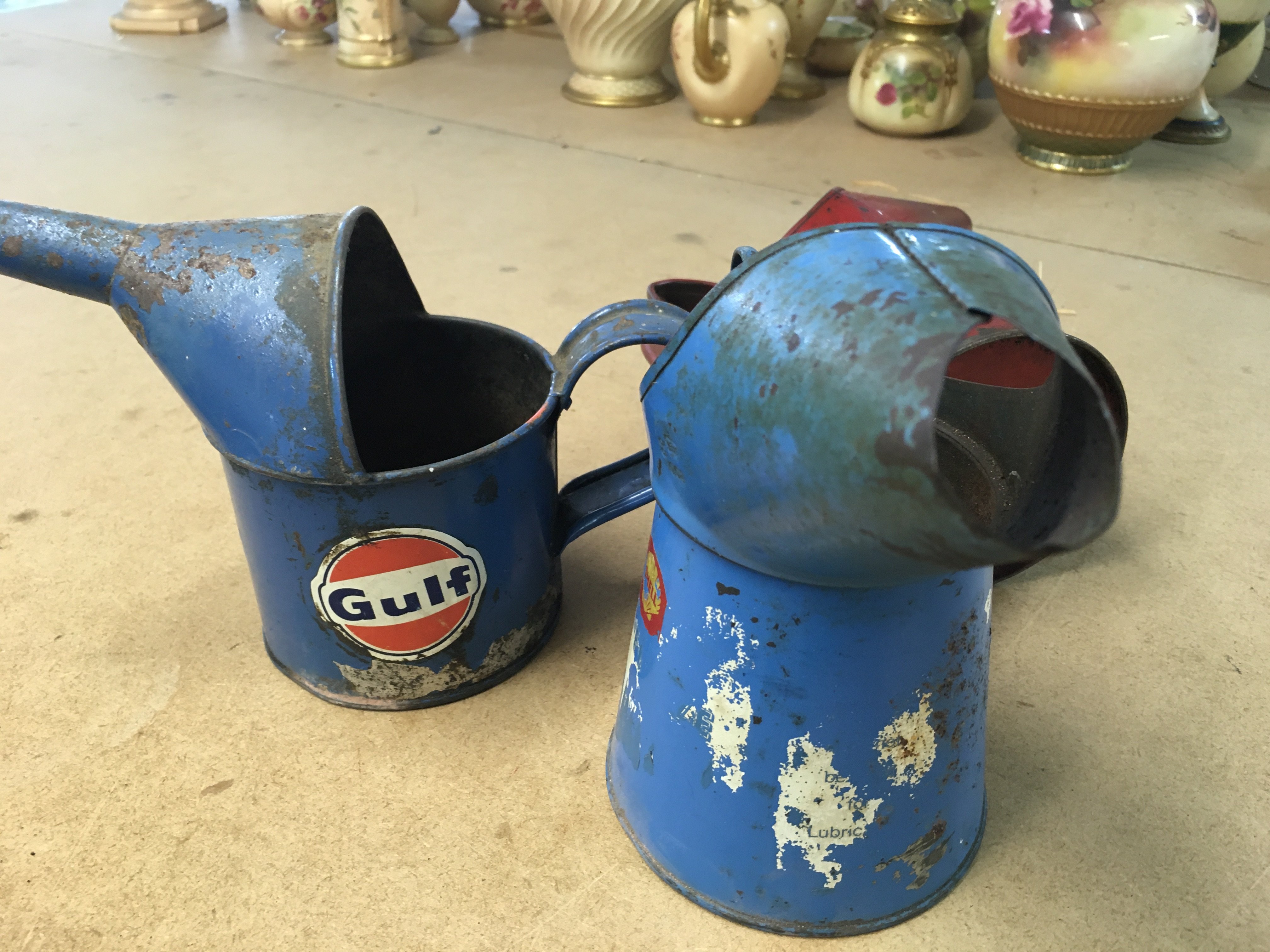 Vintage Oil cans , shell, Gulf and Esso. Postage category B