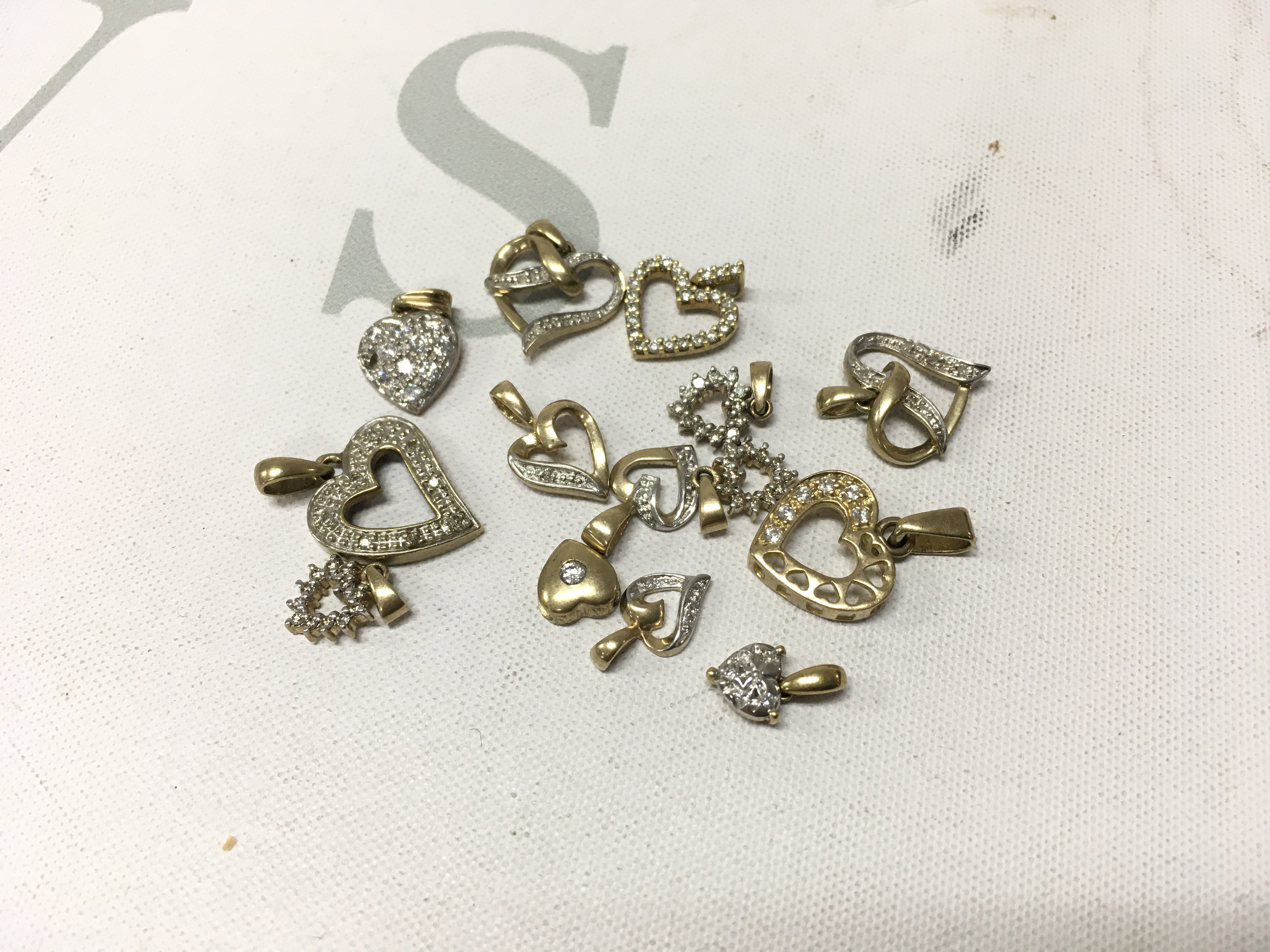 A mixed assortment of 9ct gold stone set heart pendants. Approx weight 11 grams.