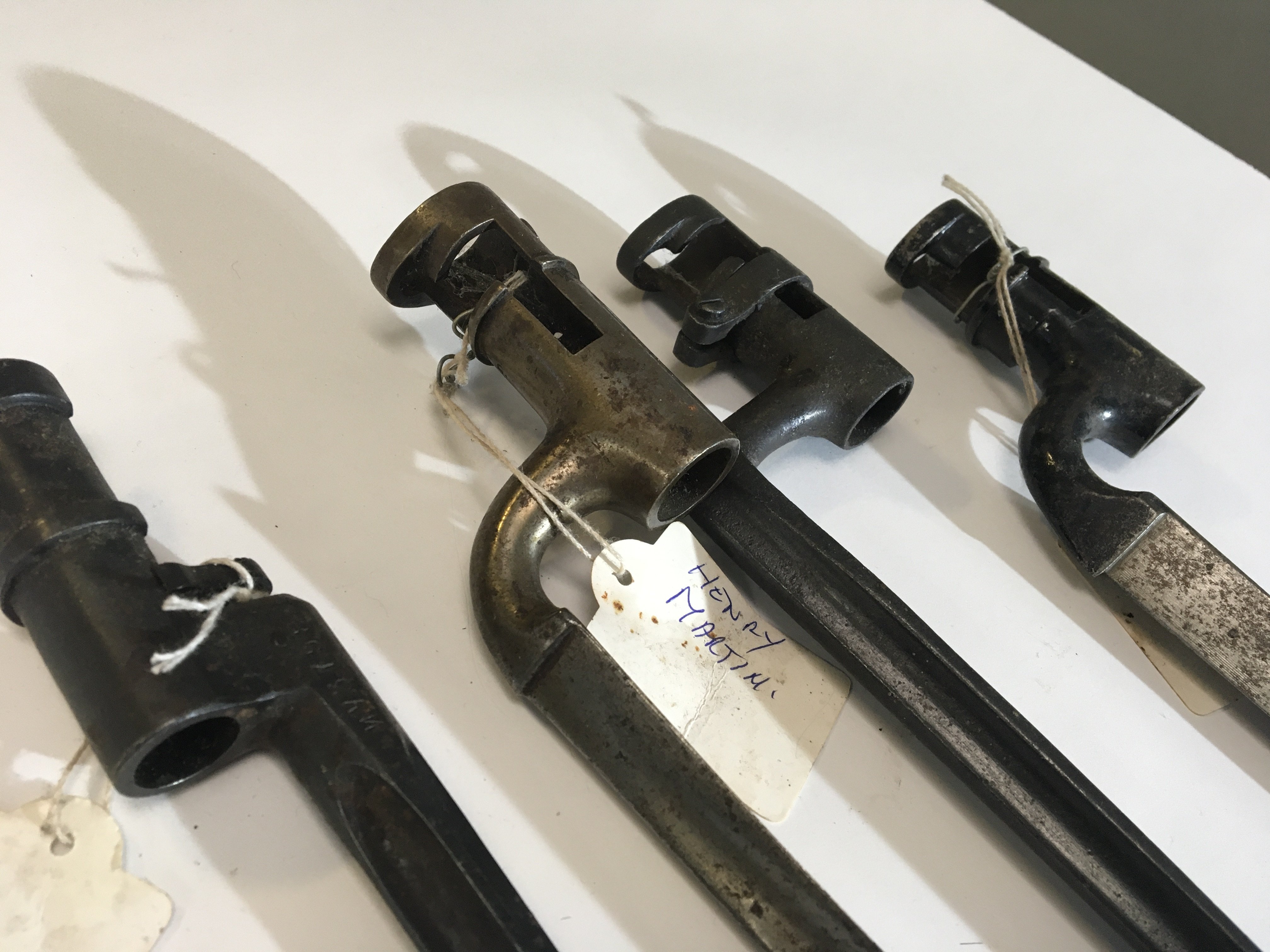 A collection of four long steel spike bayonets British 19th century issue with fixed sockets and possibly Russian (4)