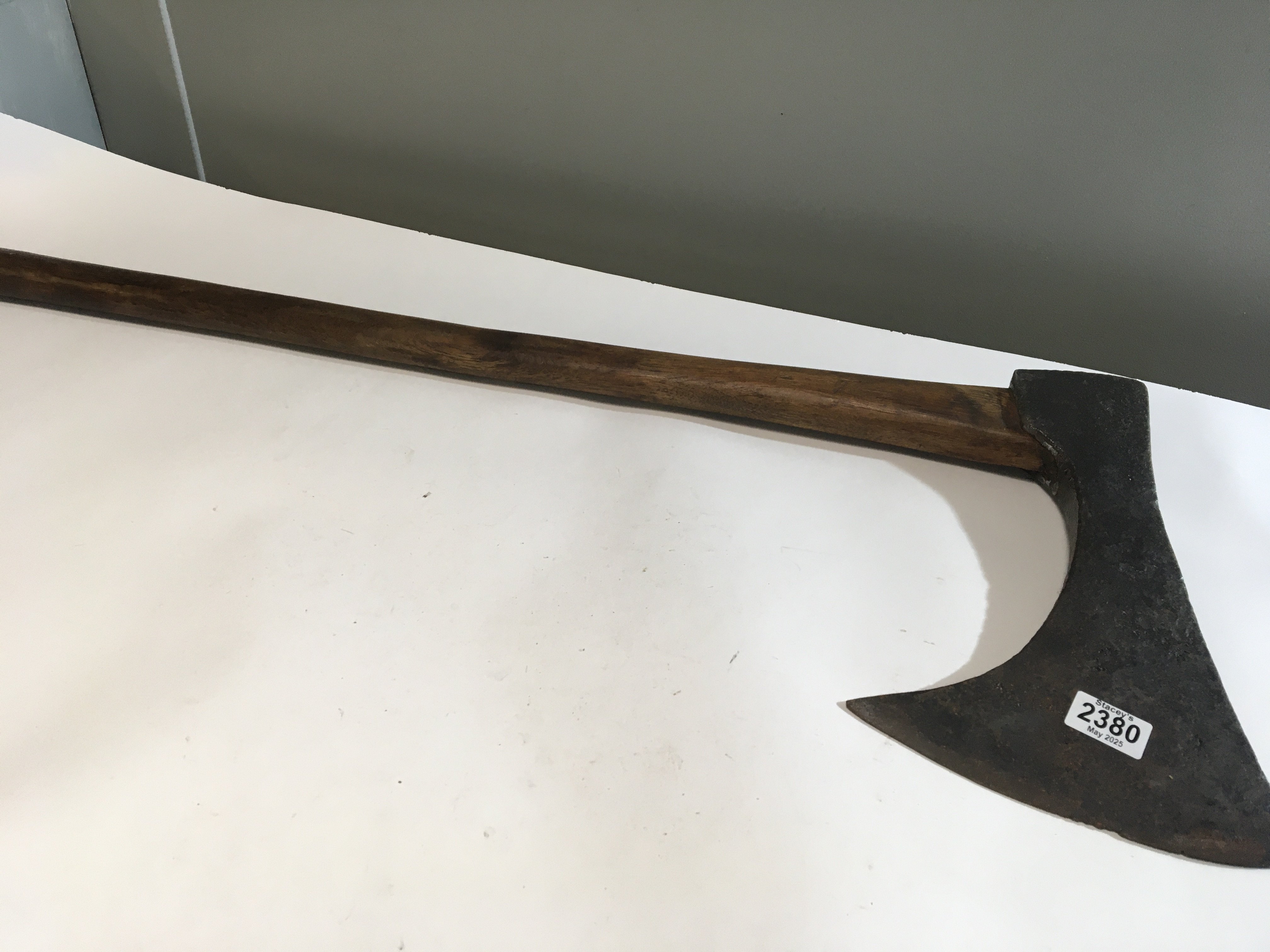 A Medieval or later executioners axe possible with a later wooden shaft the head 34cm wide.