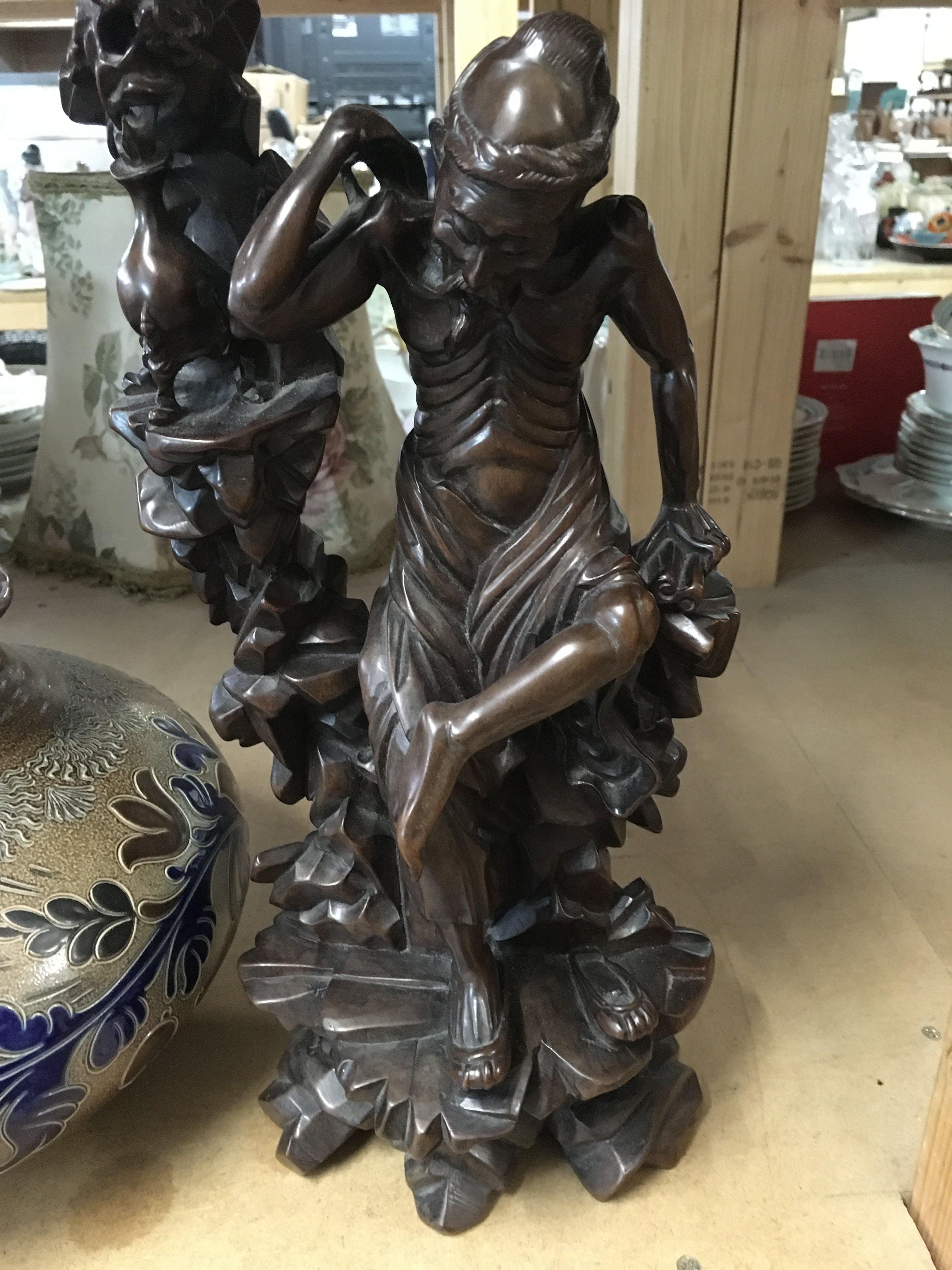 A oriental root wood carving in the form of a seated elder. 40 cm