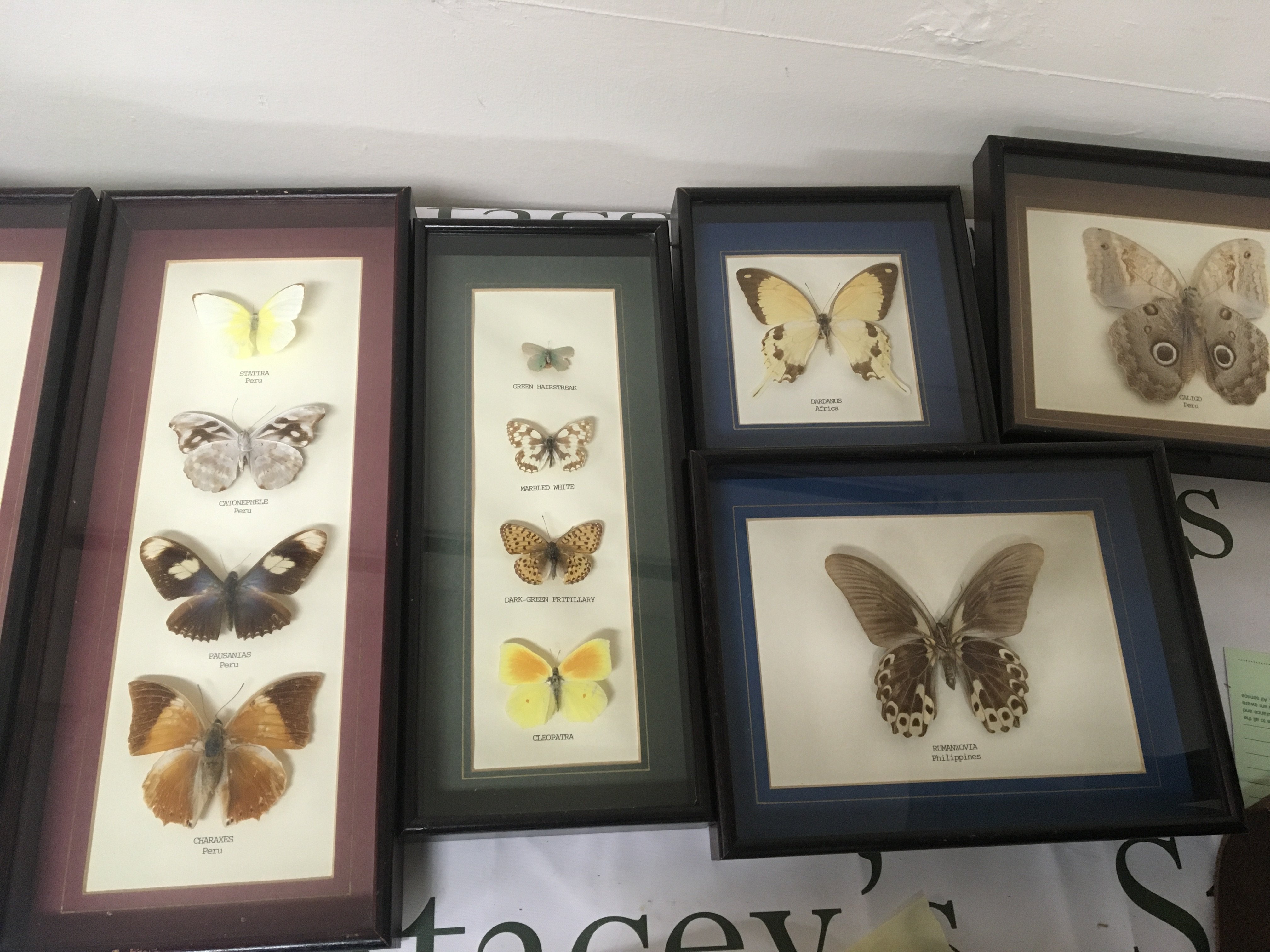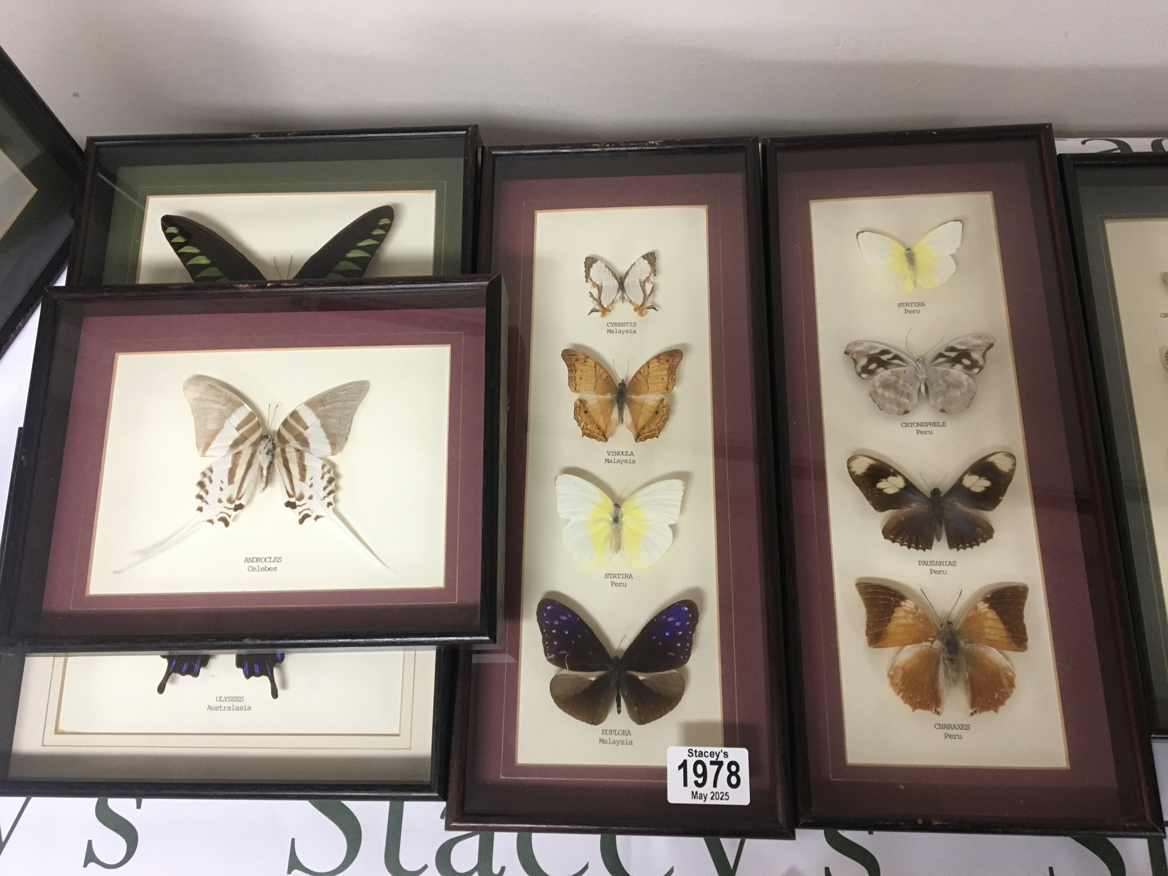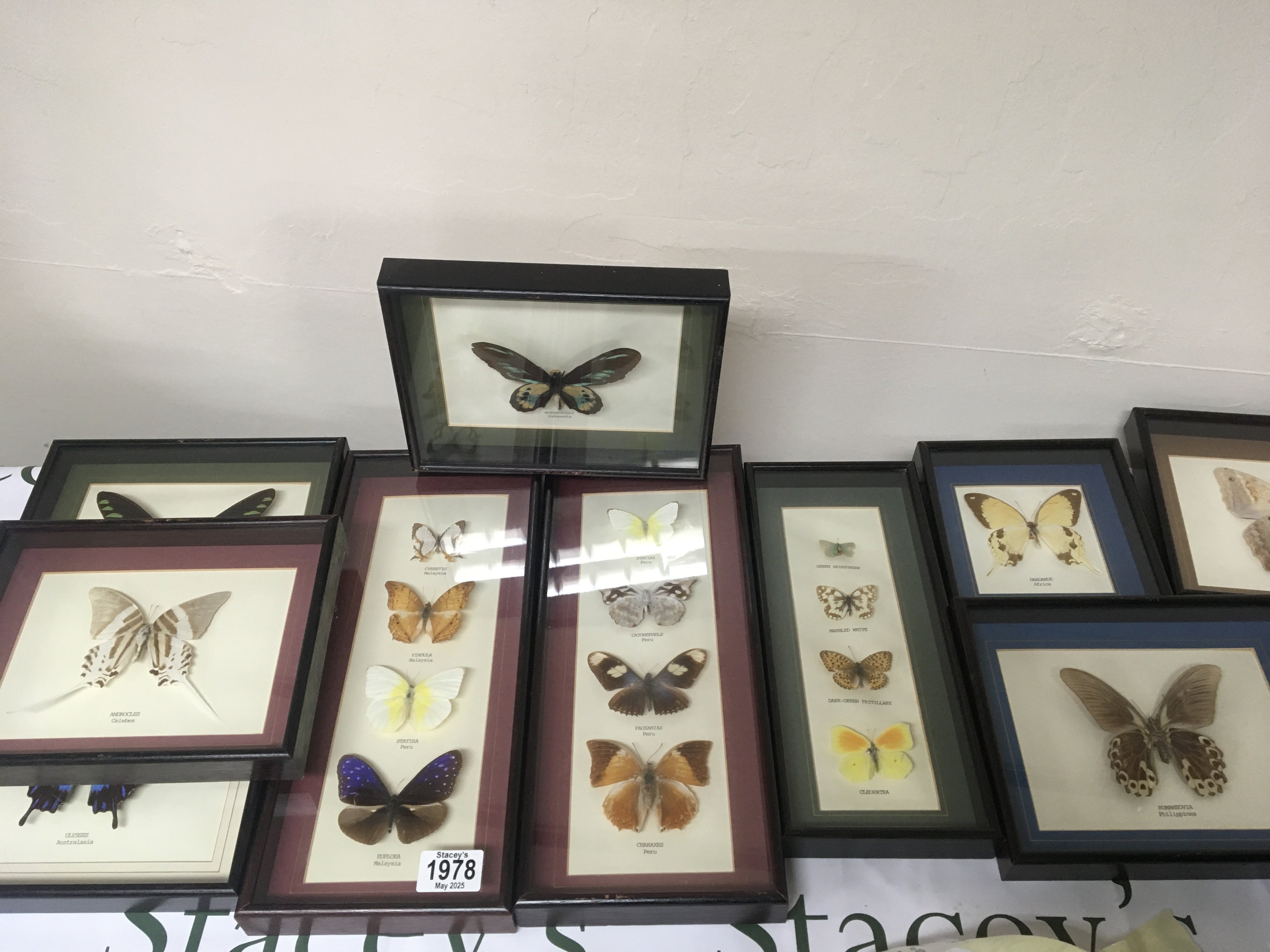 A collection of cased examples of moths and butterflies. In glazed frames good condition.
