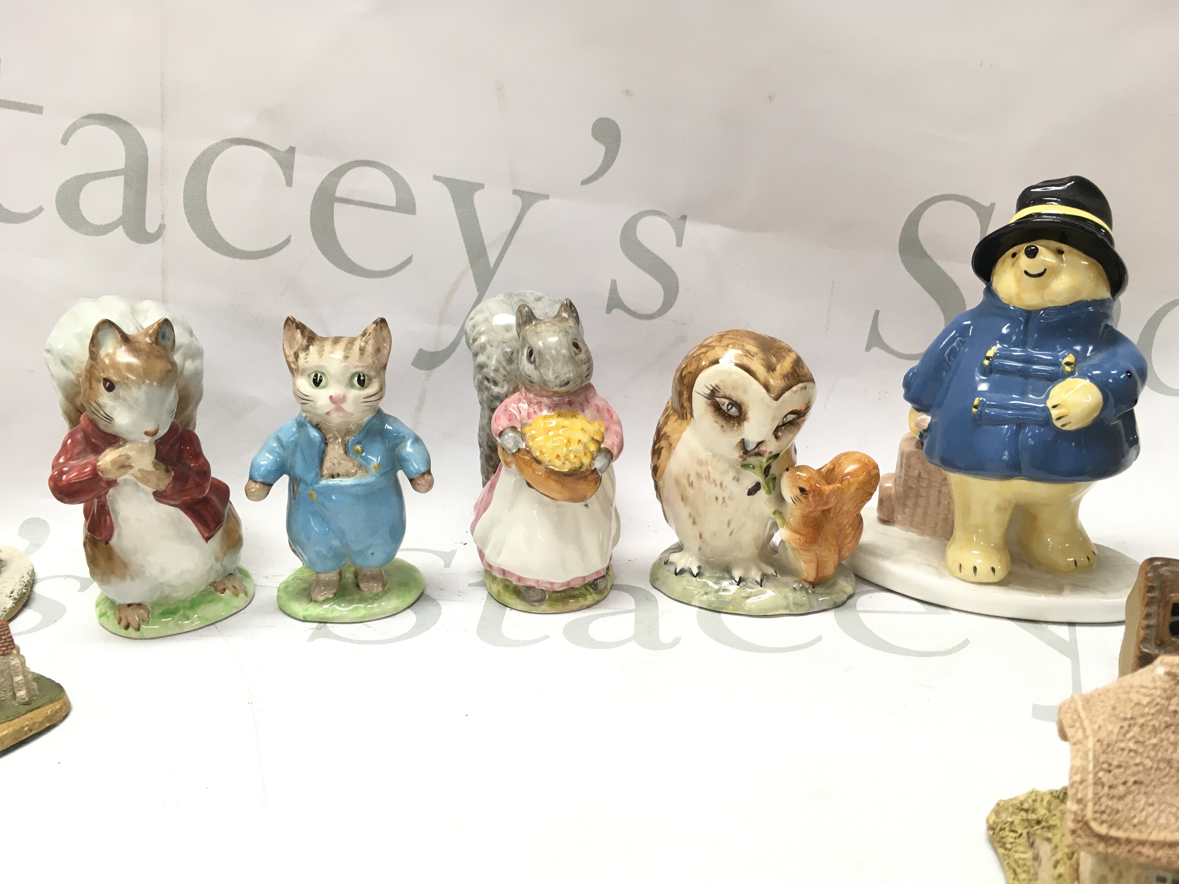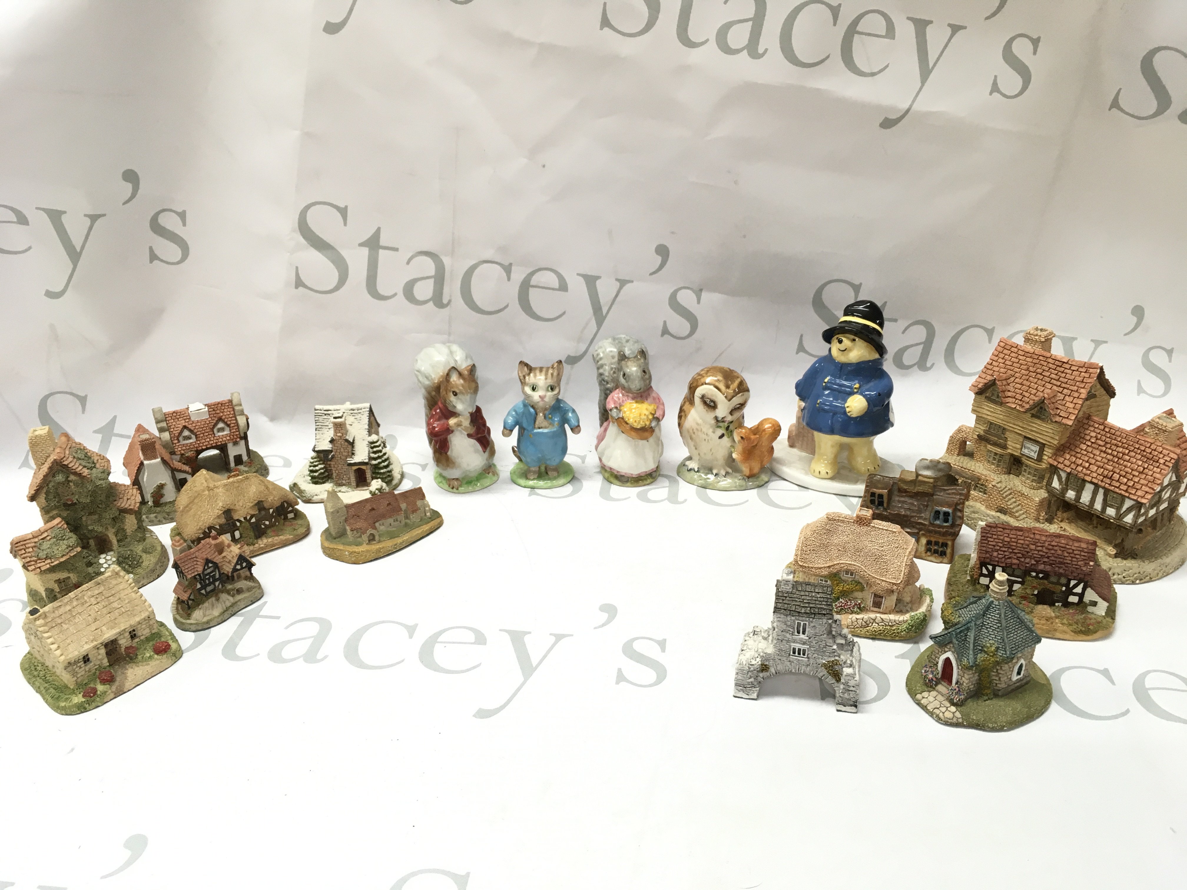 Beatrix Potter porcelain figures, Coalport Paddington porcelain and a collection of resin Lilliput lane cottage models