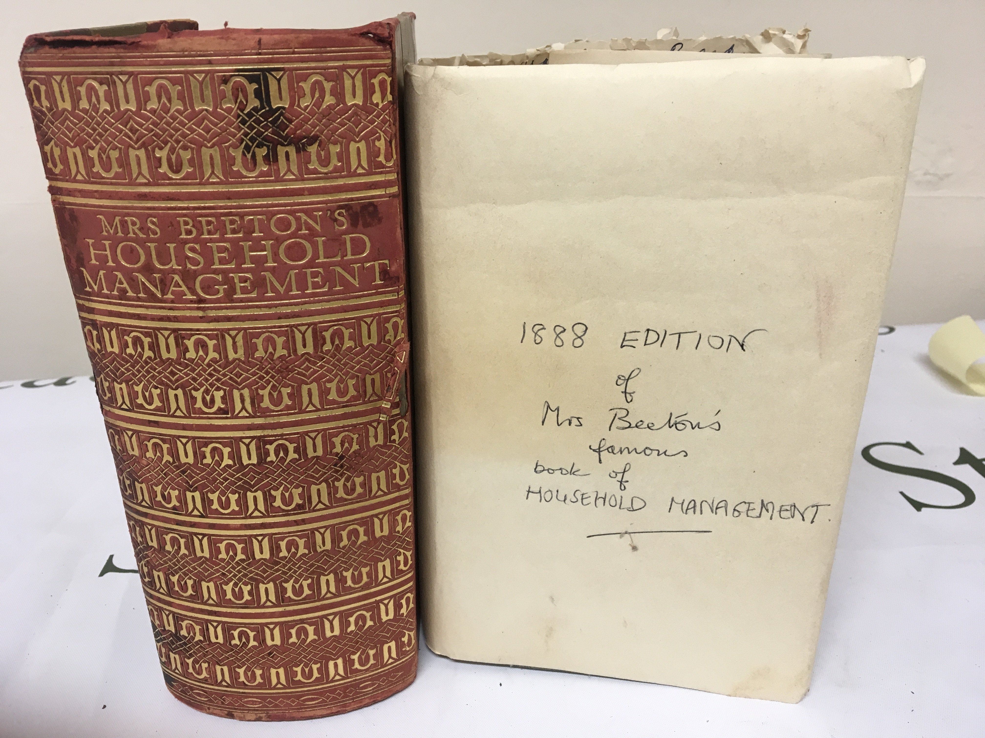 A nice leather bound and gold tooled book Mrs Bretons Household Management with some illustrations New Edtion 1923 and an 1888 Edition. (2)