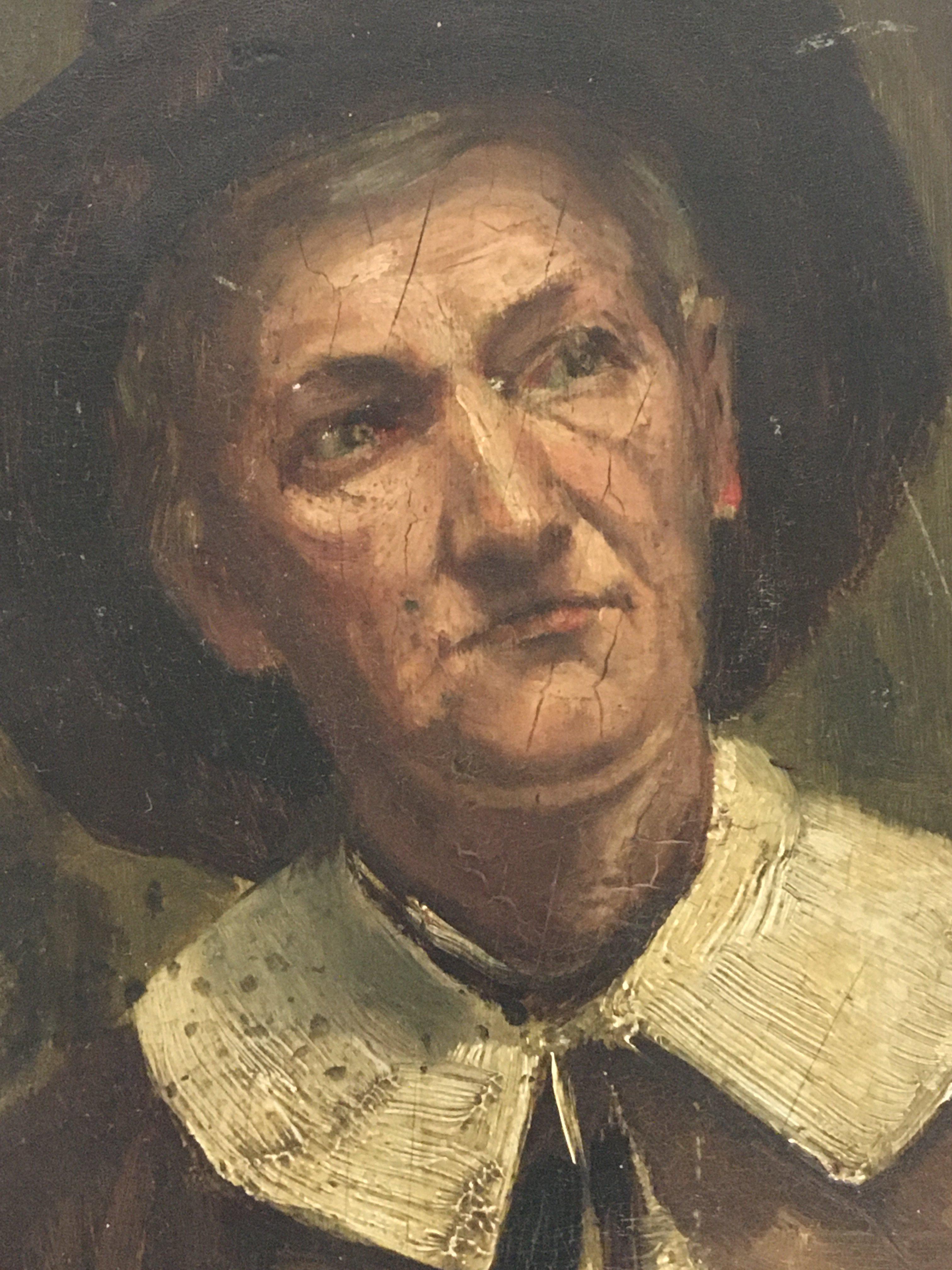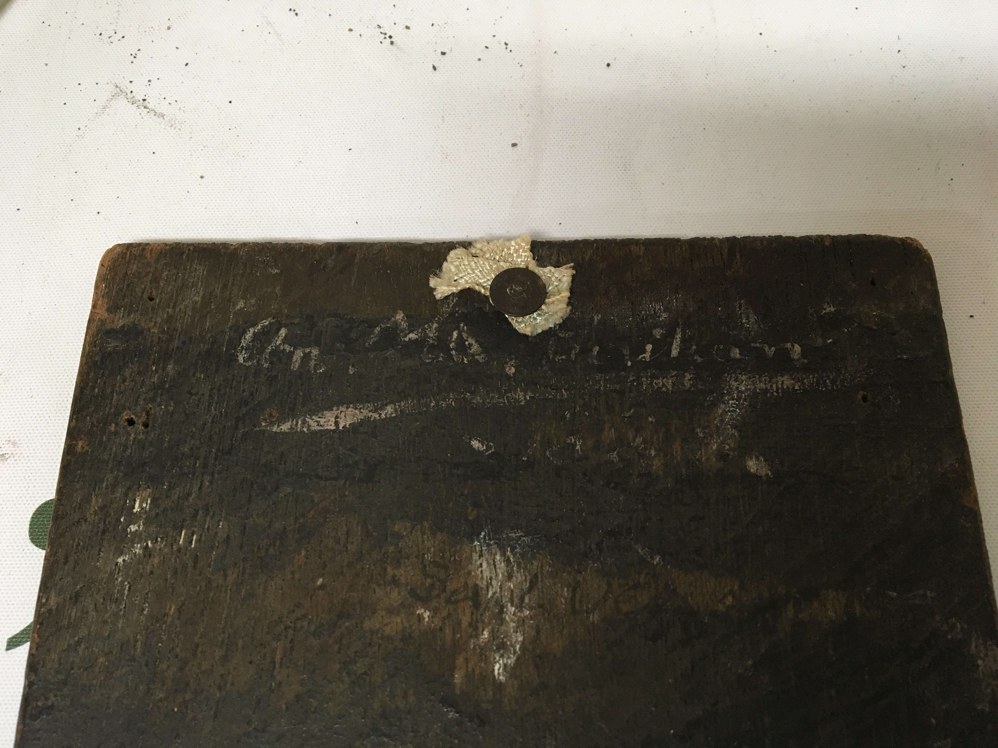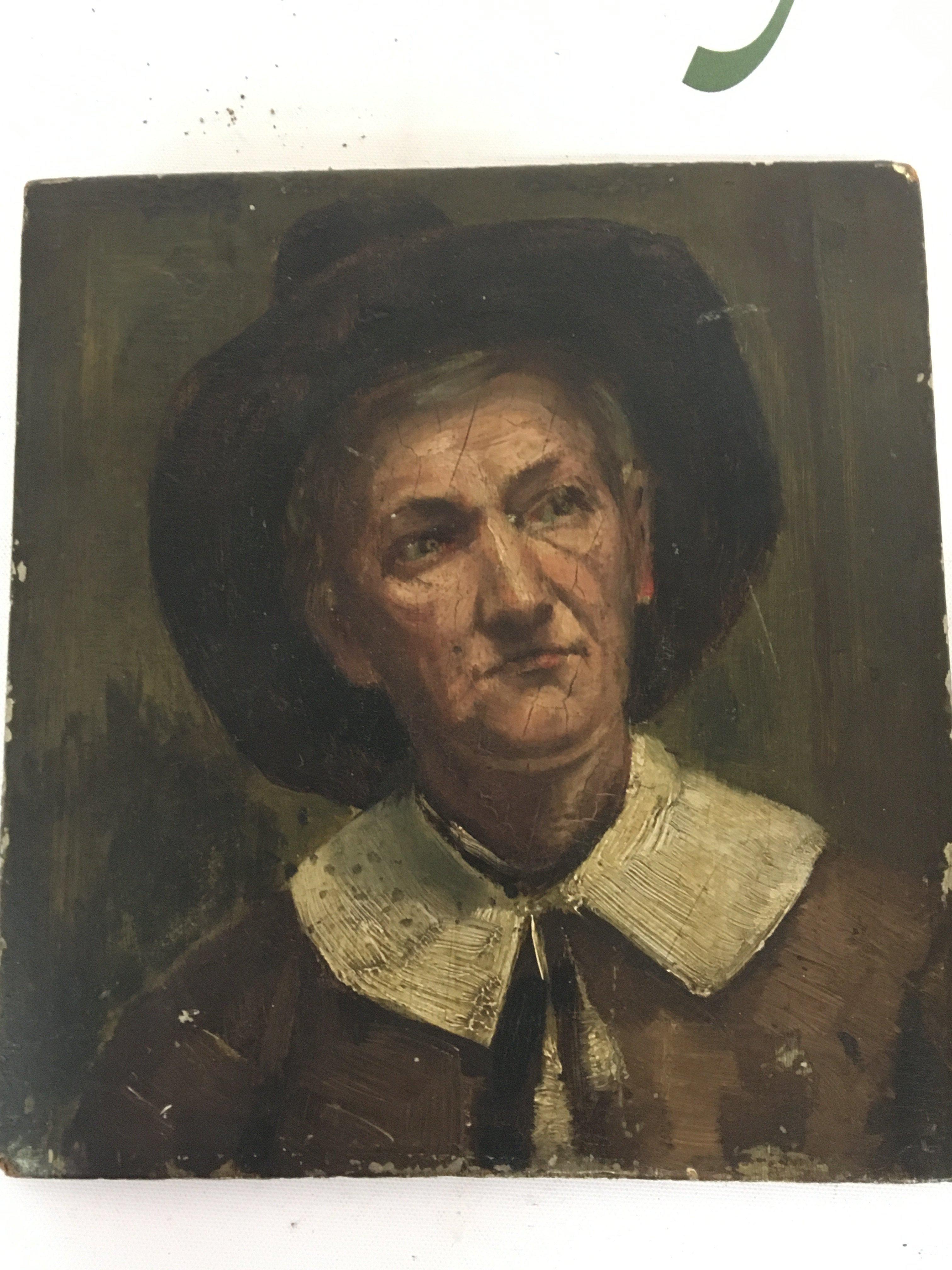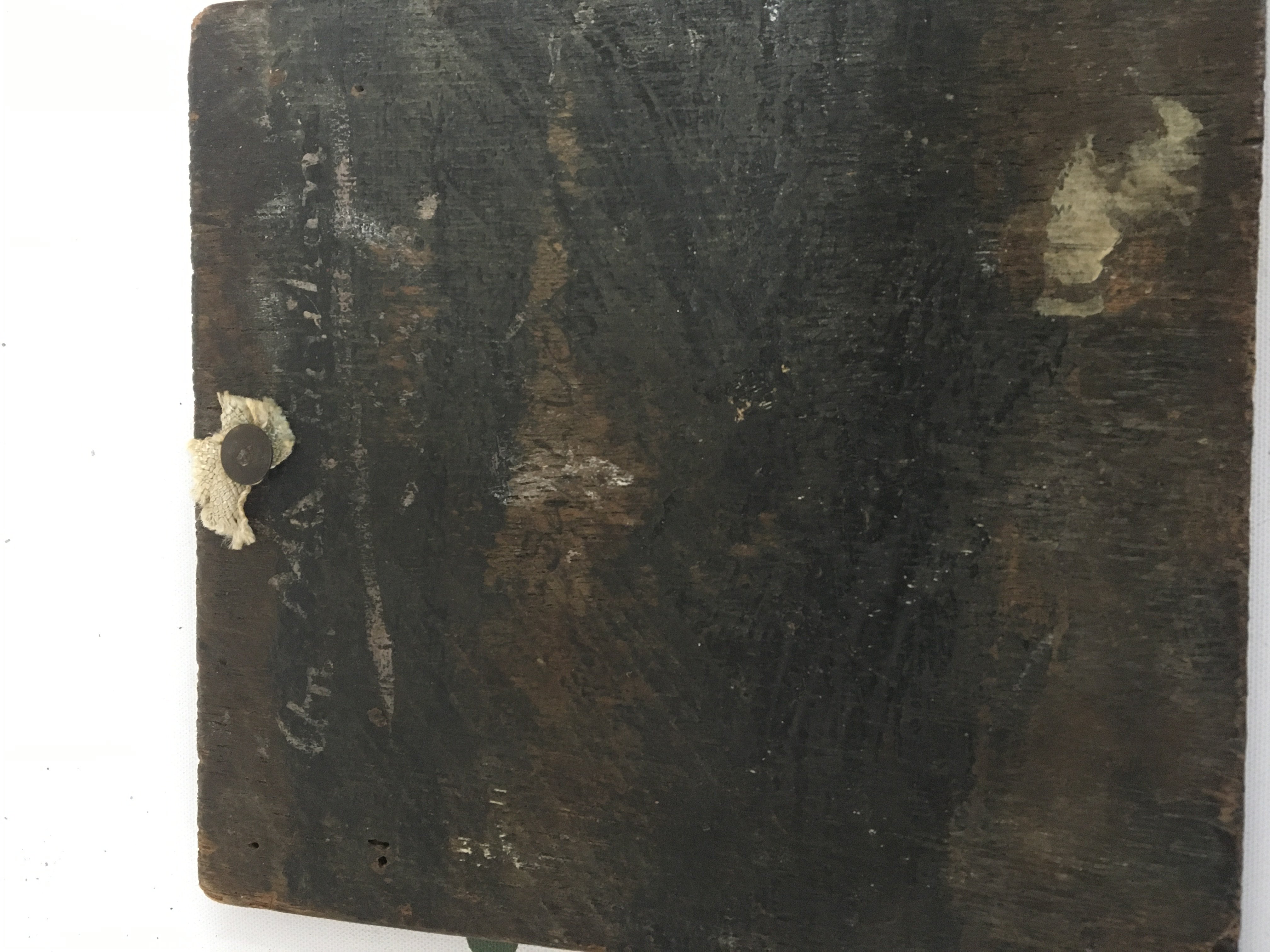 A Continental early 19th century or earlier oil painting on panel a portrait of Gentleman the reverse with obscure inscription. 14.5x15.5cm approximately.