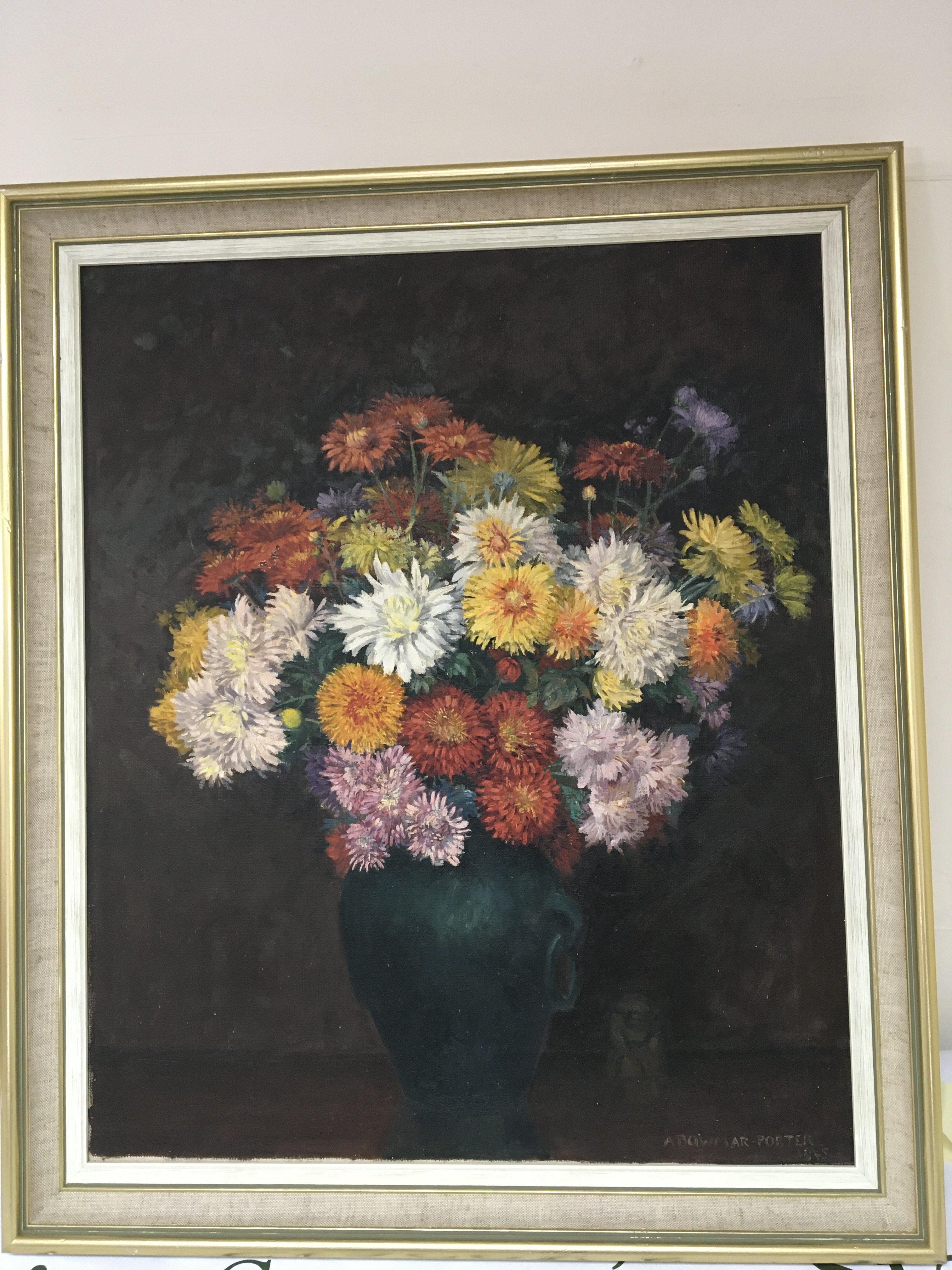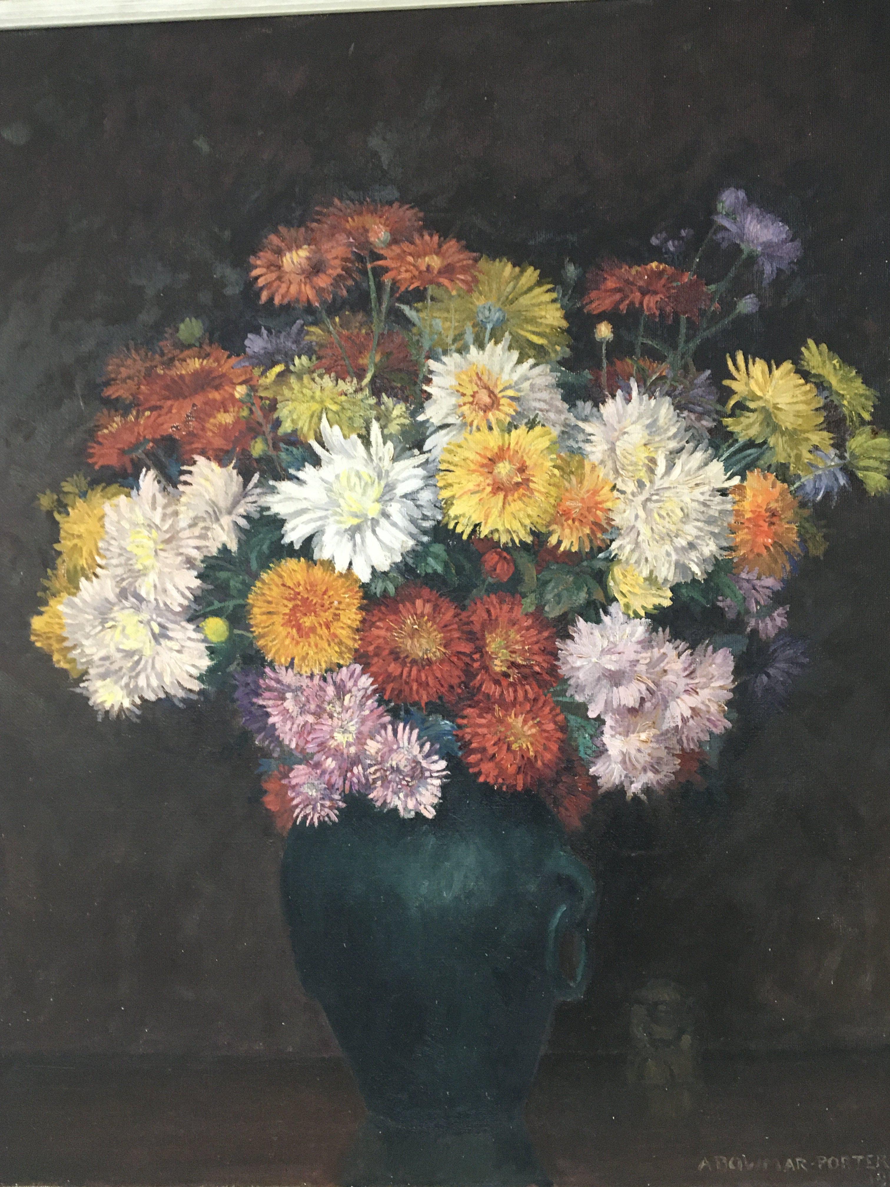 A framed oil painting on canvas still life study flowers in a vase by Arthur Bowmar Porter (1876-1960) the painting dated 1945 Modern British. 59x70cm