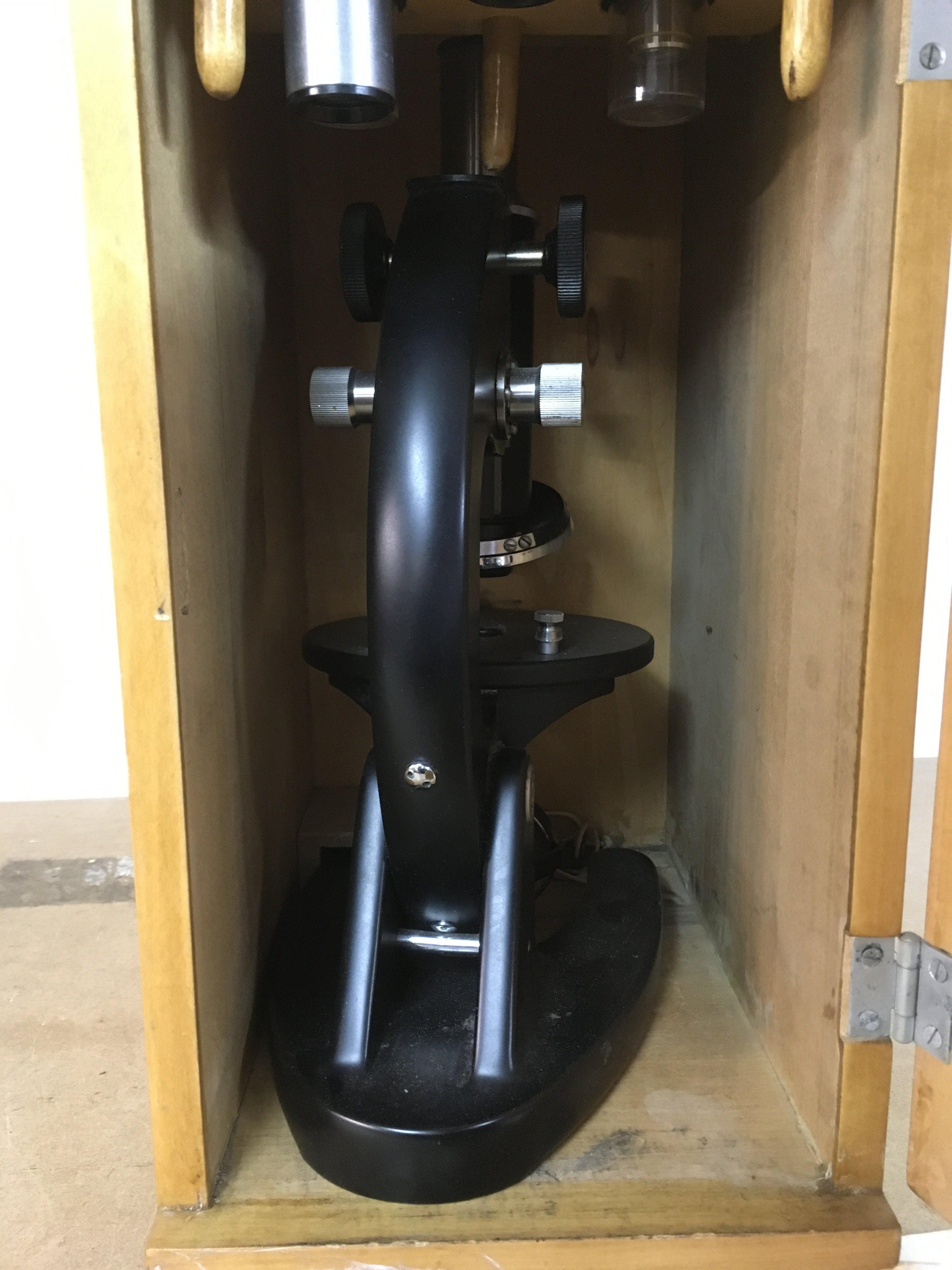 A cased student's microscope.