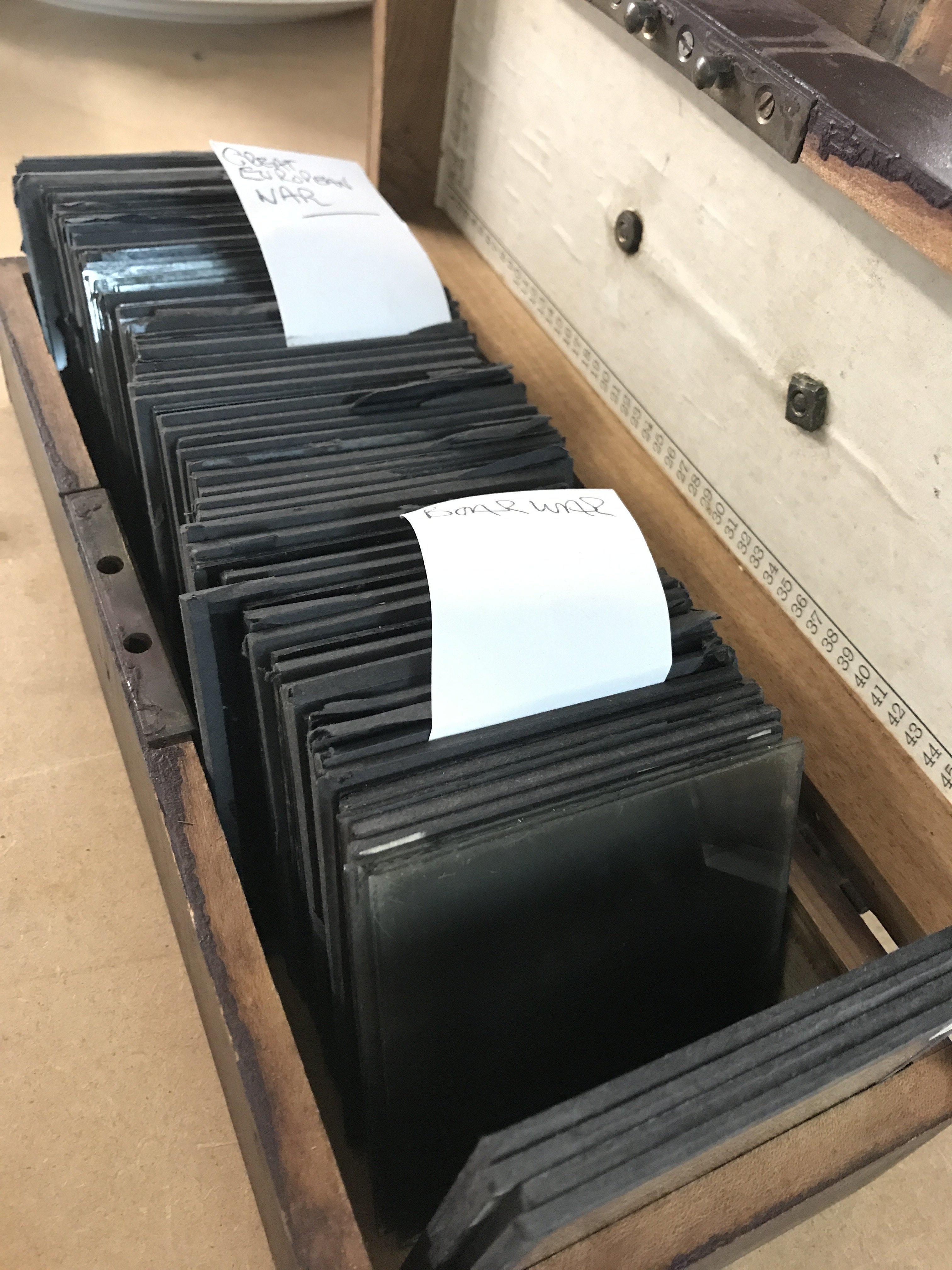 Cases of vintage magic lantern slides of various subjects including Boar war photos, Great European war, stories , steam trains etc. this lot cannot be posted