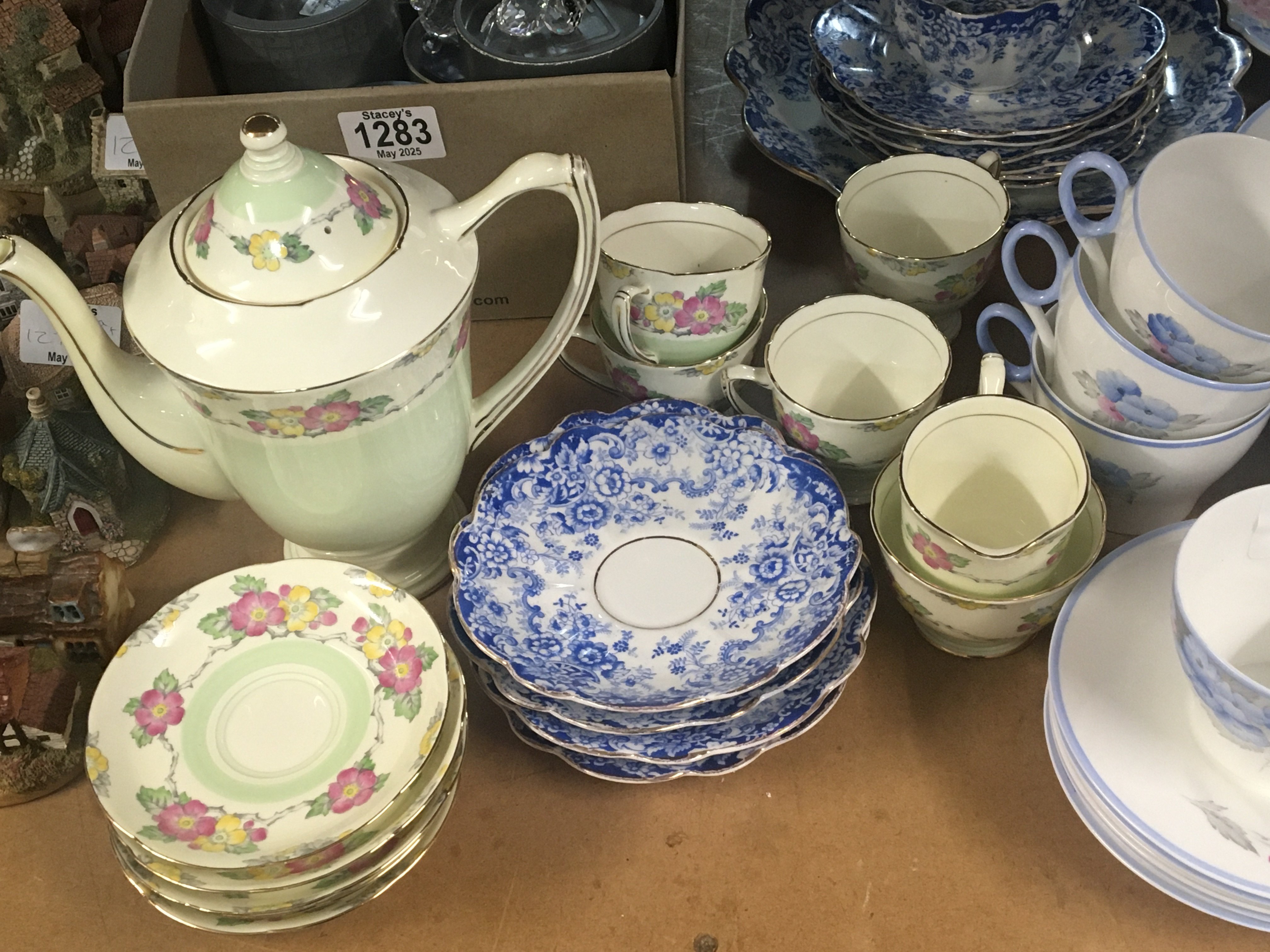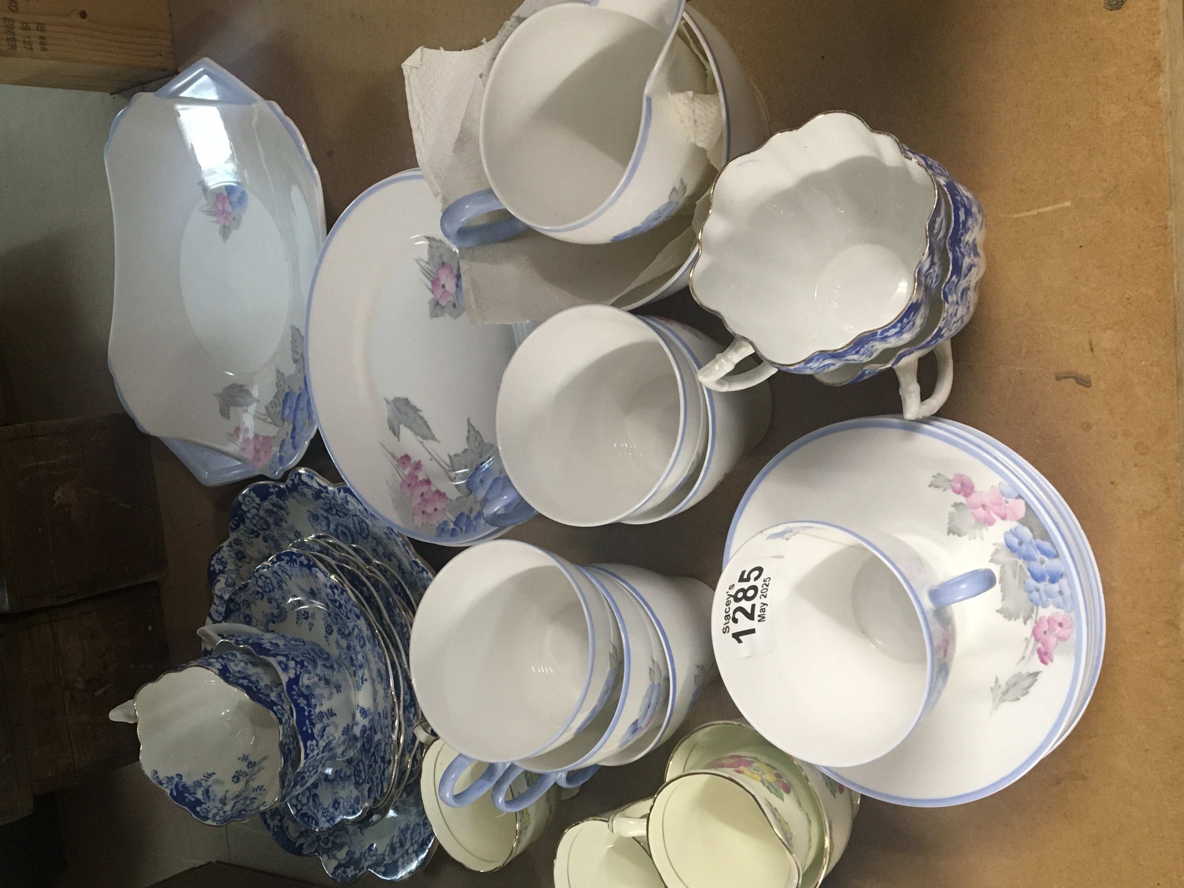 A Shelley china tea set six place setting one cup cracked a Grafton coffee service and late Victorian blue and white plates (some damage in this lot)