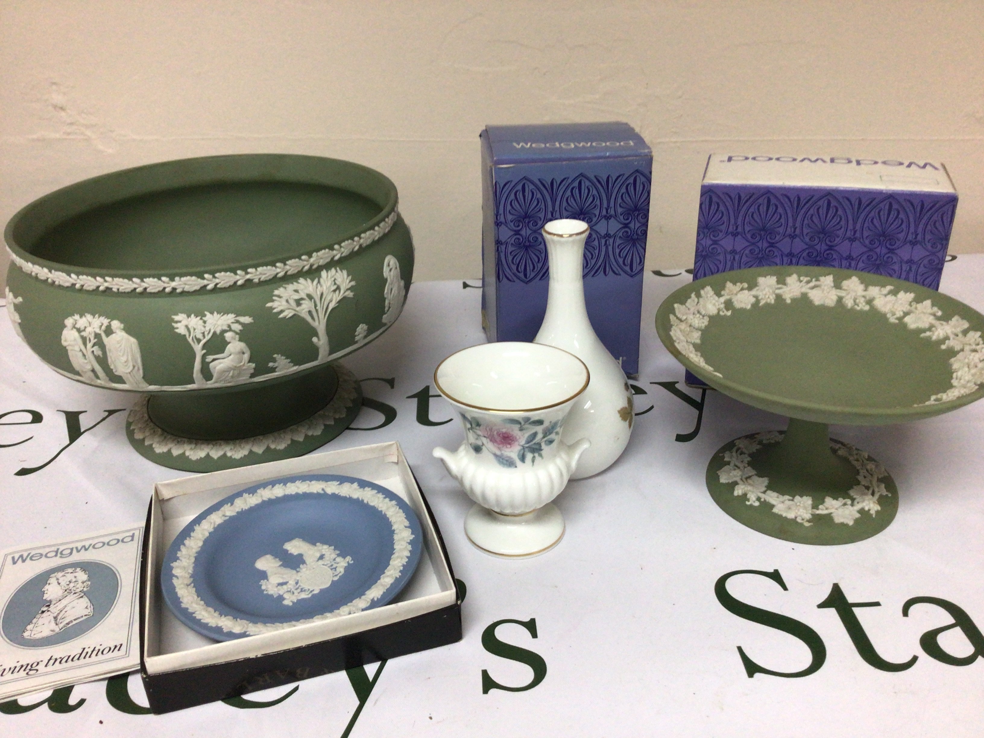 A Wedgwood green ceramic bow and other Wedgwood jasper-ware
