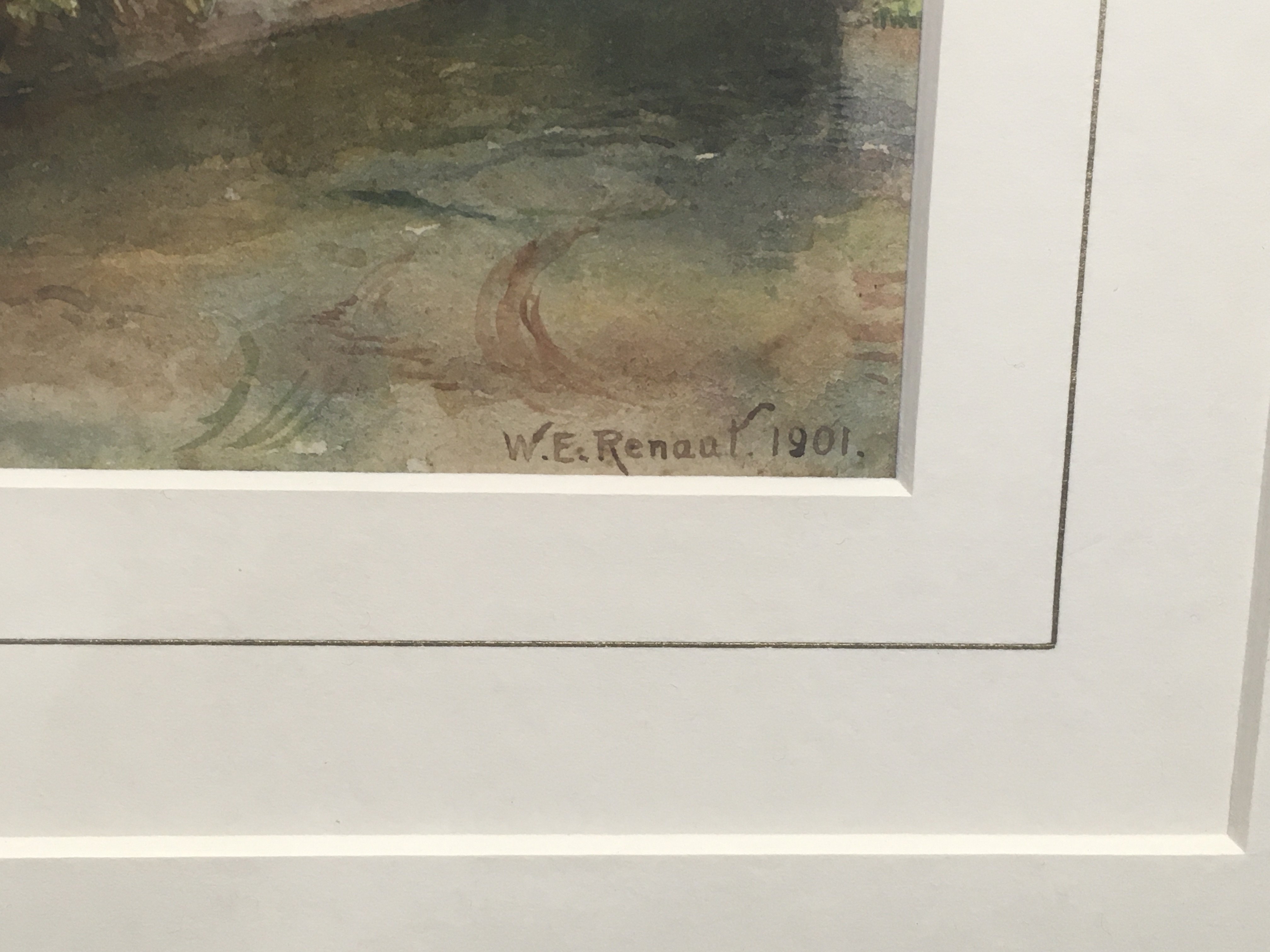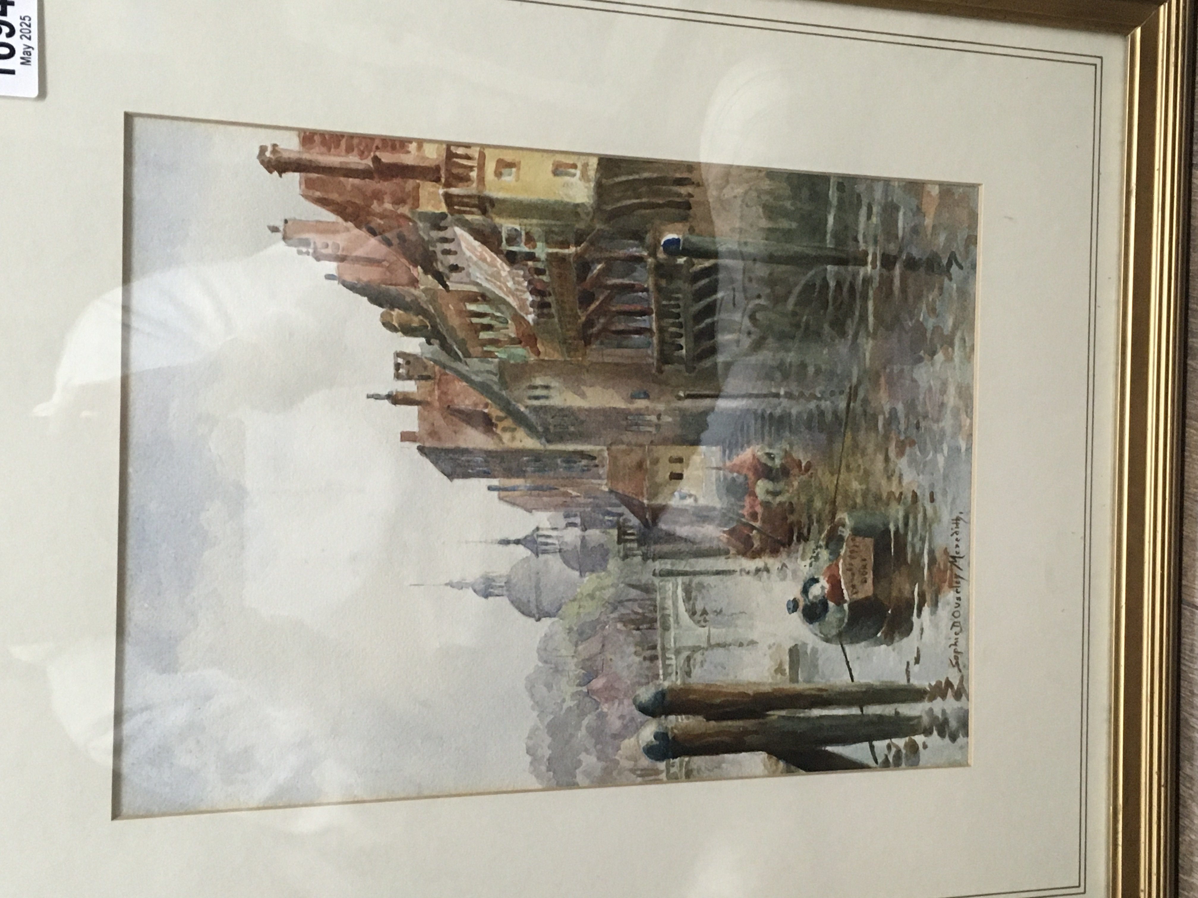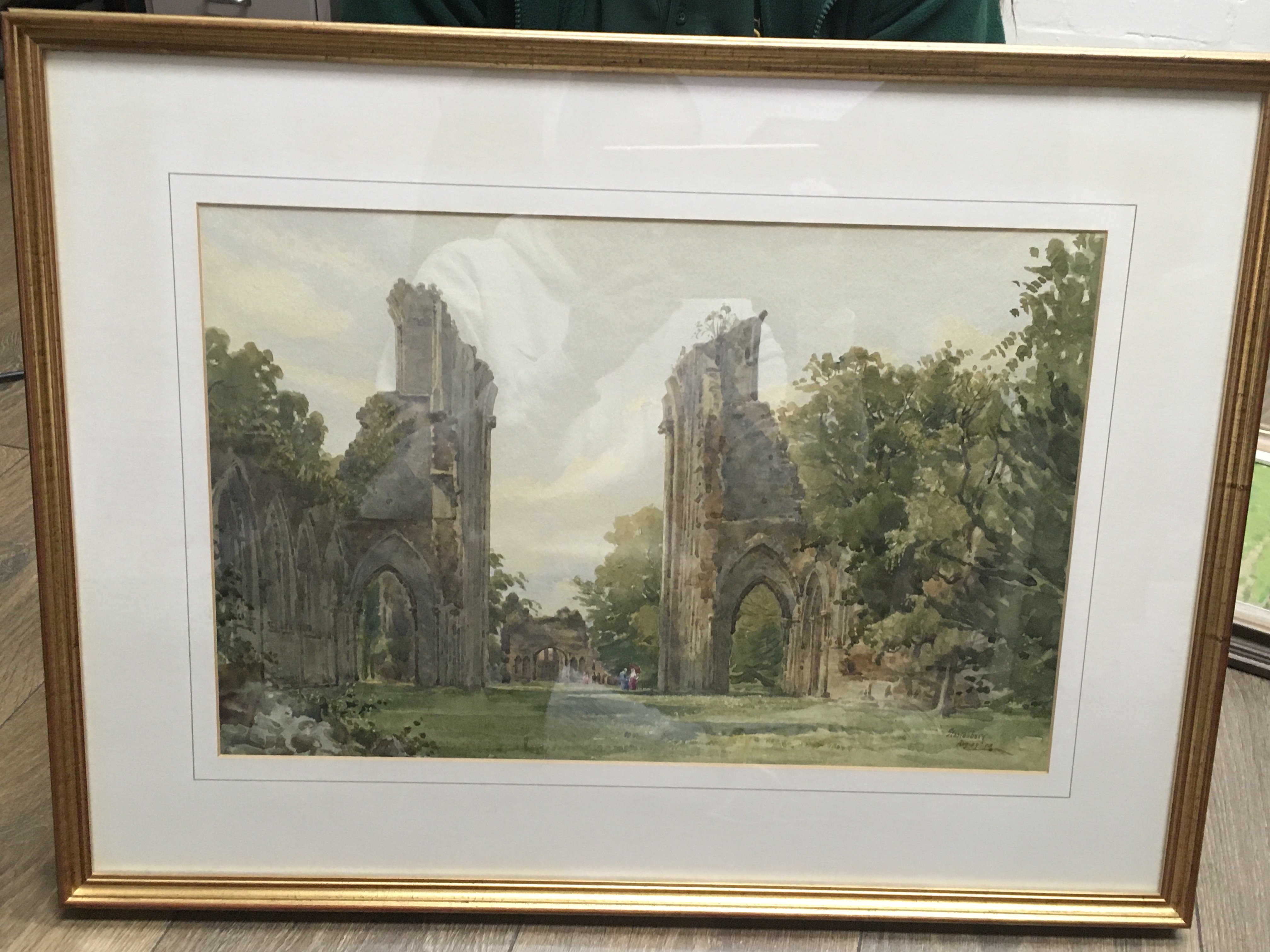 4 framed paintings to include a view of Watergate Dordrecht,Holland. Signed by Sophie D'ouseley Meredith, a view of Glastonbury Abbey And the framed oil on board-The Dairy House signed by Bernard Stevens exhibited at the royal academy some at exhibition. Various size frames