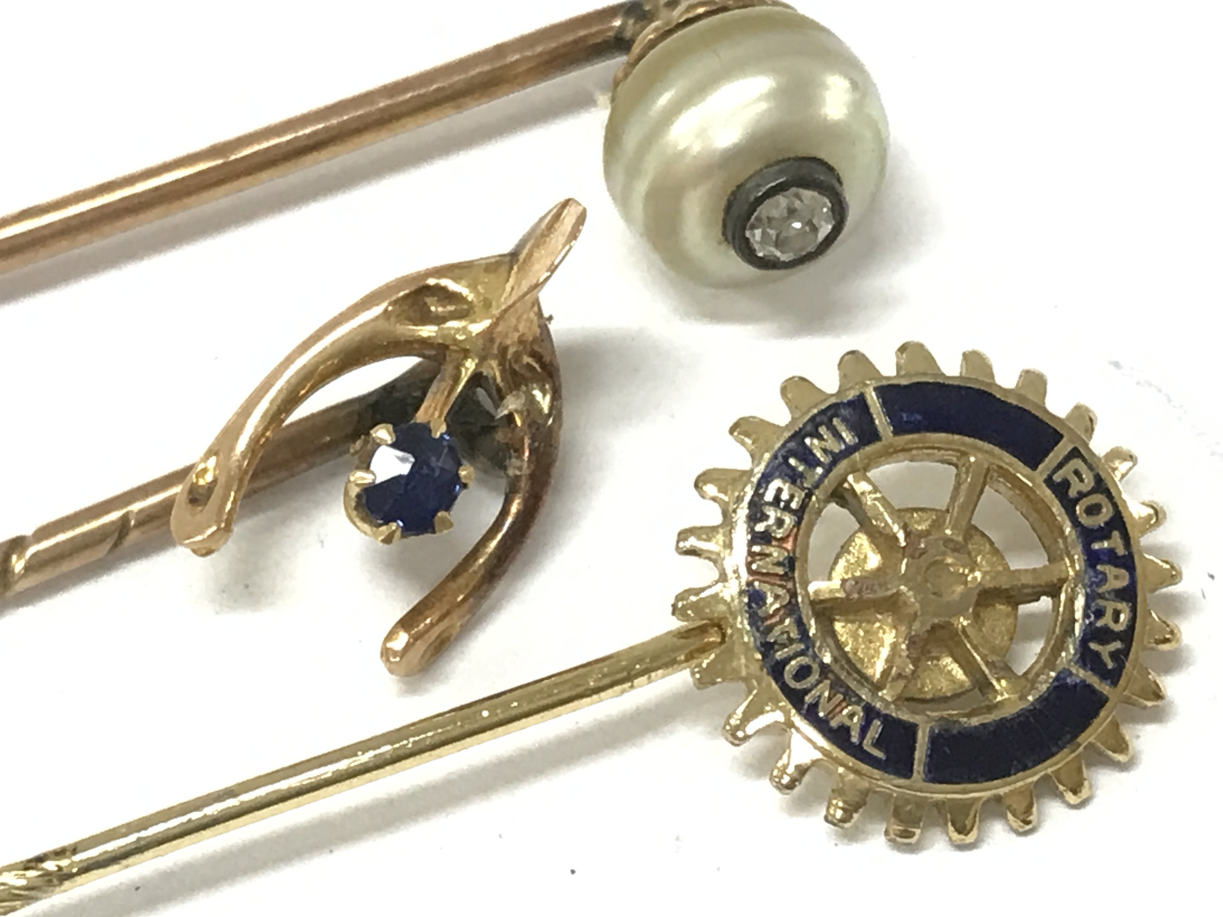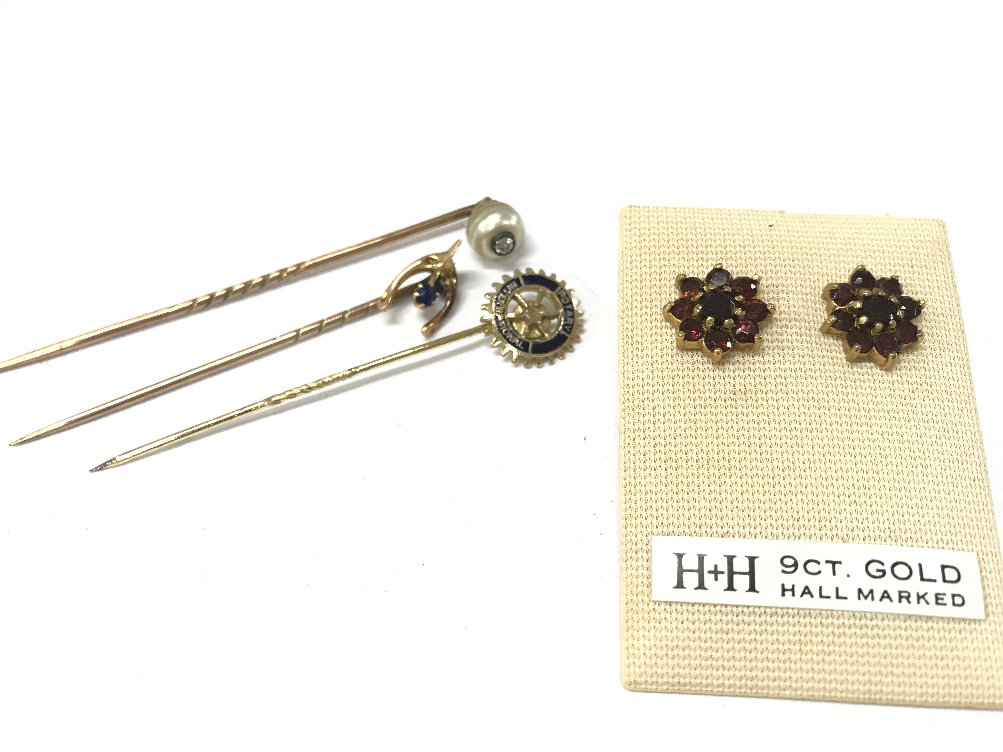 Stick pins and 9ct gold earrings , 2.4g total weight. Postage category A