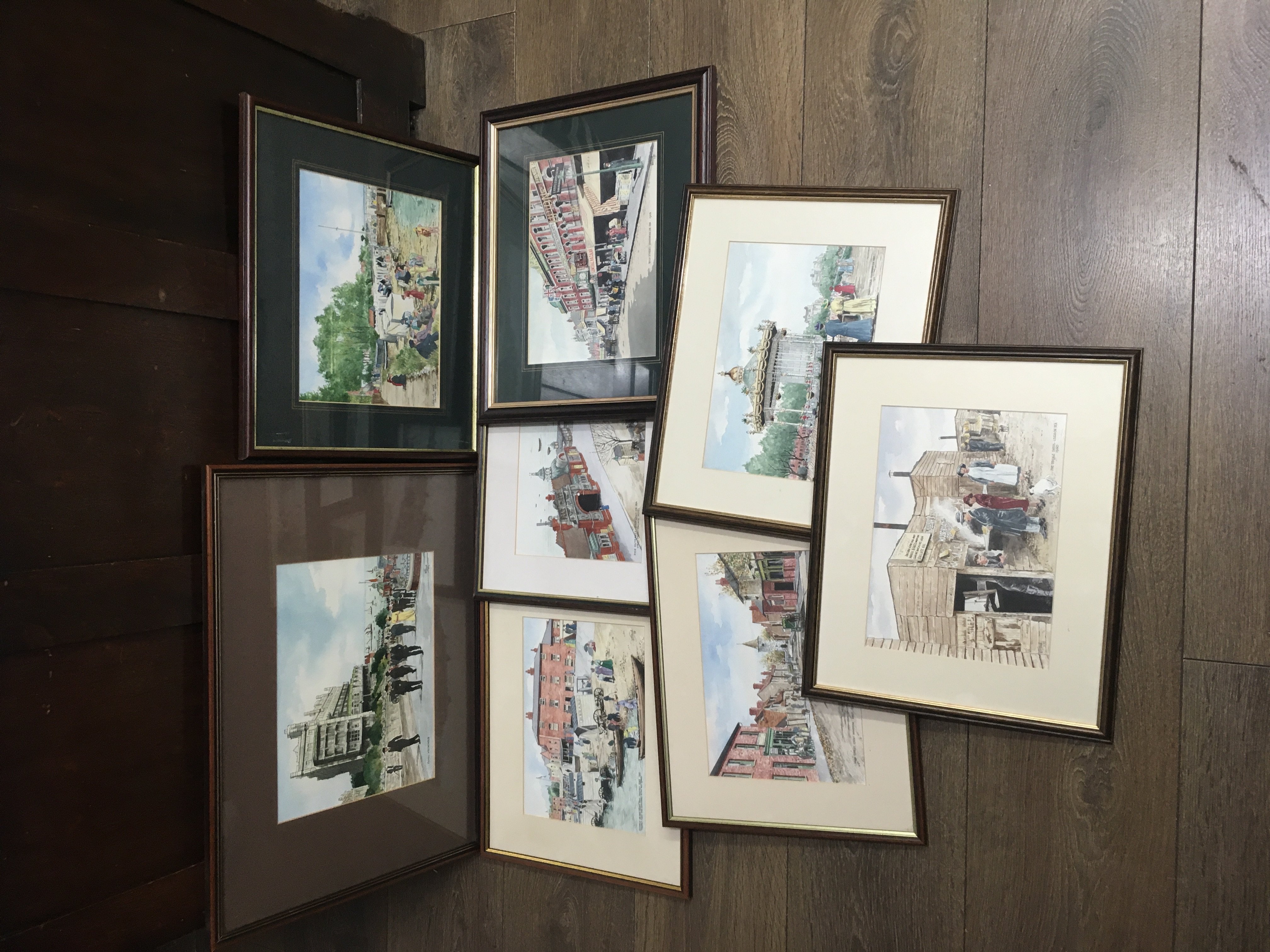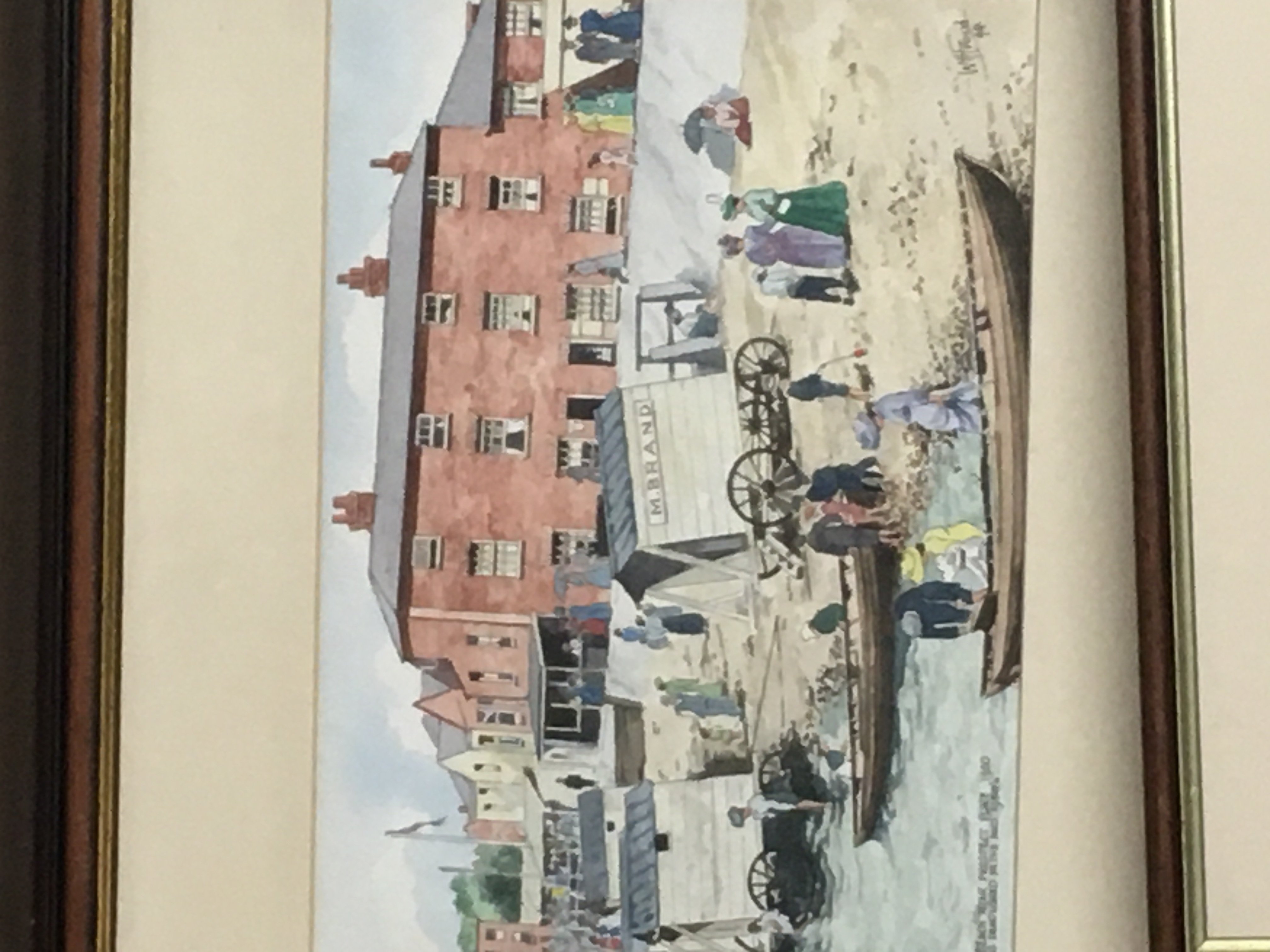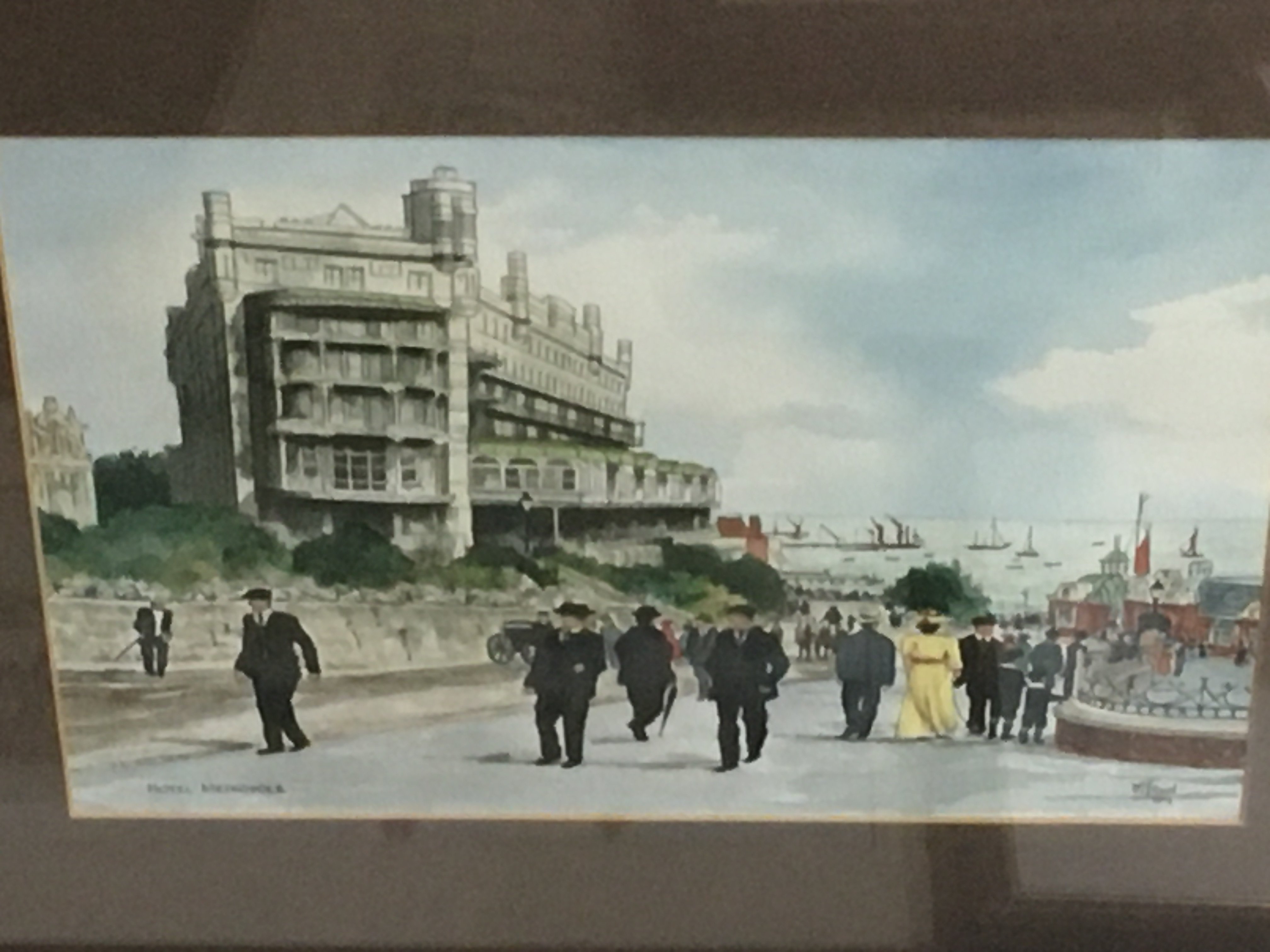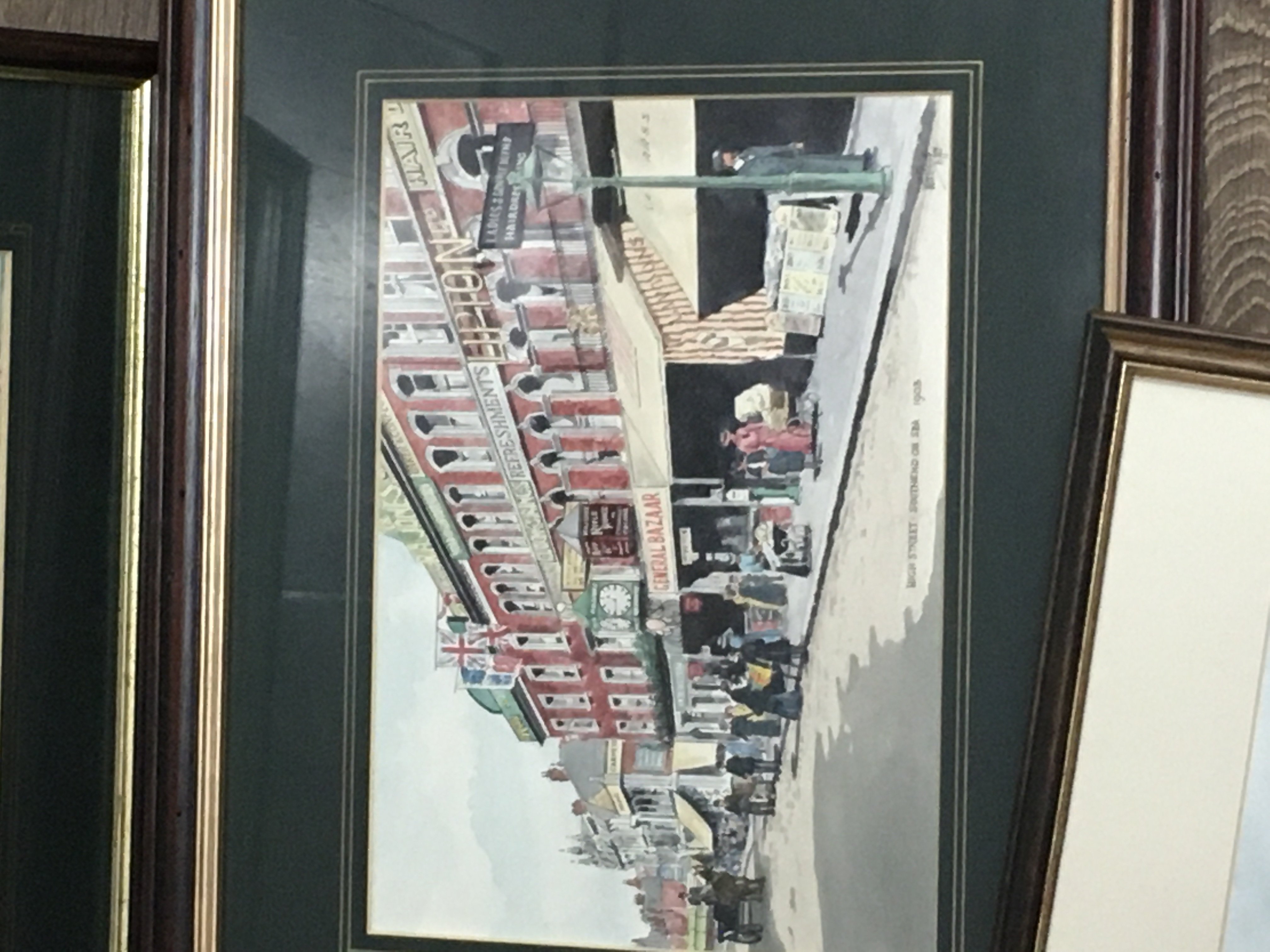 A collection of framed water colours Depicting various Victorian Southend on sea views including pier entrance, marine parade, the cockle sheds and band stand. Signed