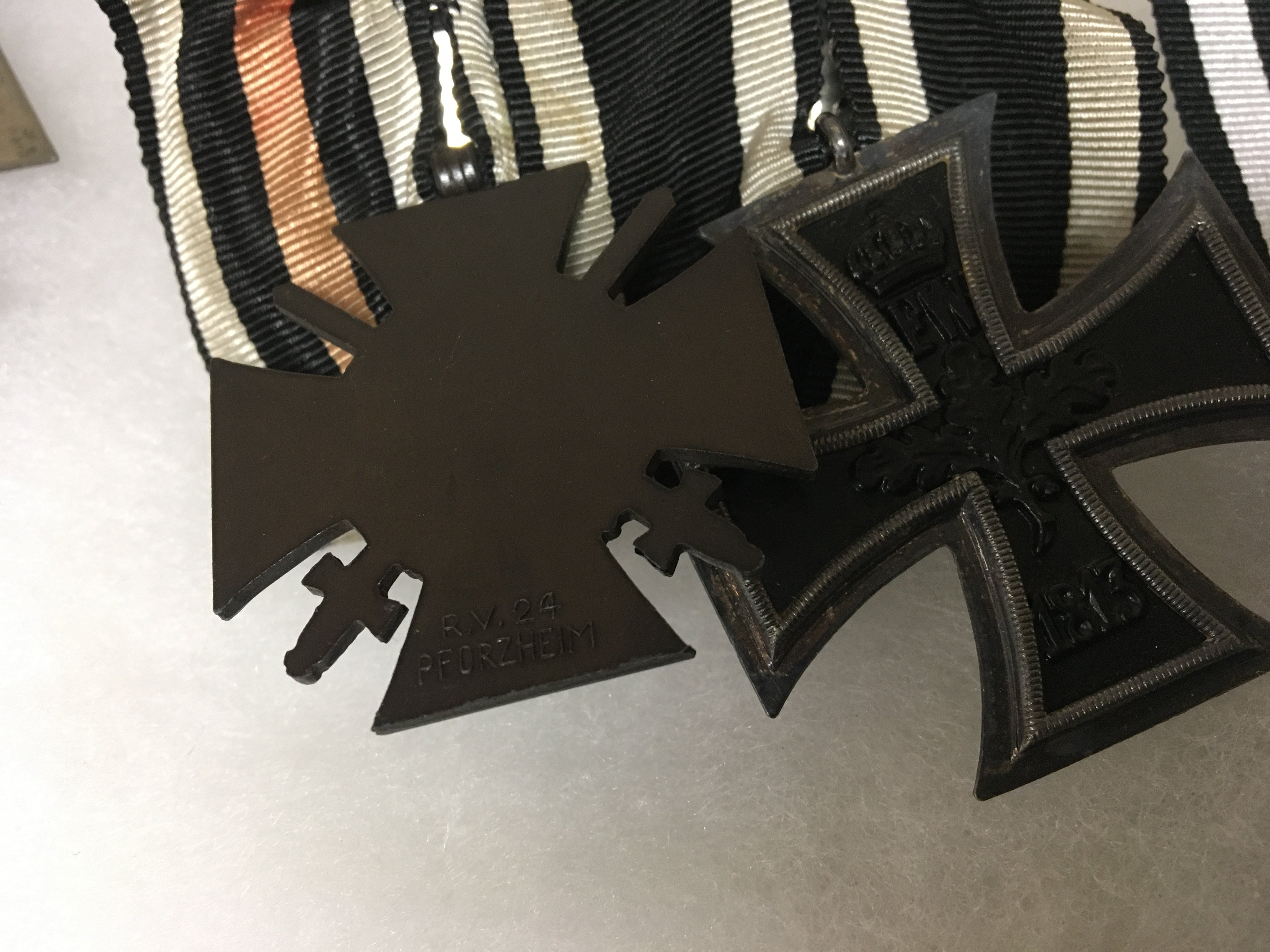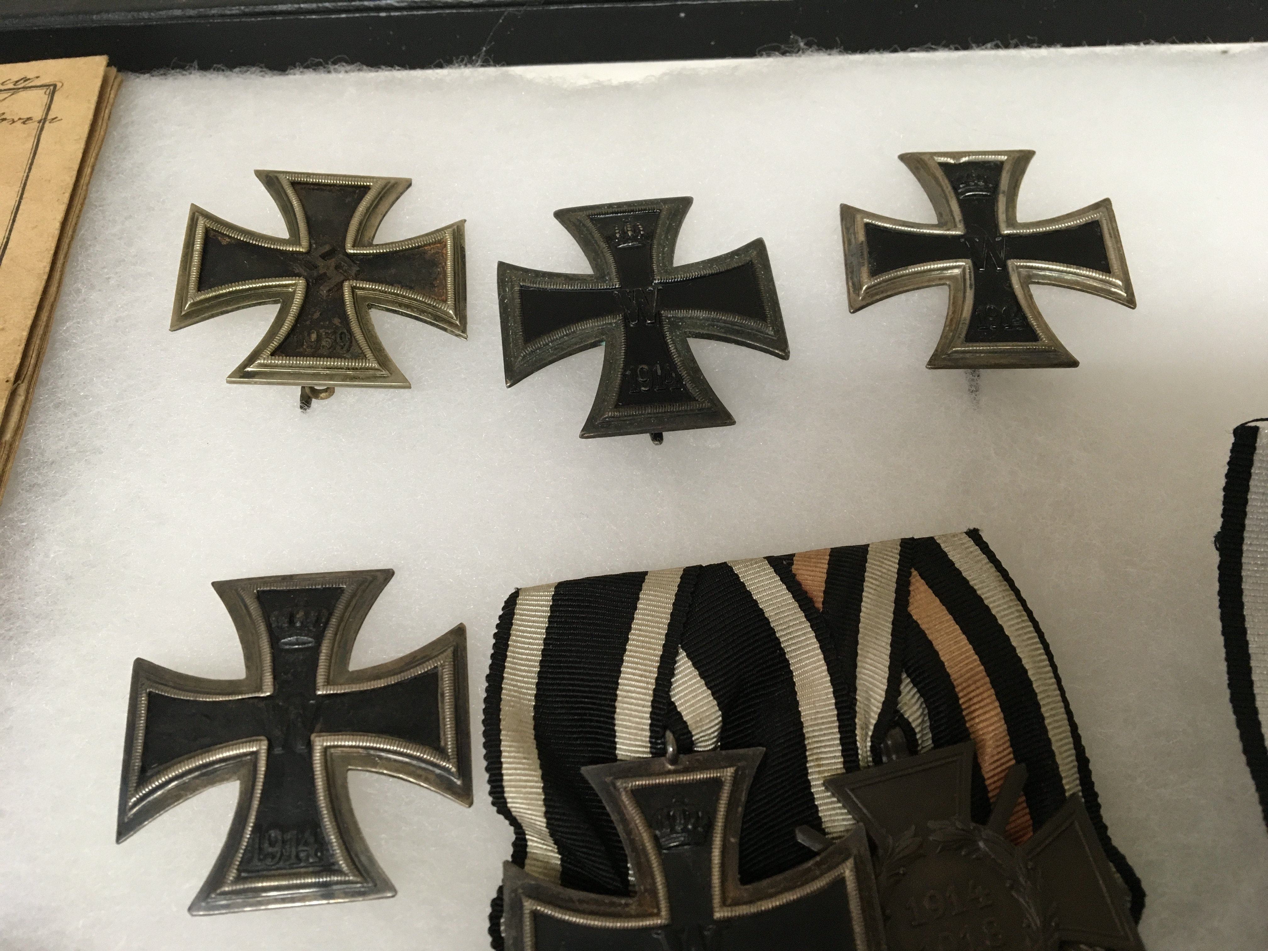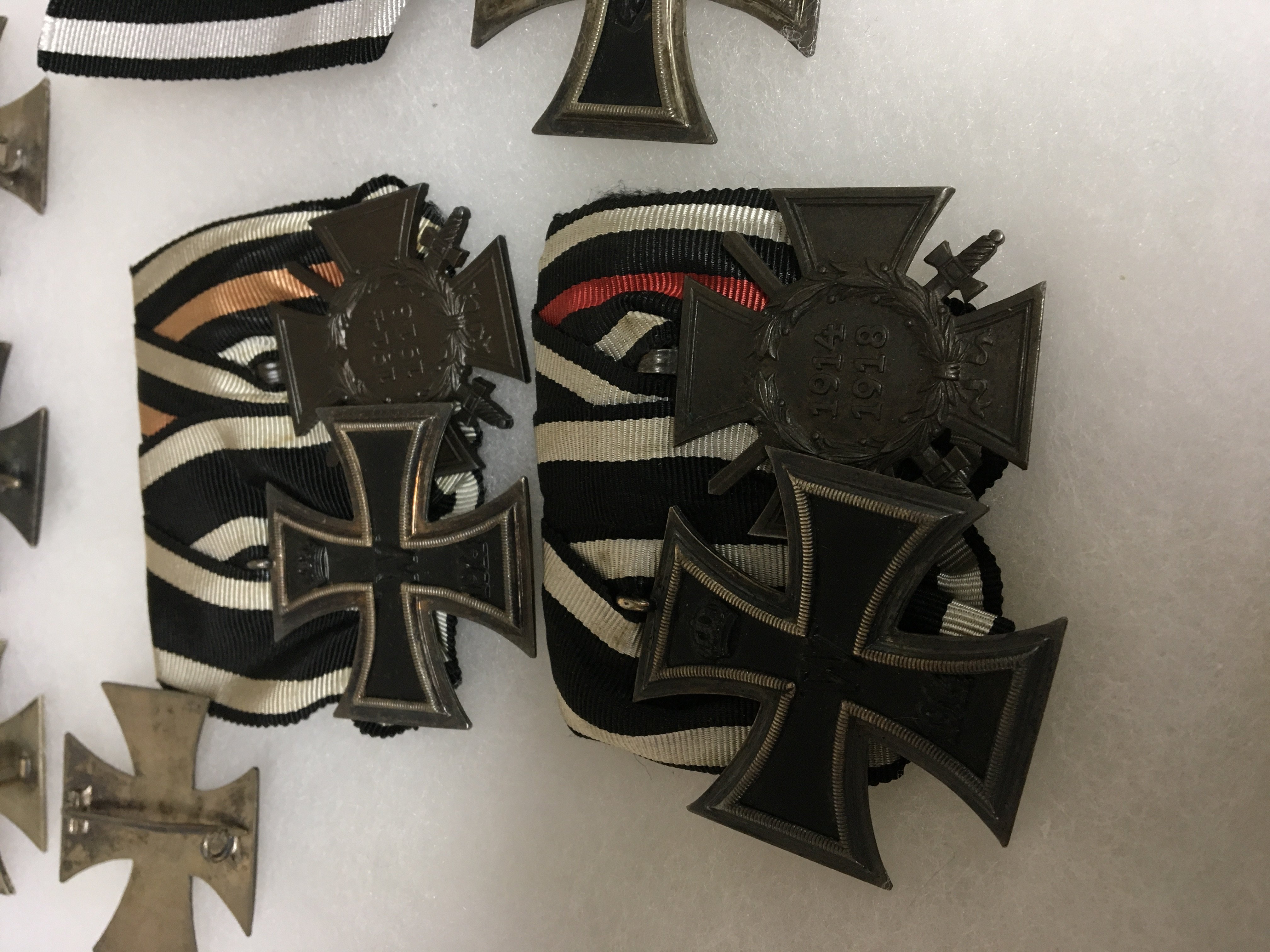 A collection of German Imperial I world war medals and award badges Iron cross second class war merit medals and Honour Cross most are authentic two badges possible reproduction please satisfy yourself before you bid. Sold with German soldiers service book p.