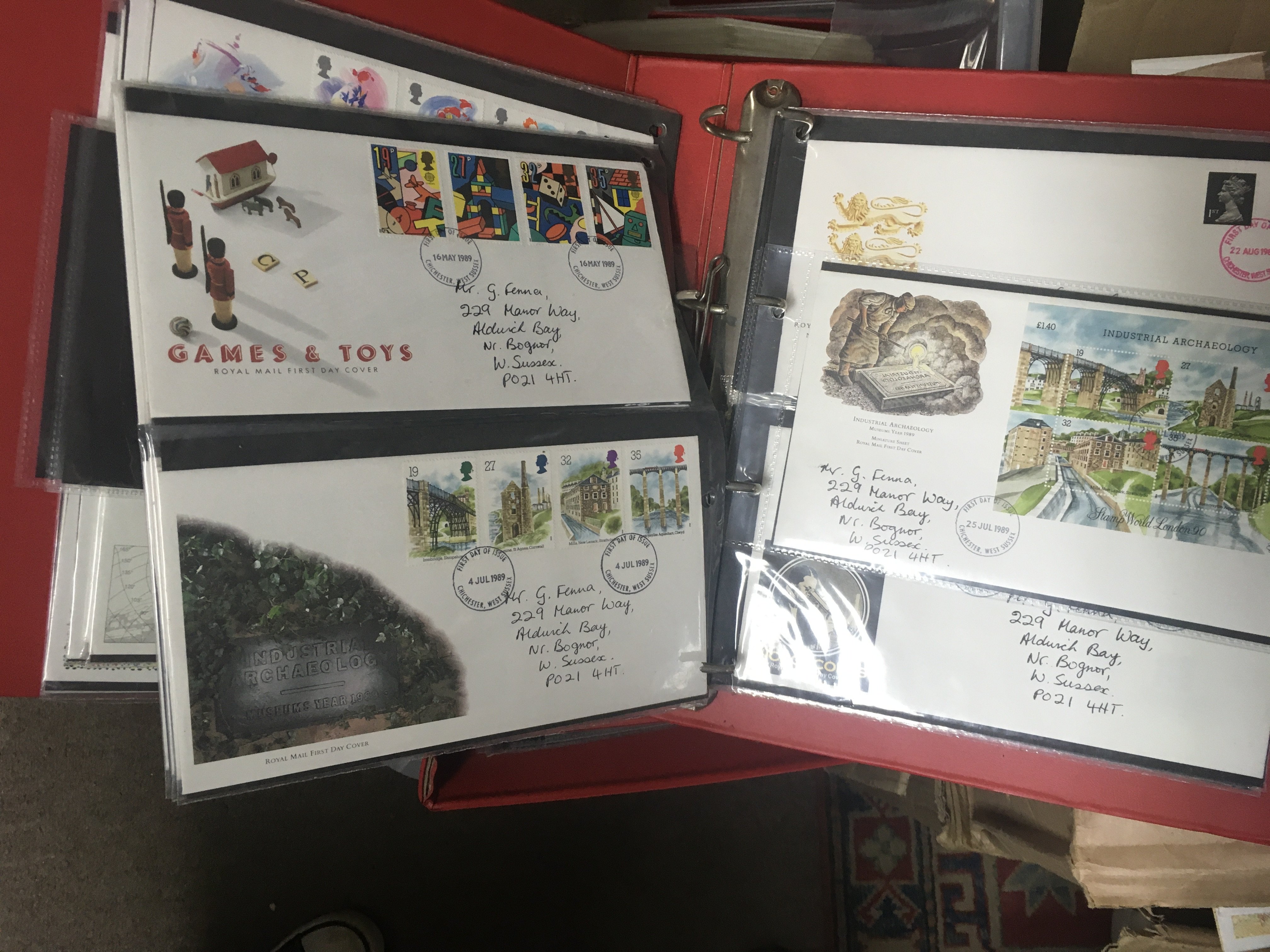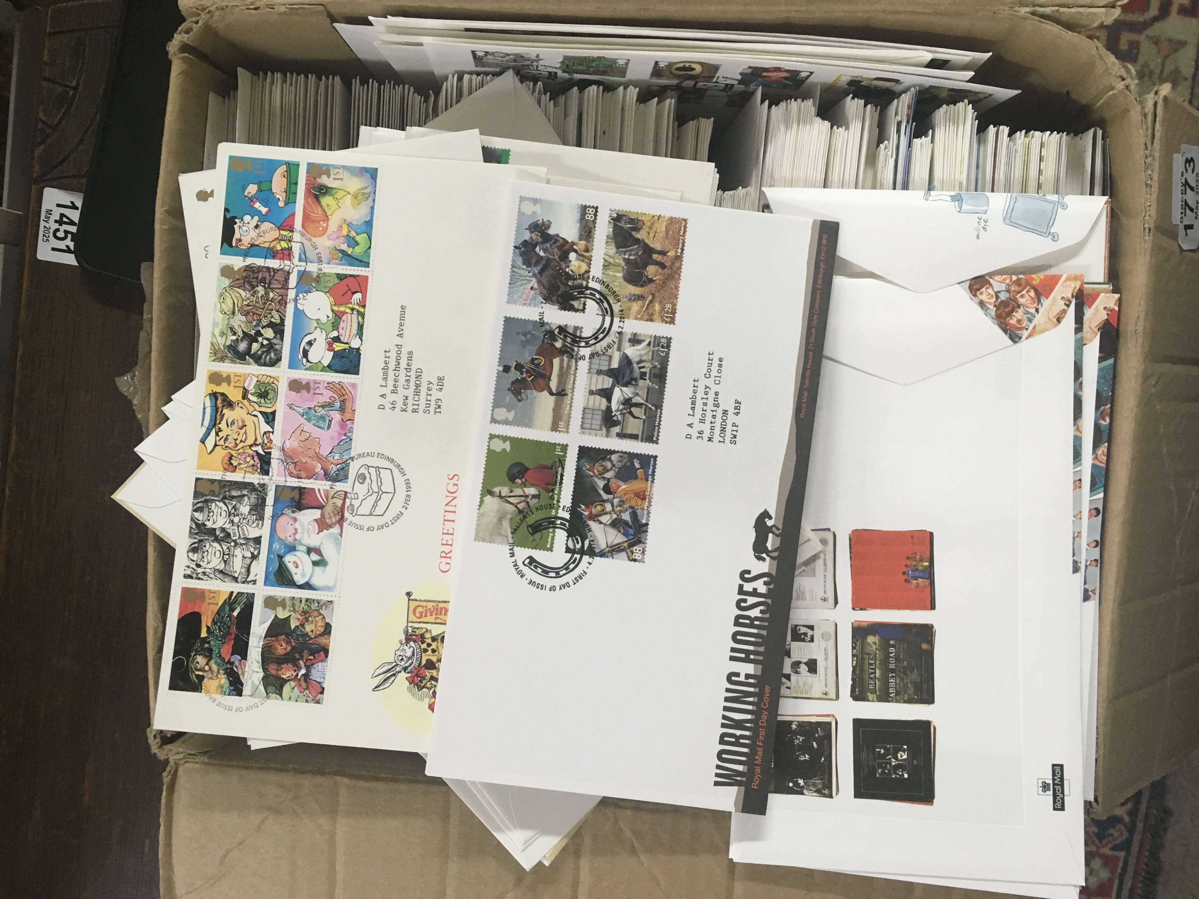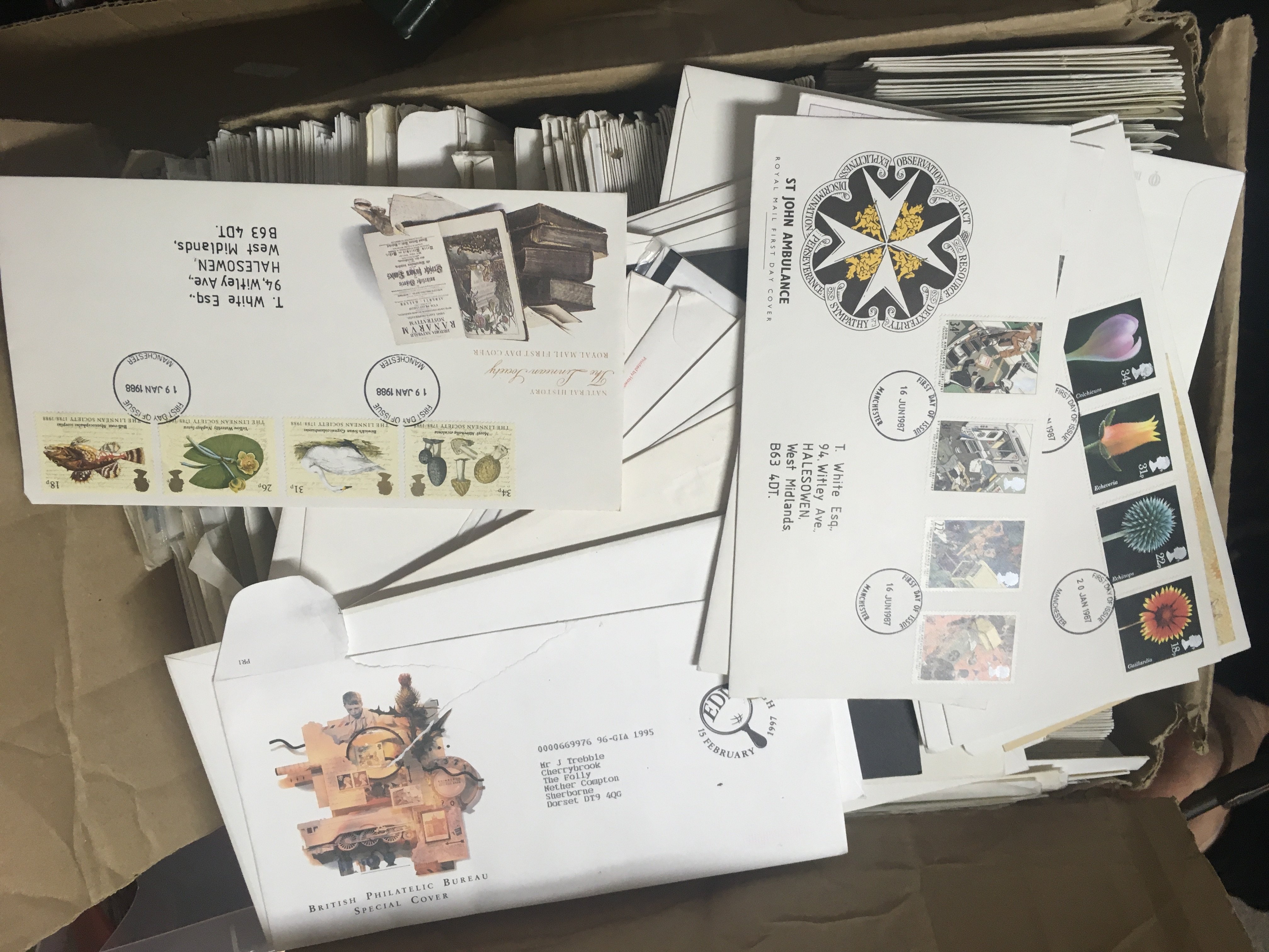 Three boxes of stamps with various First Day covers, including Working Horses, plants etc