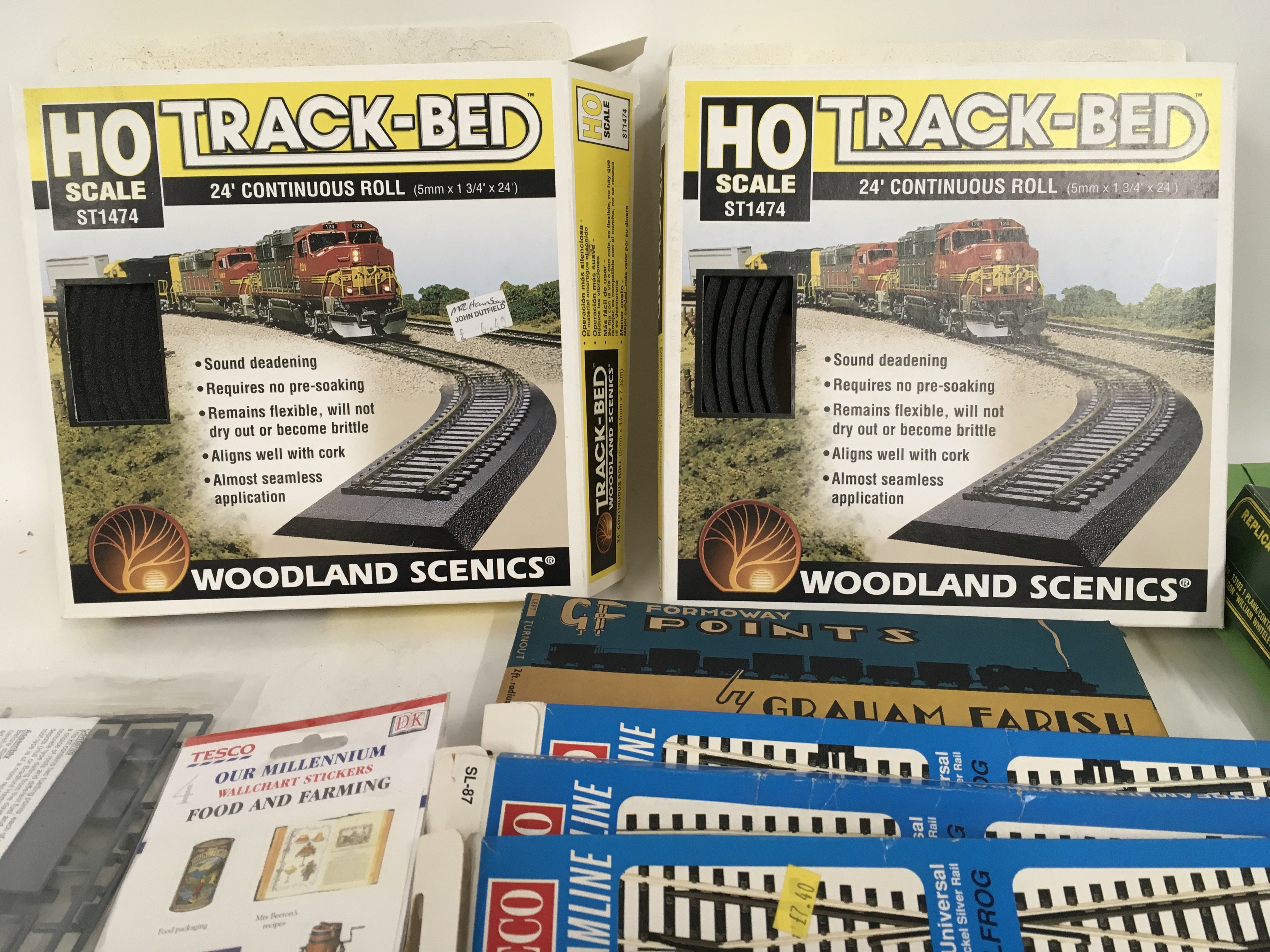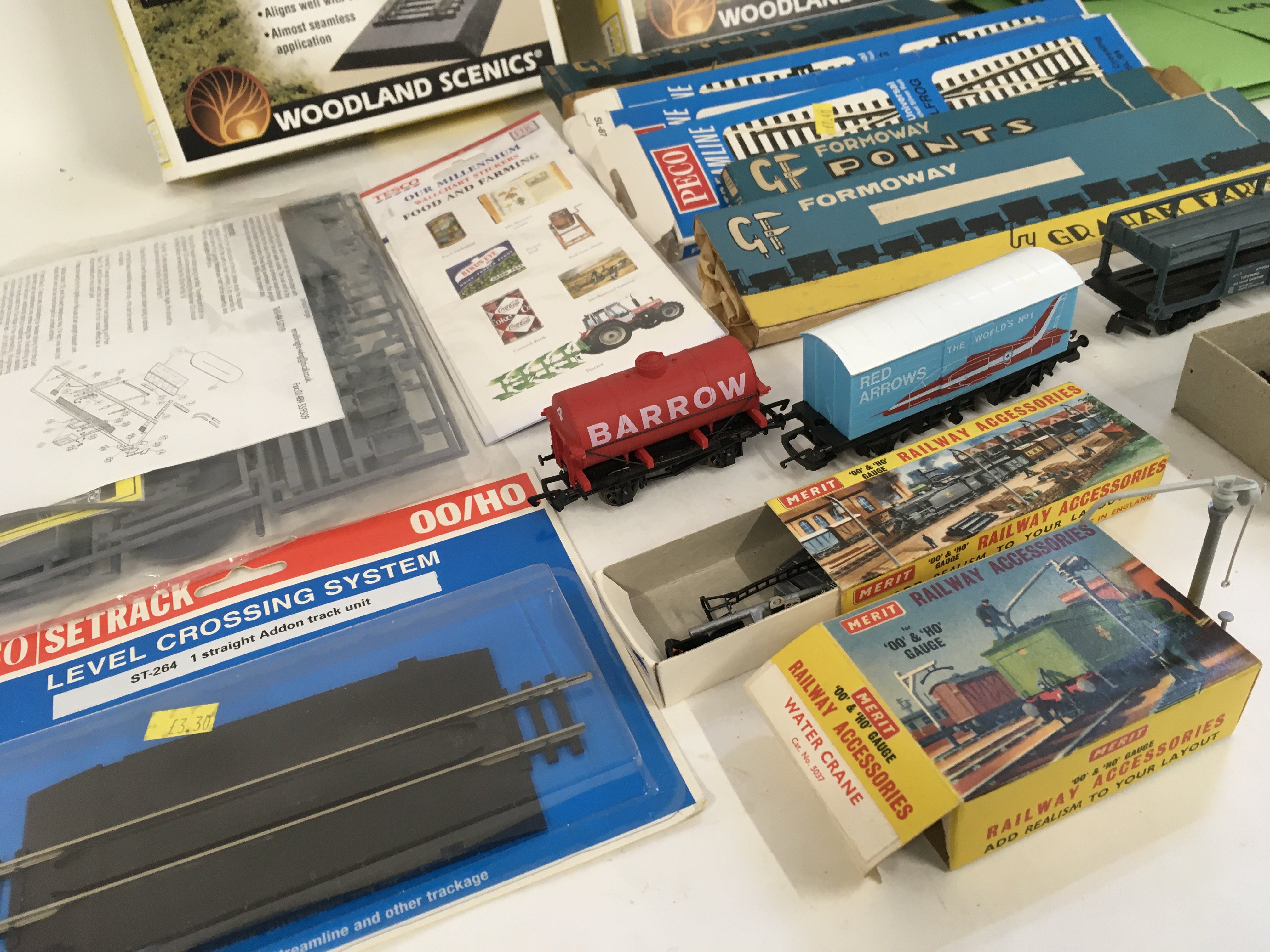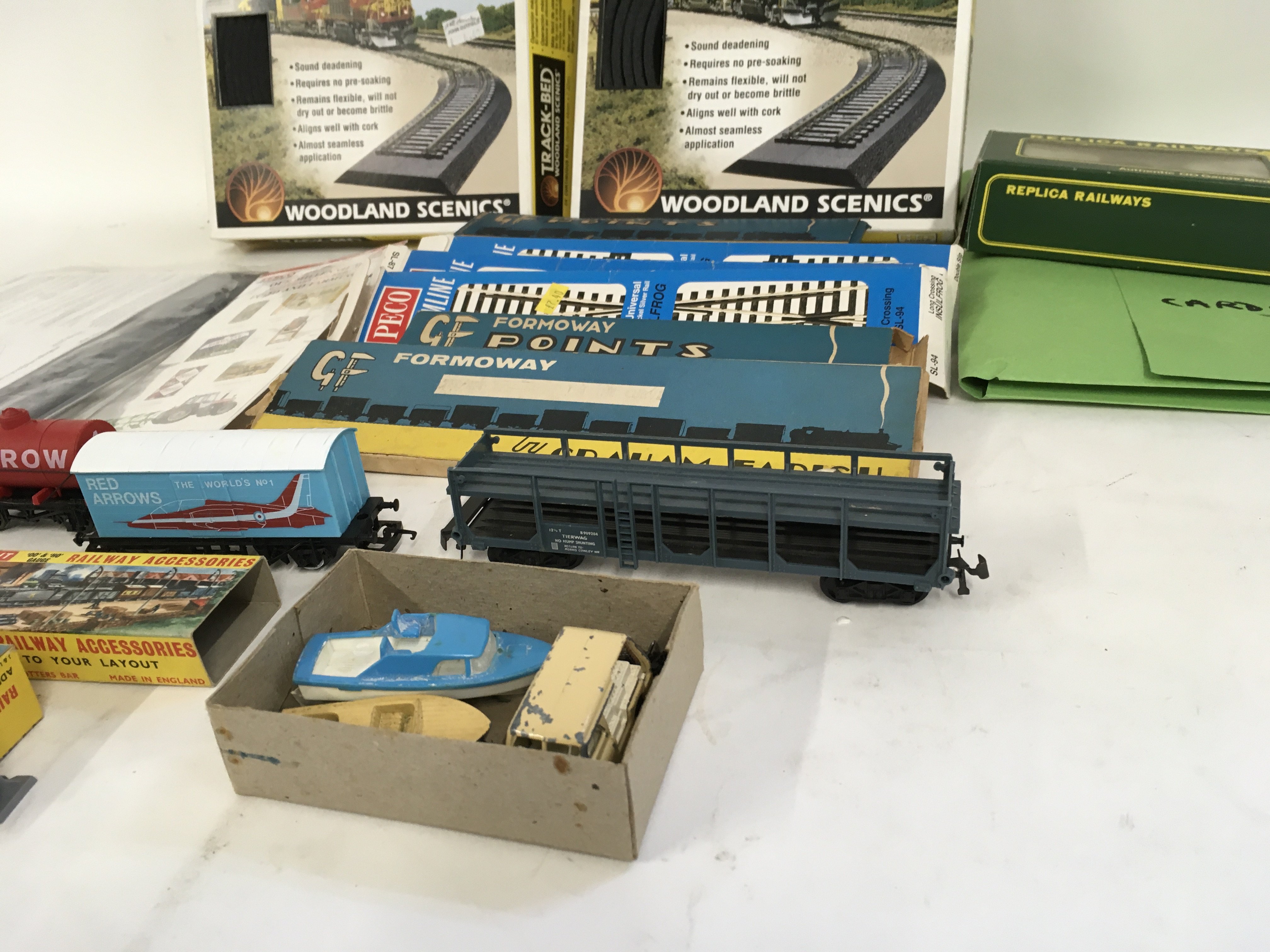An assorted collection of OO gauge model railway pieces including wagons..points..scenery etc. no reserve