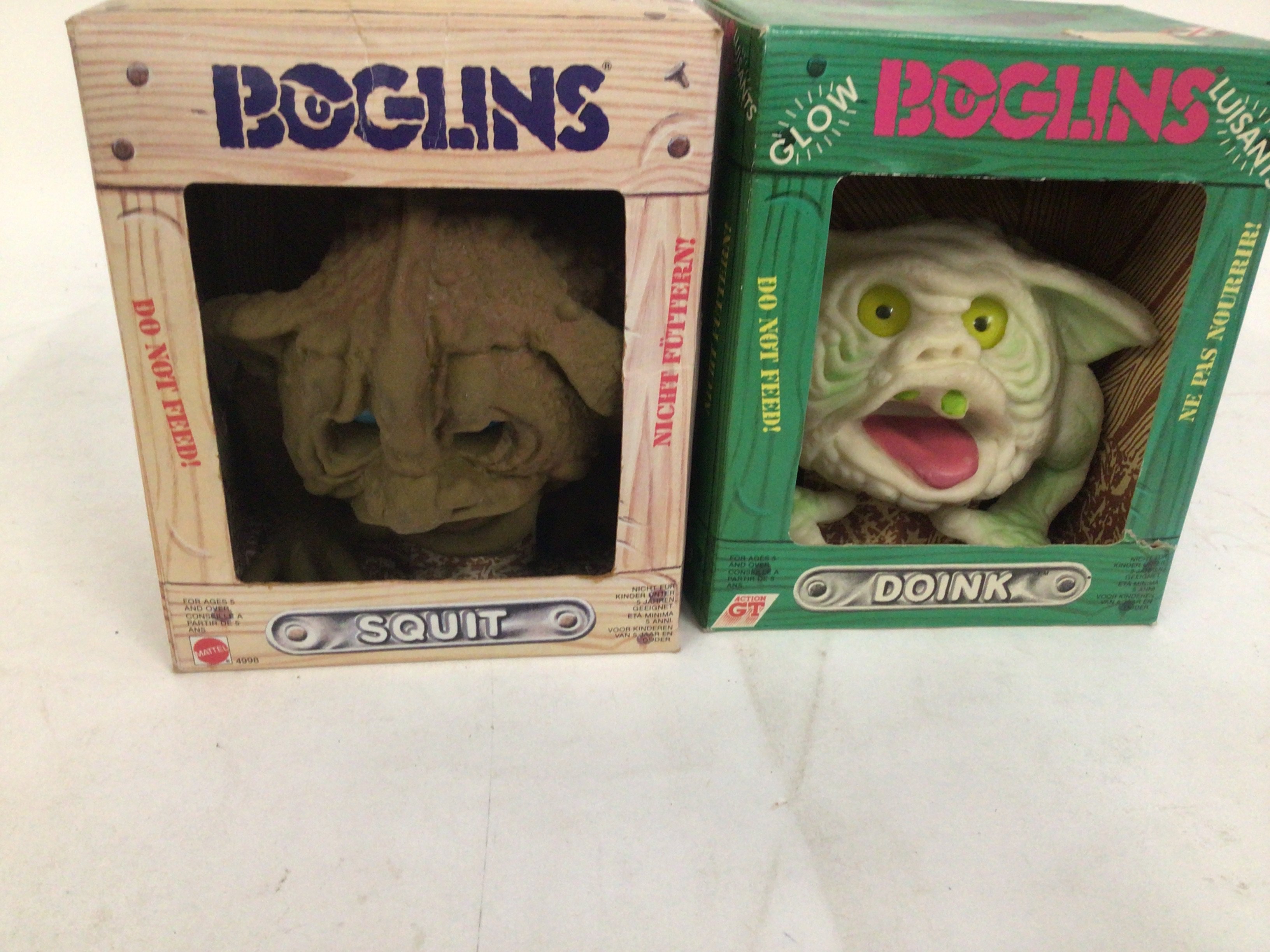 2x boglins in their original boxes. Includes SQUIT and DOINK glows in the dark. No reserve.