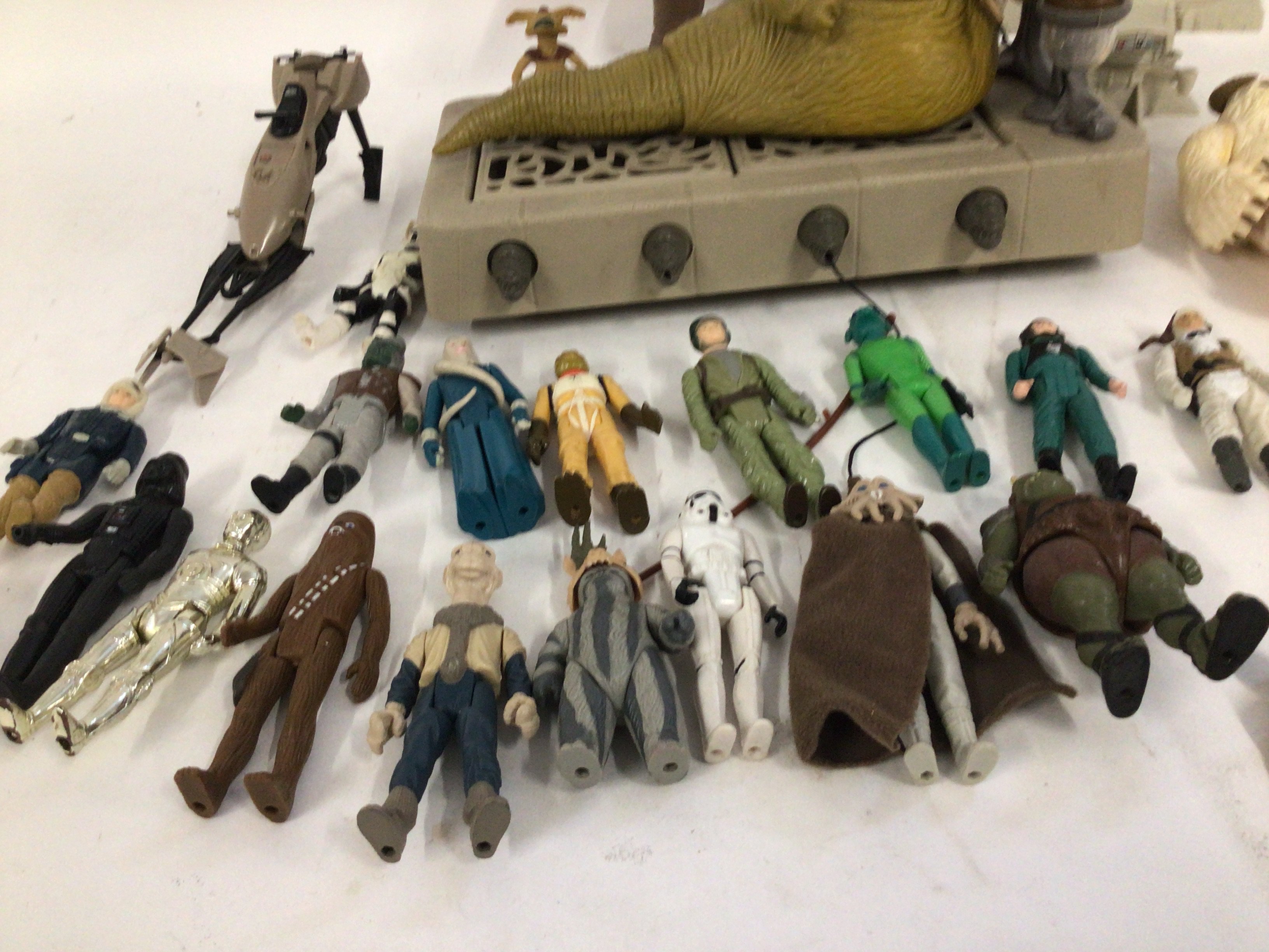 A nice collection of vintage Star Wars items including Jaba the Hut playset and 15 plus 3” figures with 2 of the last 17. Plus other pieces. No Reserve.